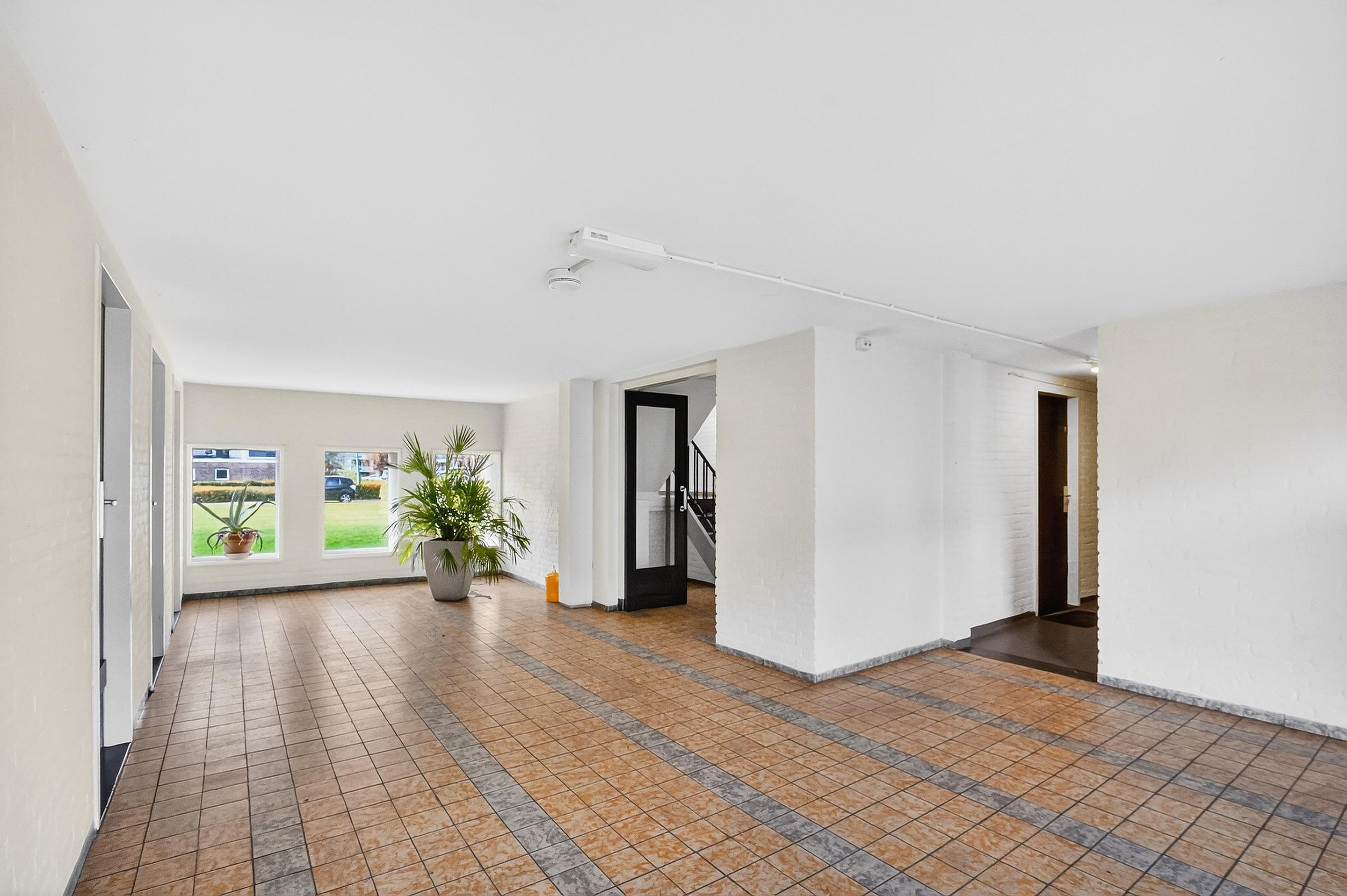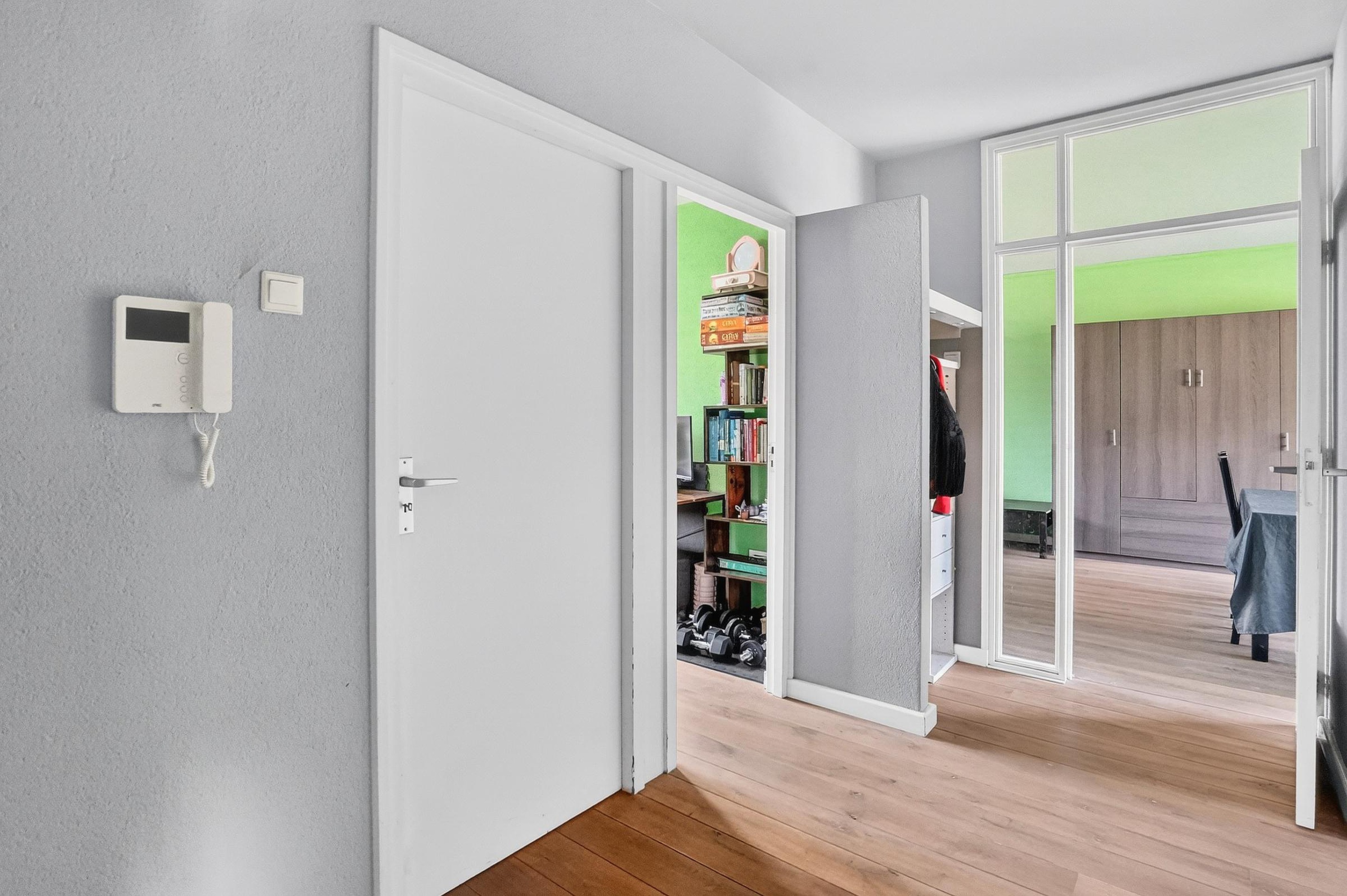 Op de eerste etage biedt het portiek toegang tot 2 appartementen en de meterkasten.