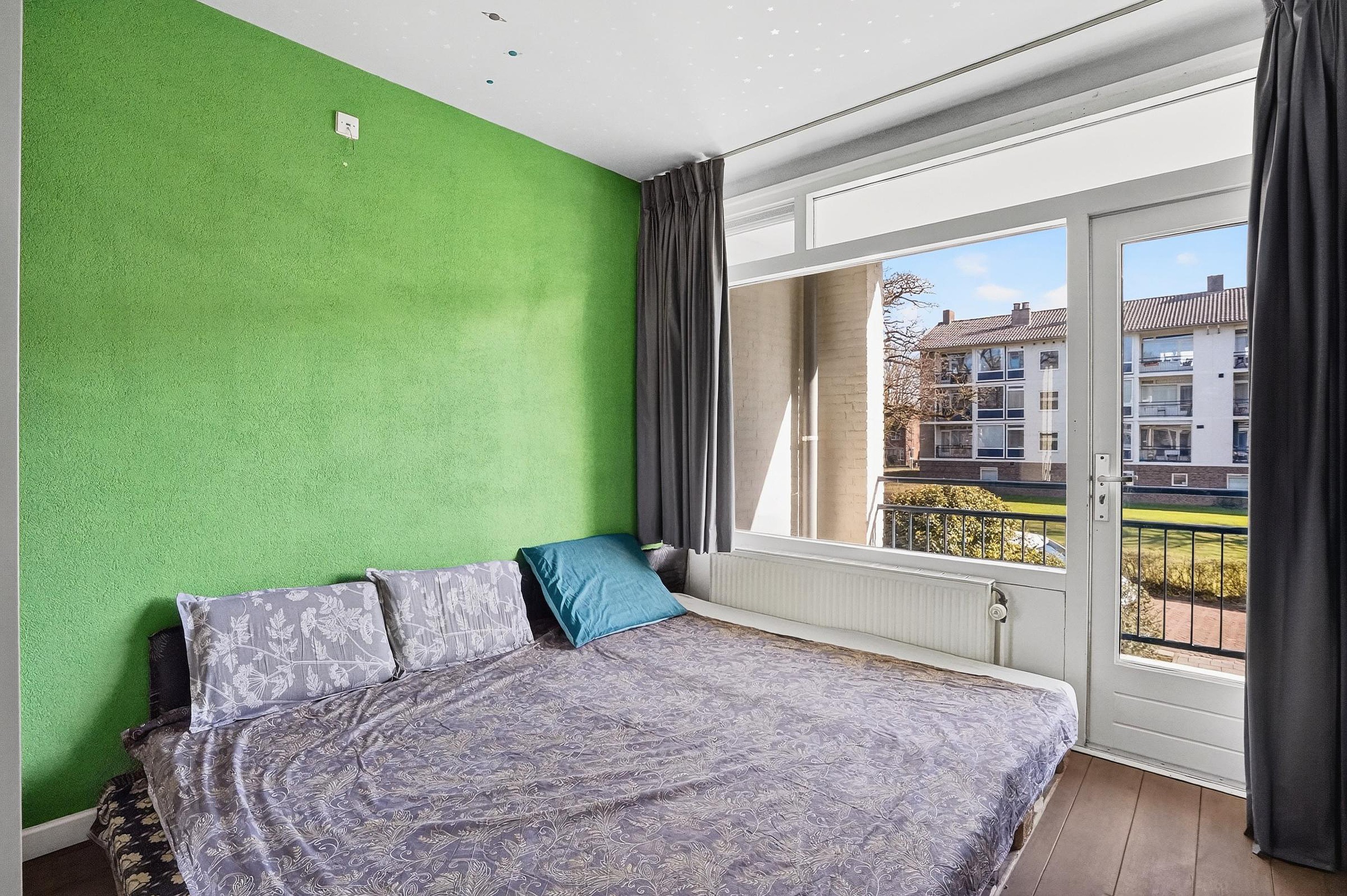 De grote slaapkamer heeft toegang tot het op het zuiden gerichte balkon.