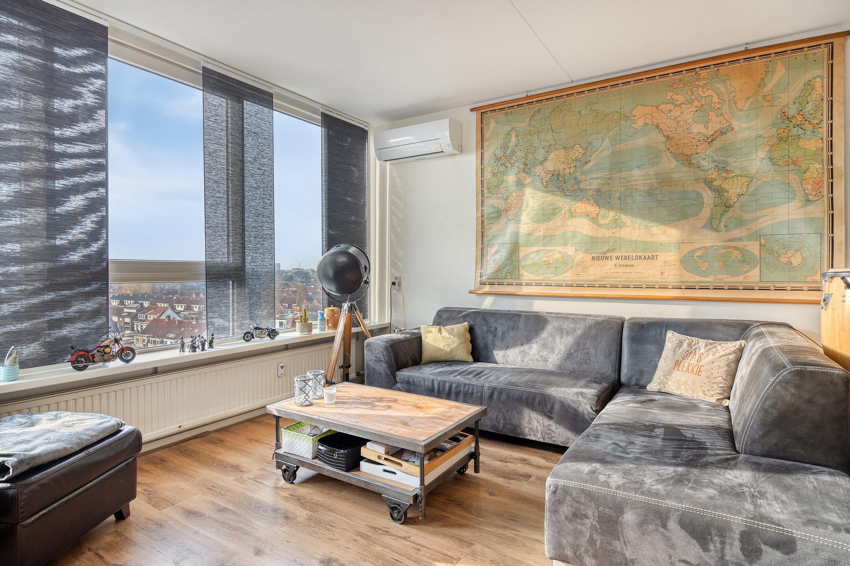 Superlichte woonkamer met airco en waanzinnig uitzicht over de skyline en het park.
