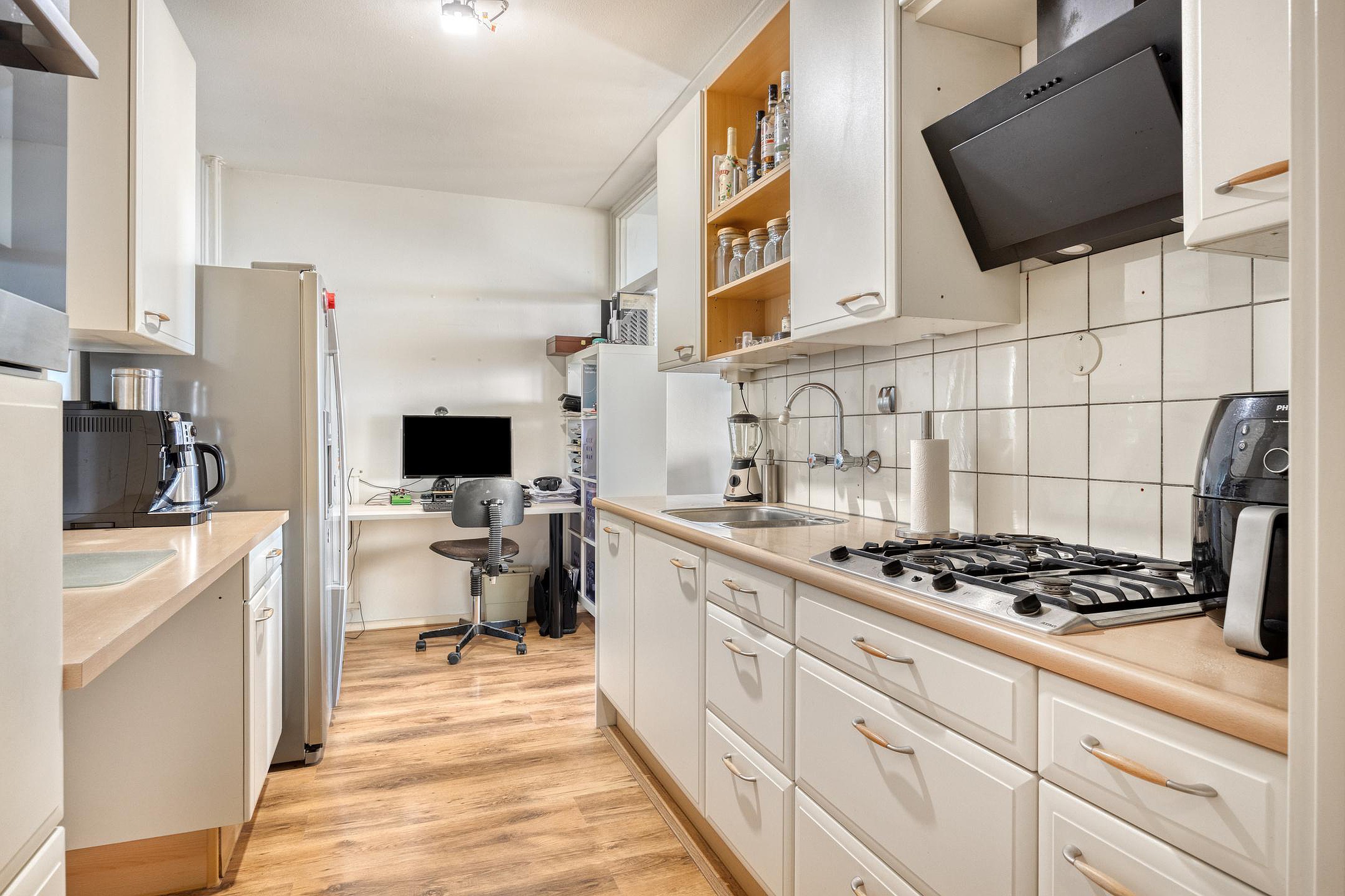 Halfopen keuken met apparatuur.