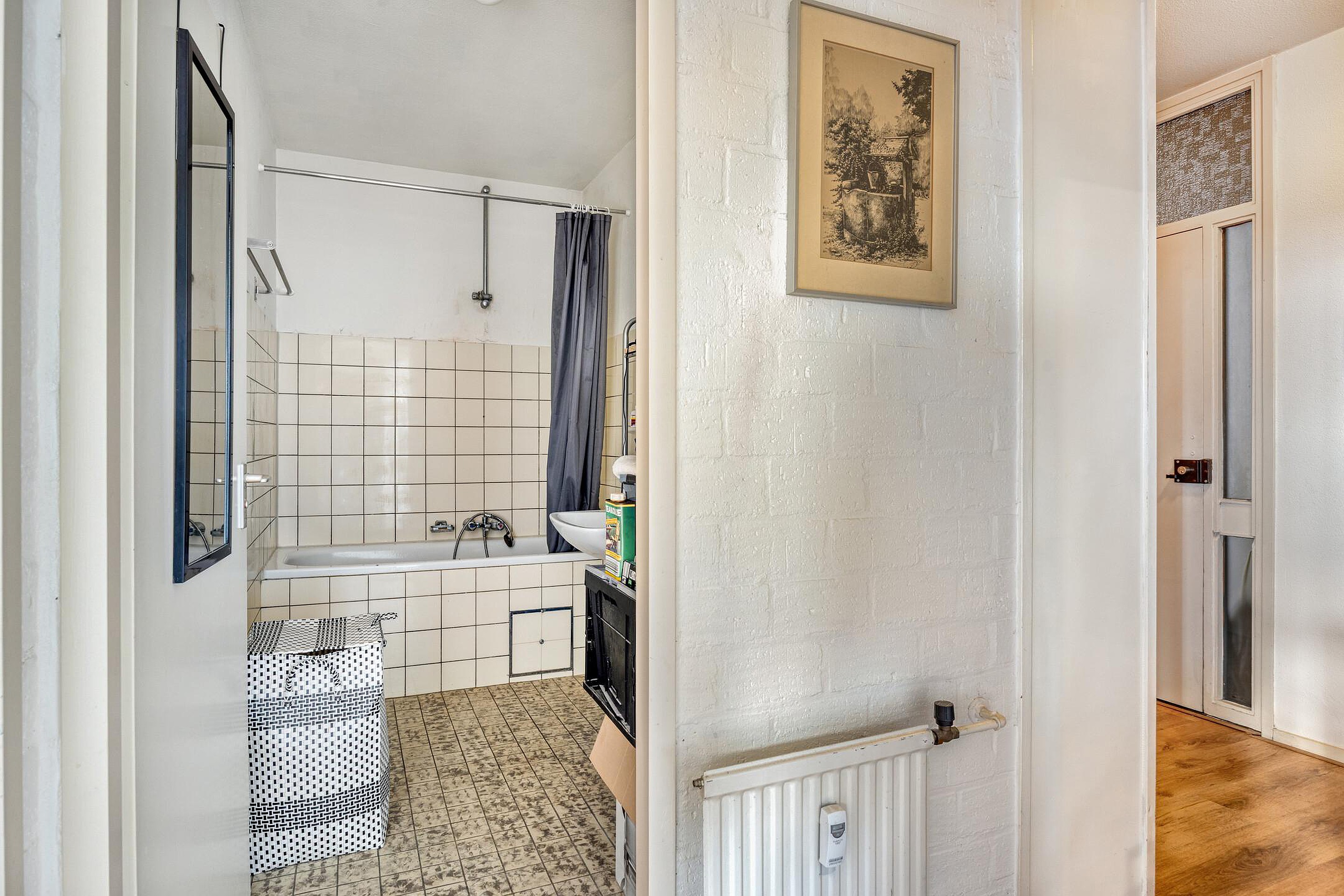 Badkamer met bad, wastafel en eigen boiler.