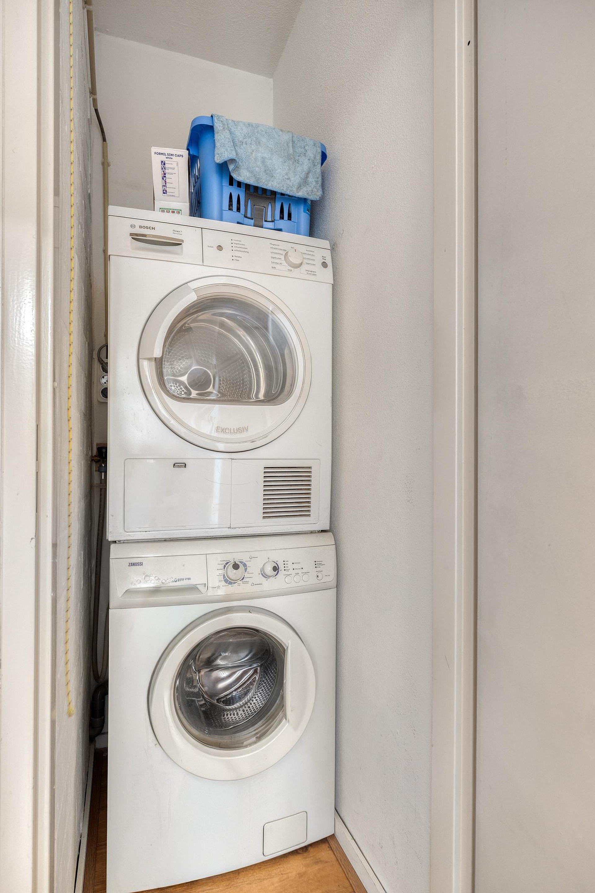 Handige aparte was-/drogerplek in de hal.