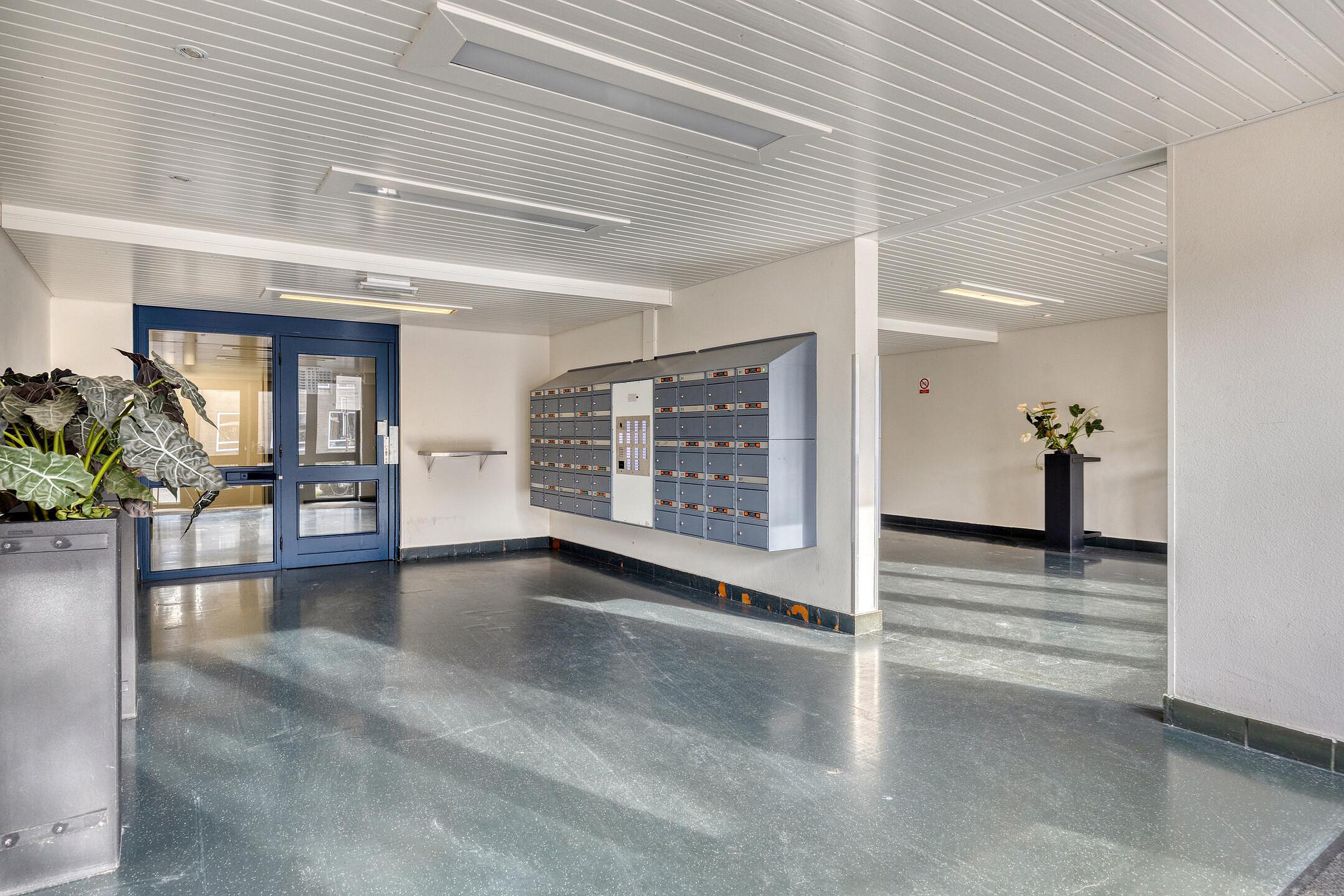 Centrale entree met intercom, lift en parkeerplaatsen buitenterrein.