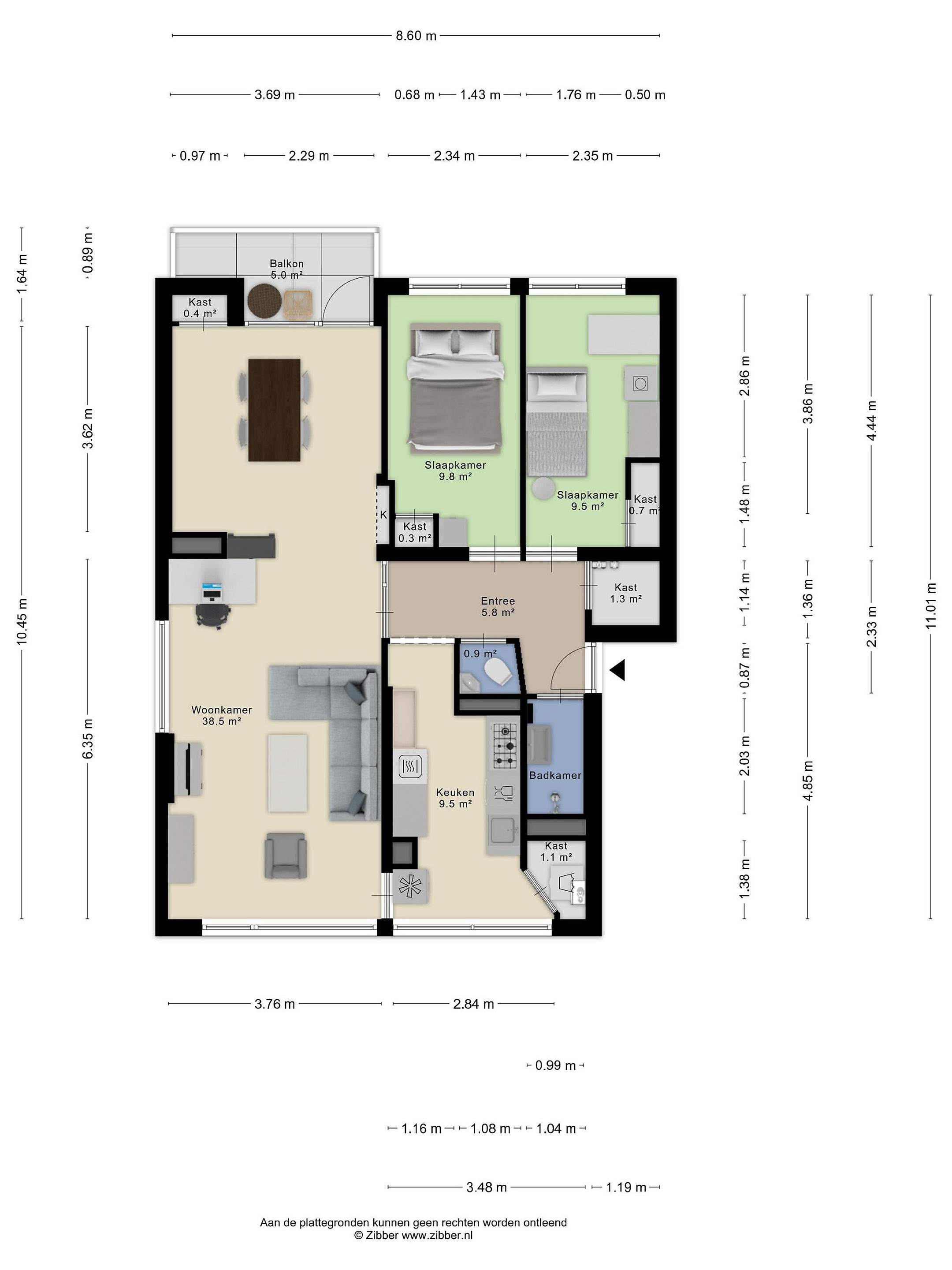 - 2 slaapkamers;