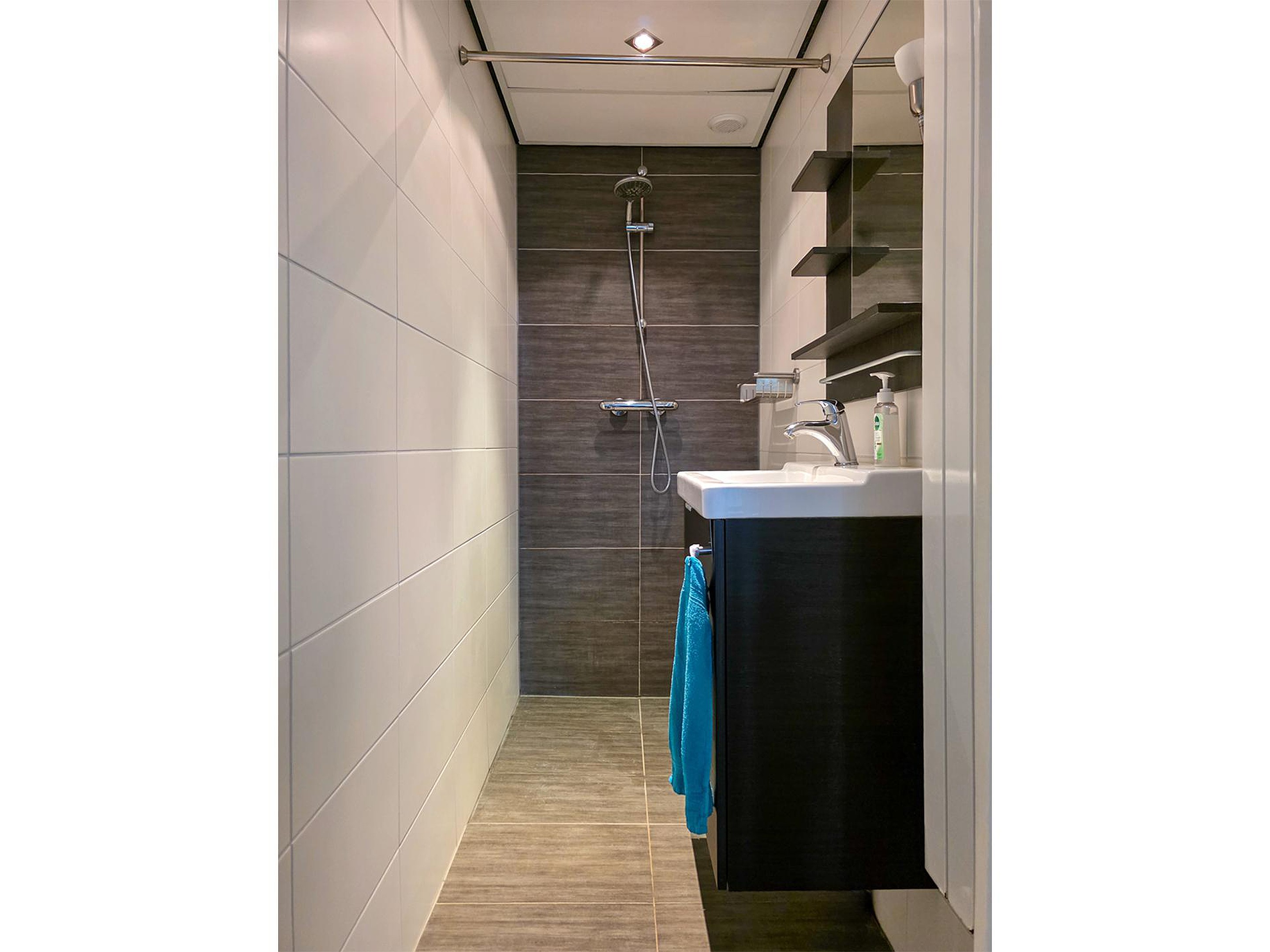 - Badkamer met inloopdouche en wastafelmeubel;