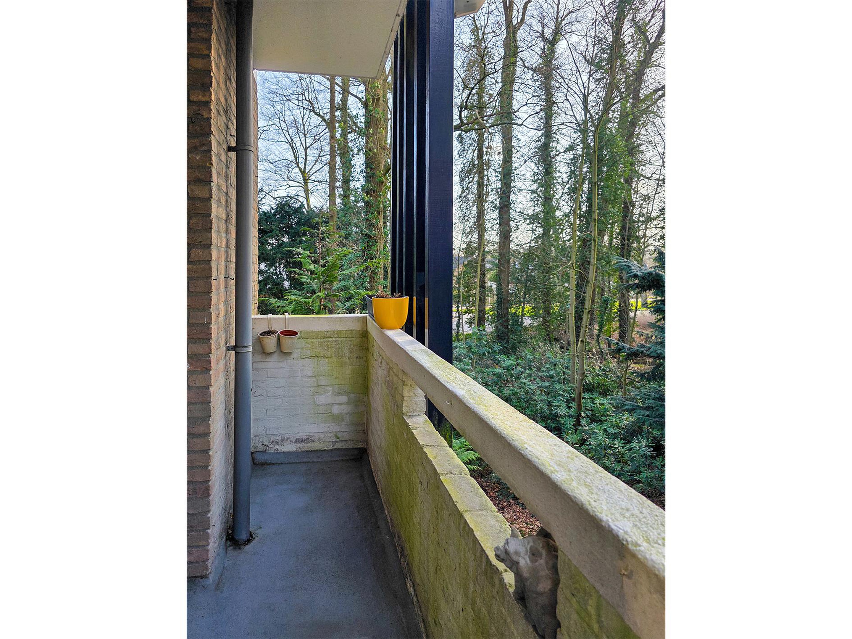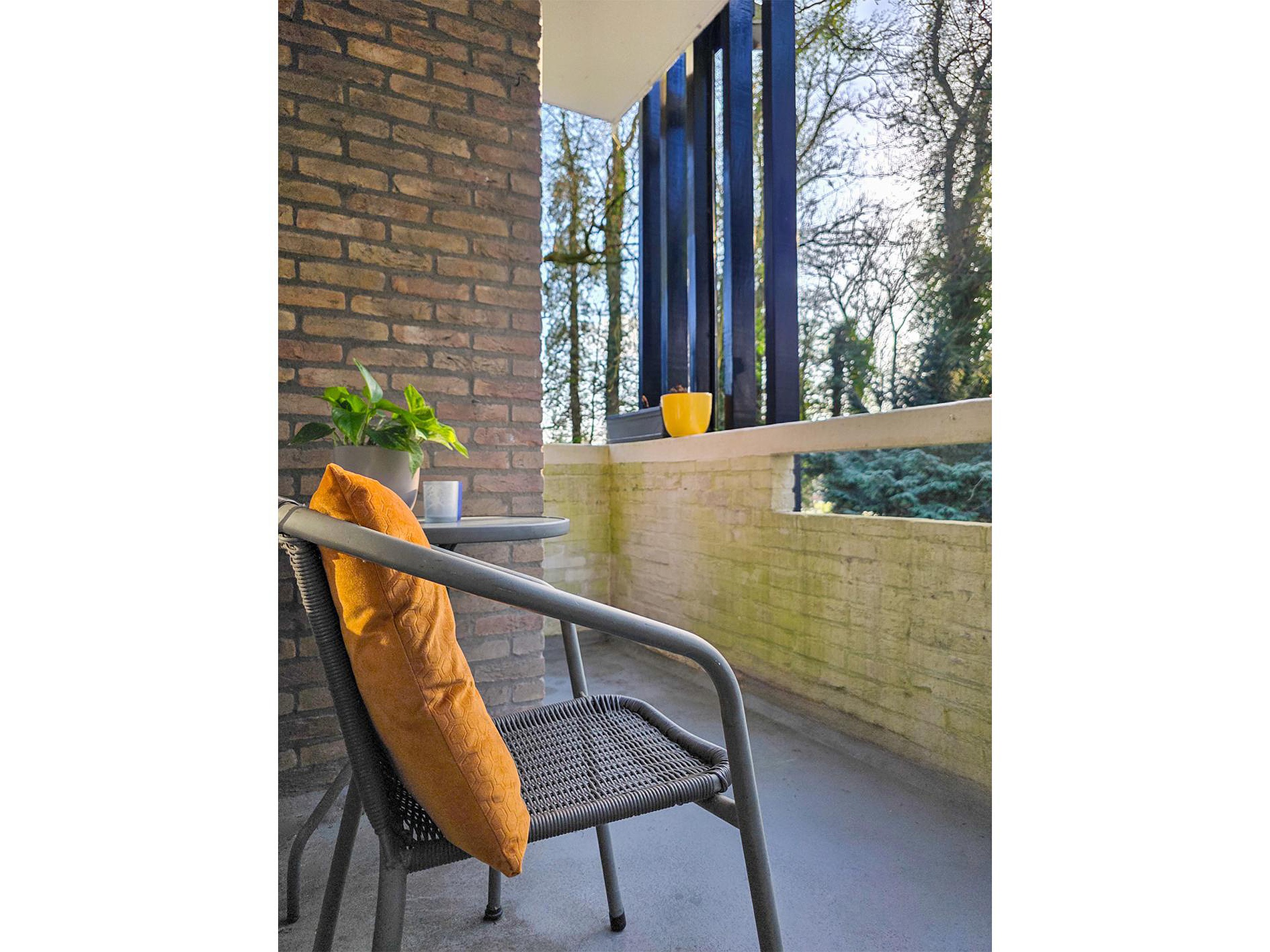 Ook aan de achterzijde woonkamer is een balkon waar regelmatig de eekhoorntjes je komen begroeten.