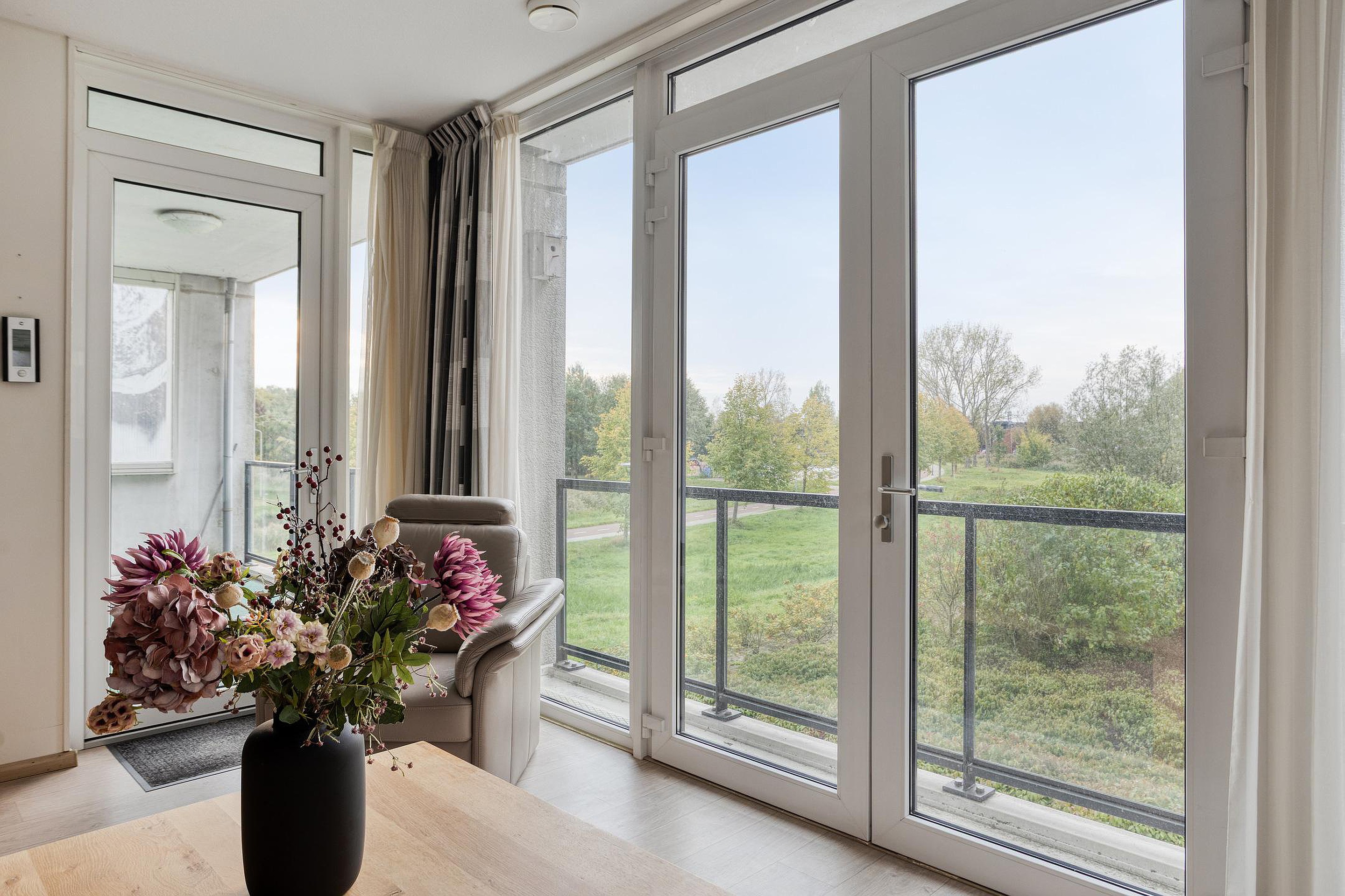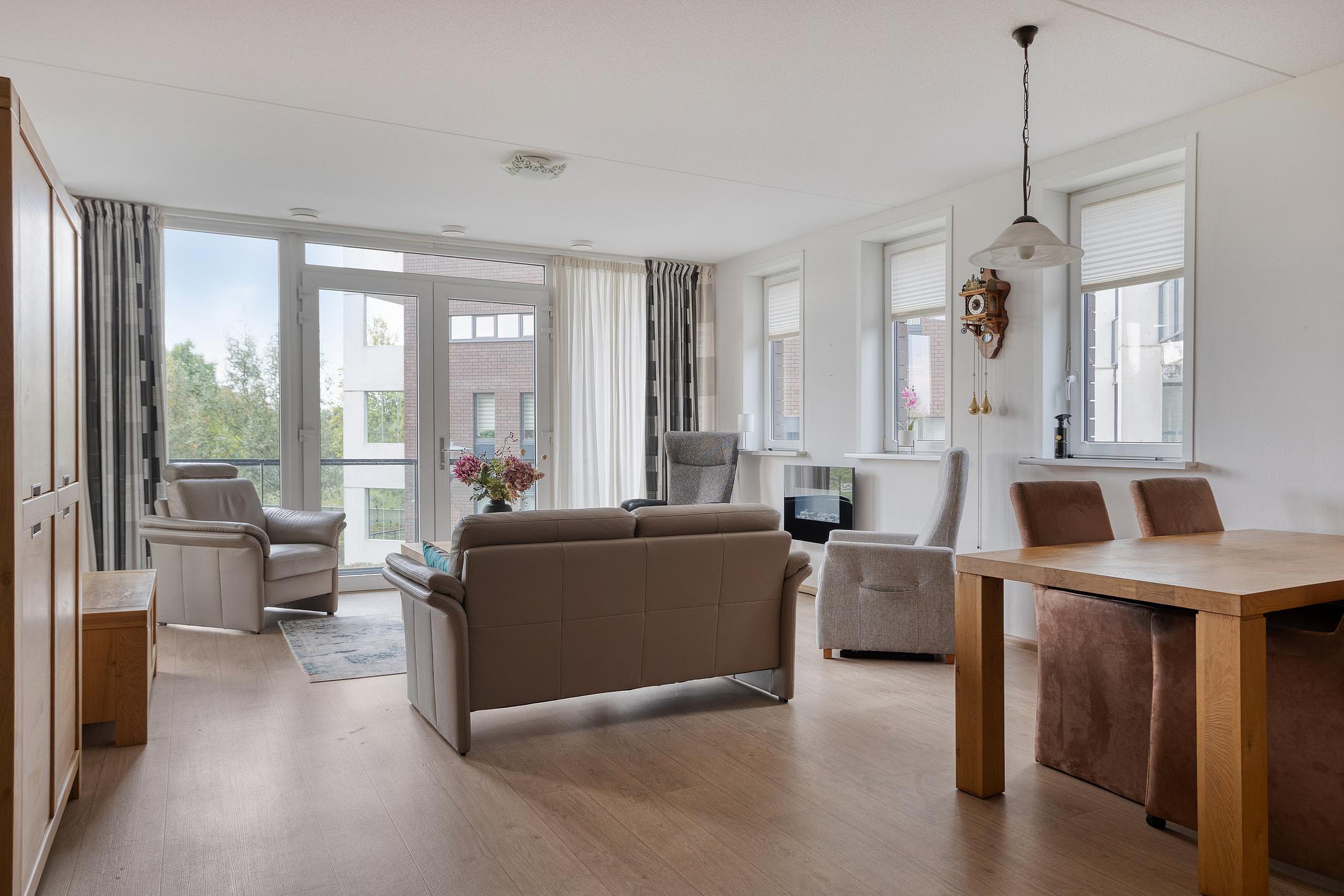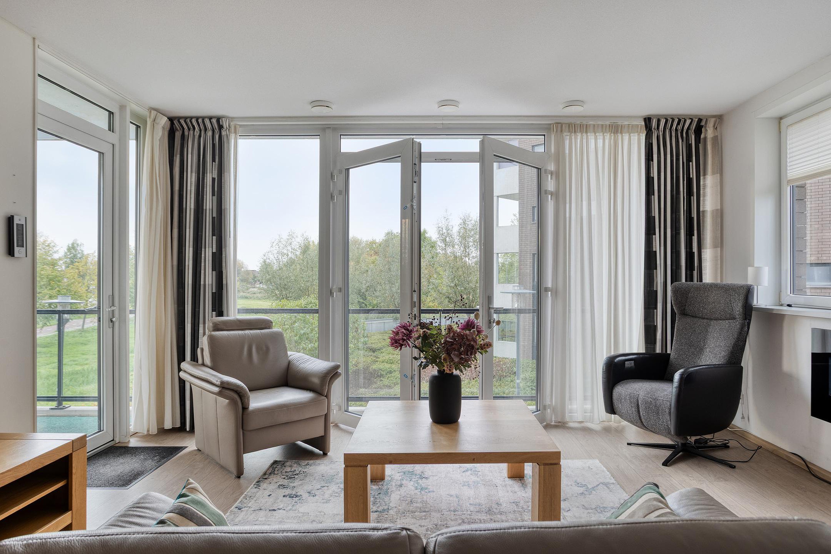 WOOONmakelaardij biedt aan: Prachtig gelegen, royaal bemeten hoekappartement liggend op de 1e verdieping (2 woonlaag) en heeft een netto woonoppervlak van ca. 98 m2. Vanaf het, ca. 11 m2 grote zonnige balkon, heeft u een magnifiek weids uitzicht over het groen. Het appartement kenmerkt zich door veel lichtinval, ruime zichtlijnen en is van alle gemakken voorzien. Er is zowel warmte d.m.v. aardwarmte, als mede koeling d.m.v. koudeopslag zo is de temperatuur in ieder jaargetijde optimaal geregeld. In de kelder treft u daarbij een parkeerplaats van ca. 14m2 en berging van ca. 9m2.