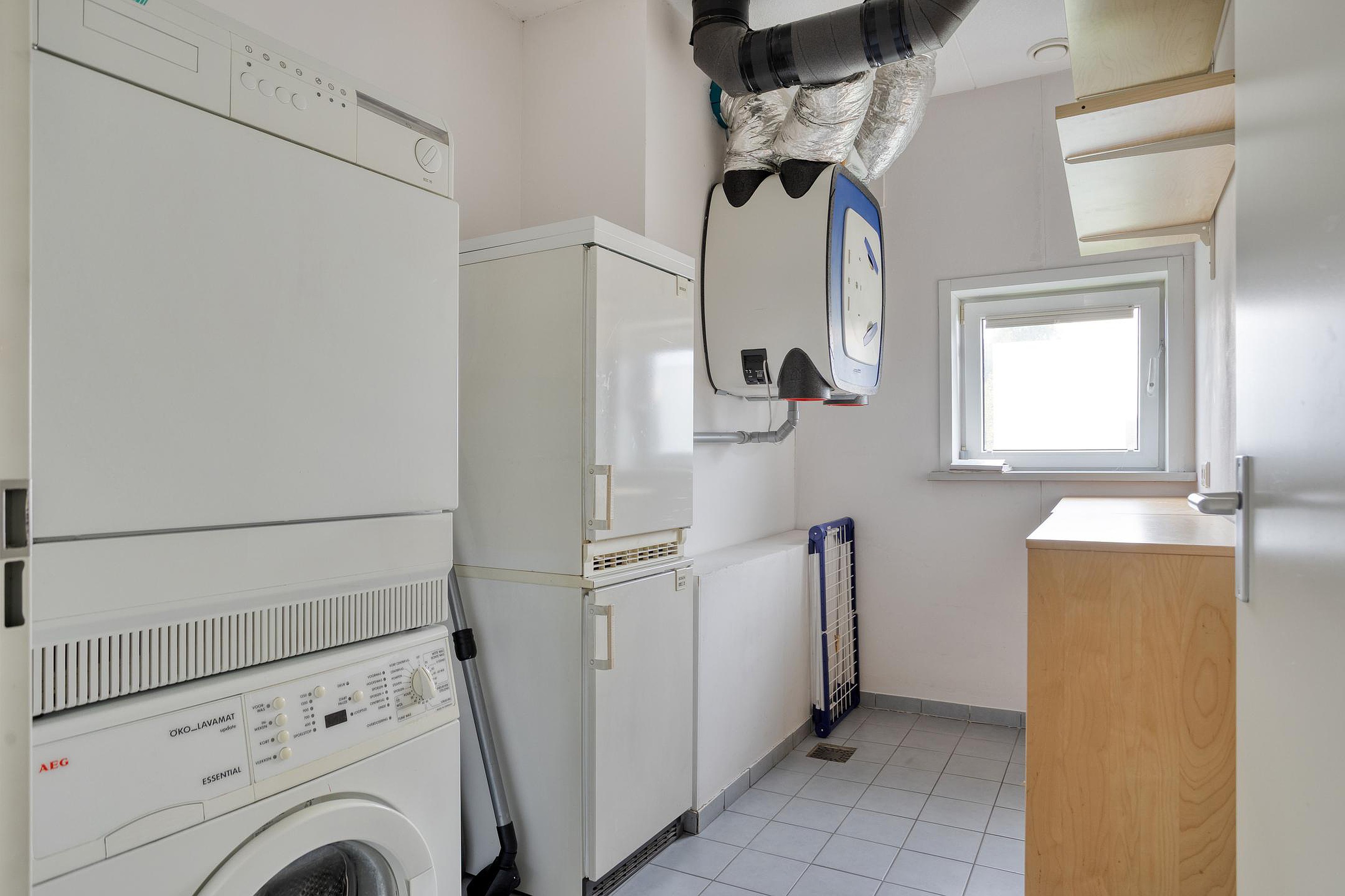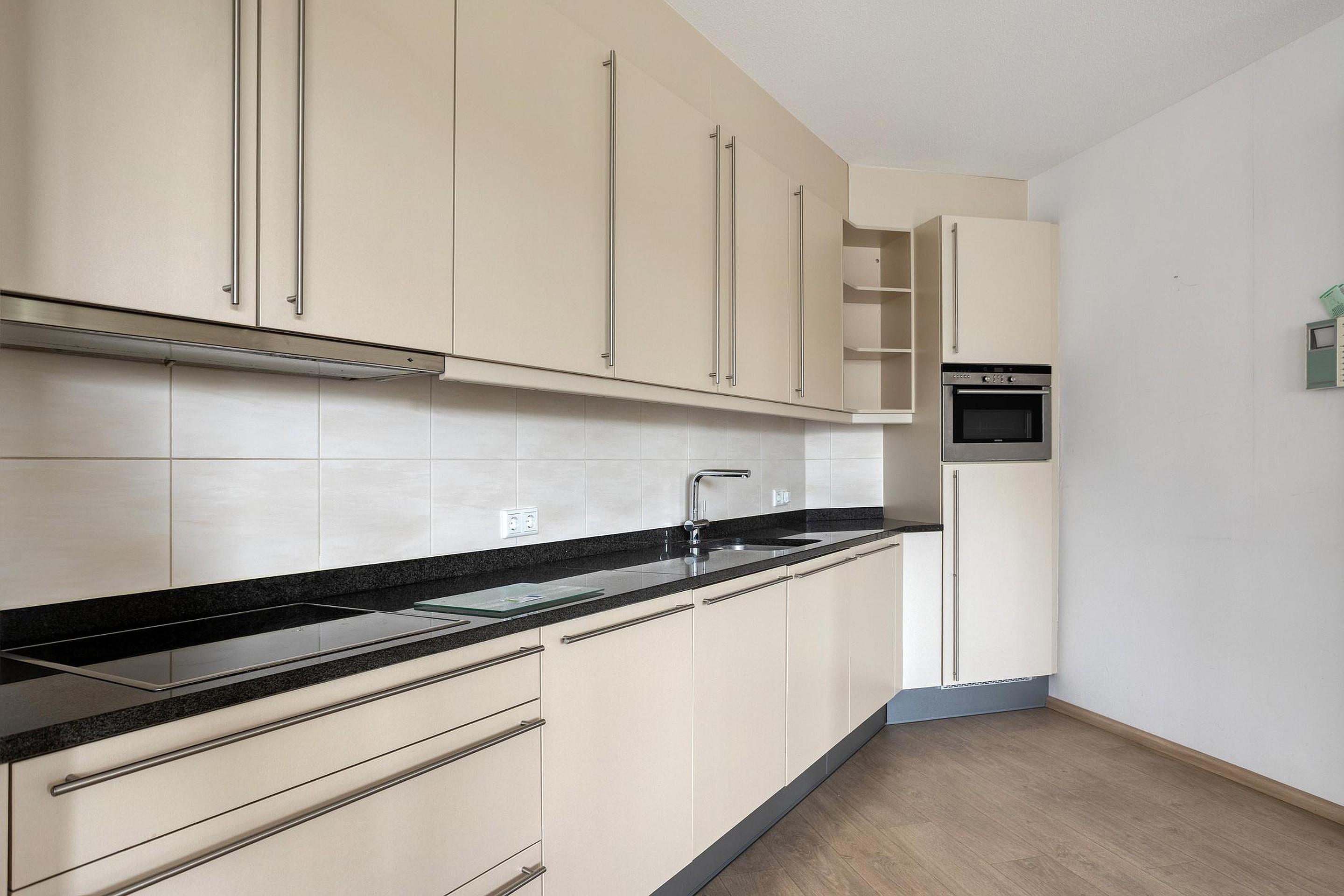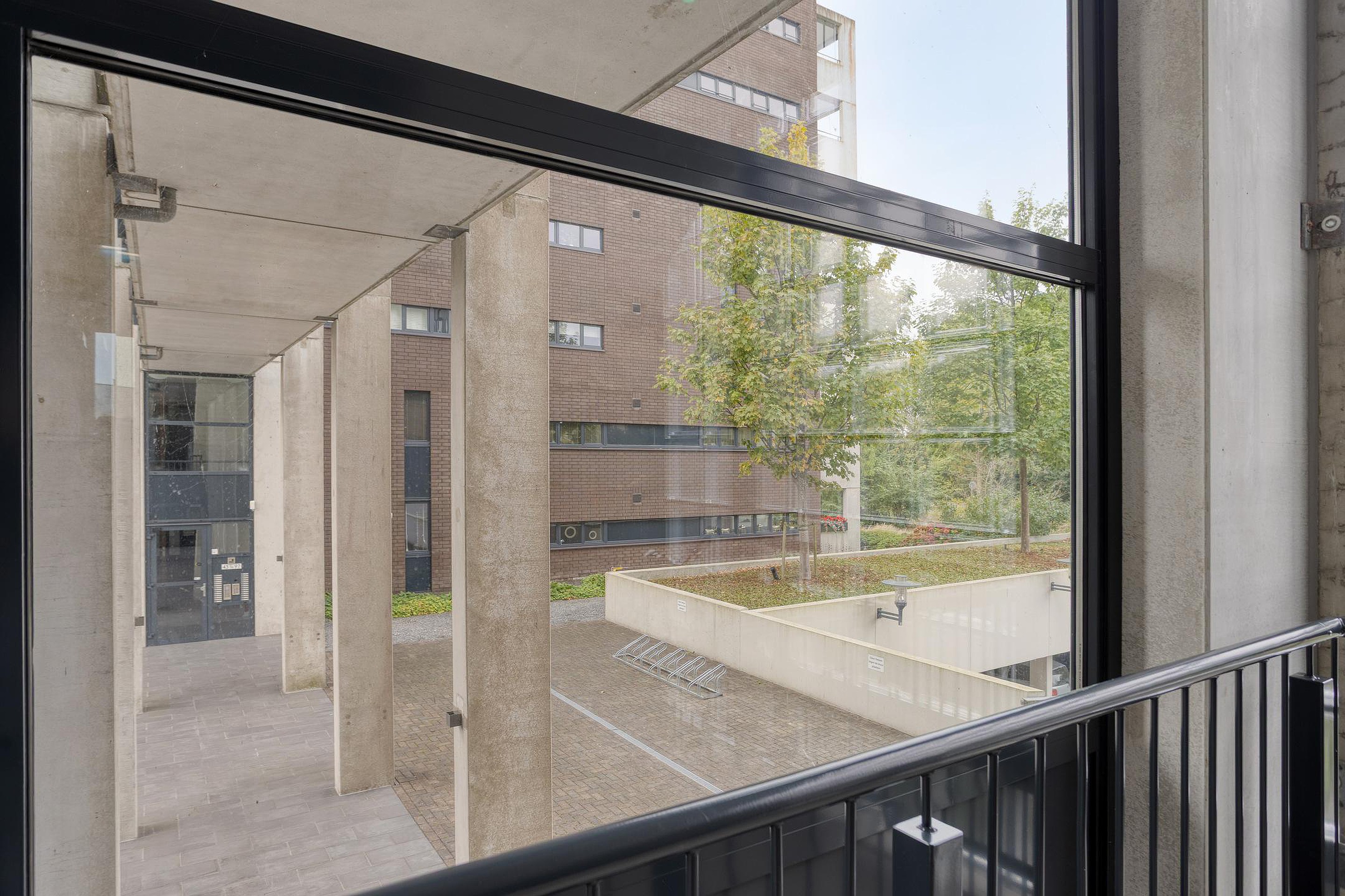 Het woongedeelte is voorzien van een ruime lange hal, moderne meterkast, uitnodigende lichte woonkamer met toegang tot het balkon, open keuken, dubbele balkondeur, twee slaapkamers (waarvan één met toegang tot het balkon), complete badkamer met wastafelmeubel en douche, separaat toilet met fonteintje en een bijkeuken berging technische ruimte met witgoedaansluitingen én Wtw-installatie. De keukeninrichting is praktisch en is voorzien van inbouwapparatuur (inductie kookplaat, combi-oven/magnetron, vaatwasser, koelkast en afzuigunit).