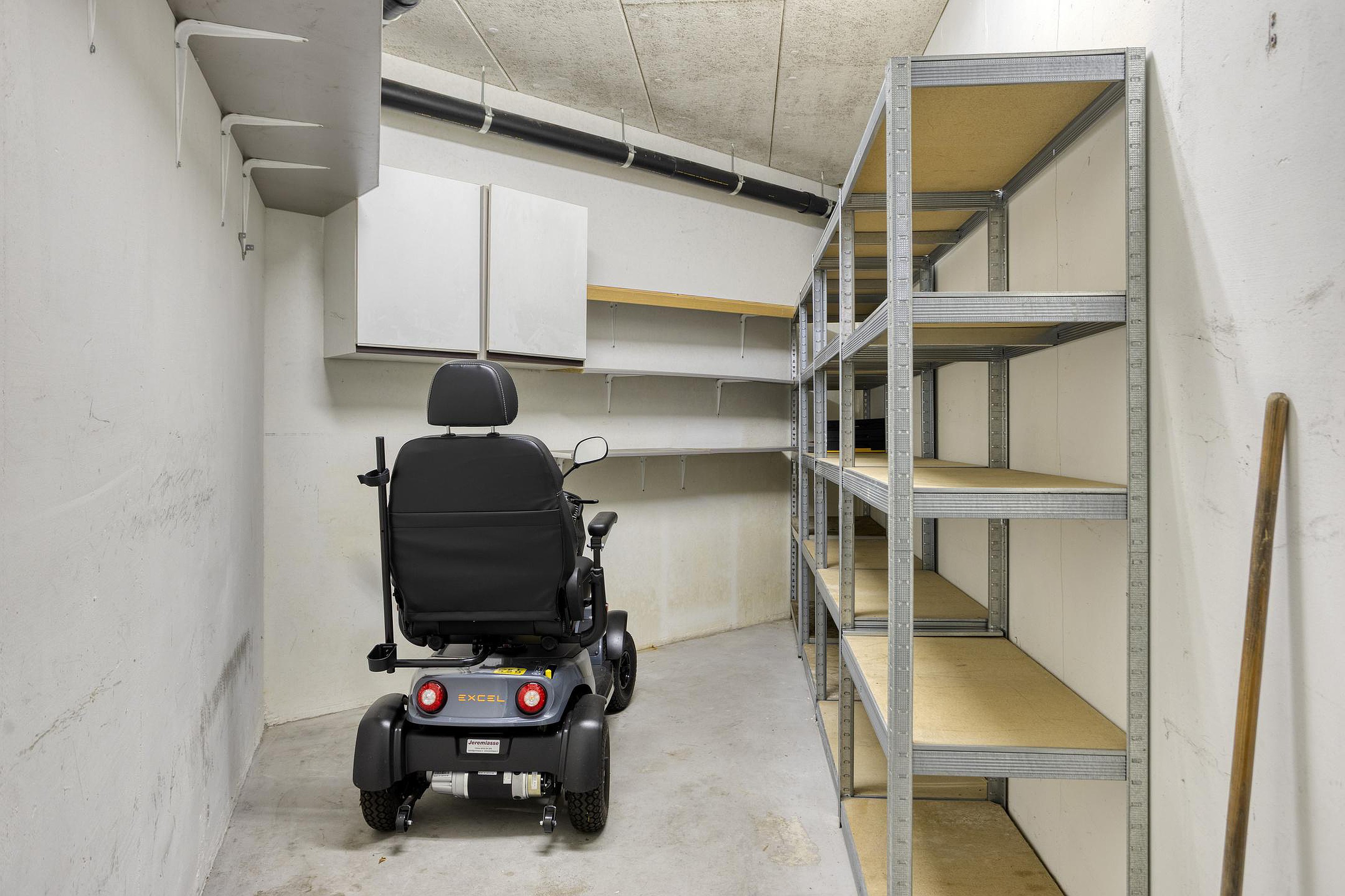 In het, met de lift of trap bereikbare, souterrain bevindt zich een eigen garageplaats (eenvoudig in te rijden) en eigen berging met elektra. Deze bieden ruim voldoende plaats aan uw auto, uw fiets en overige spullen. Ook bezoekers hebben de gelegenheid om vóór het appartementencomplex overdekt te parkeren.