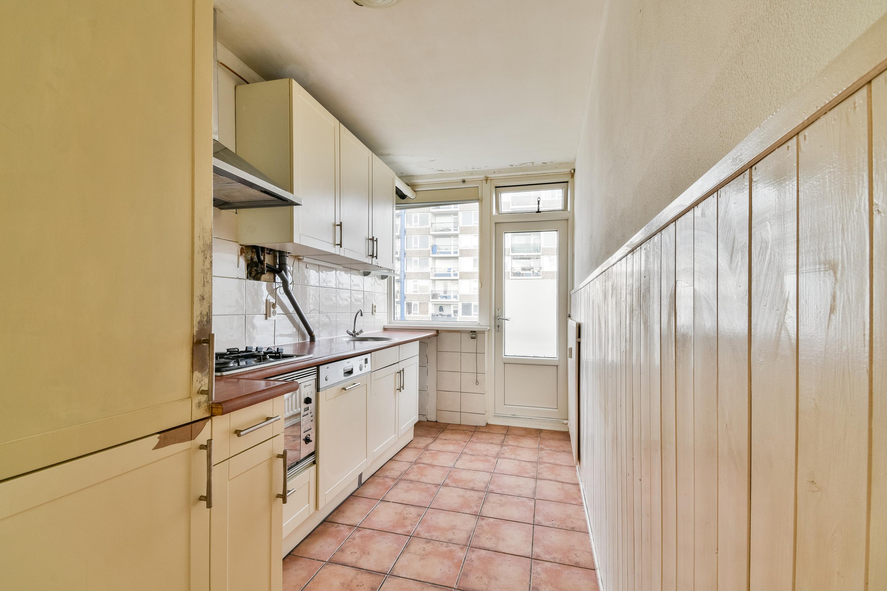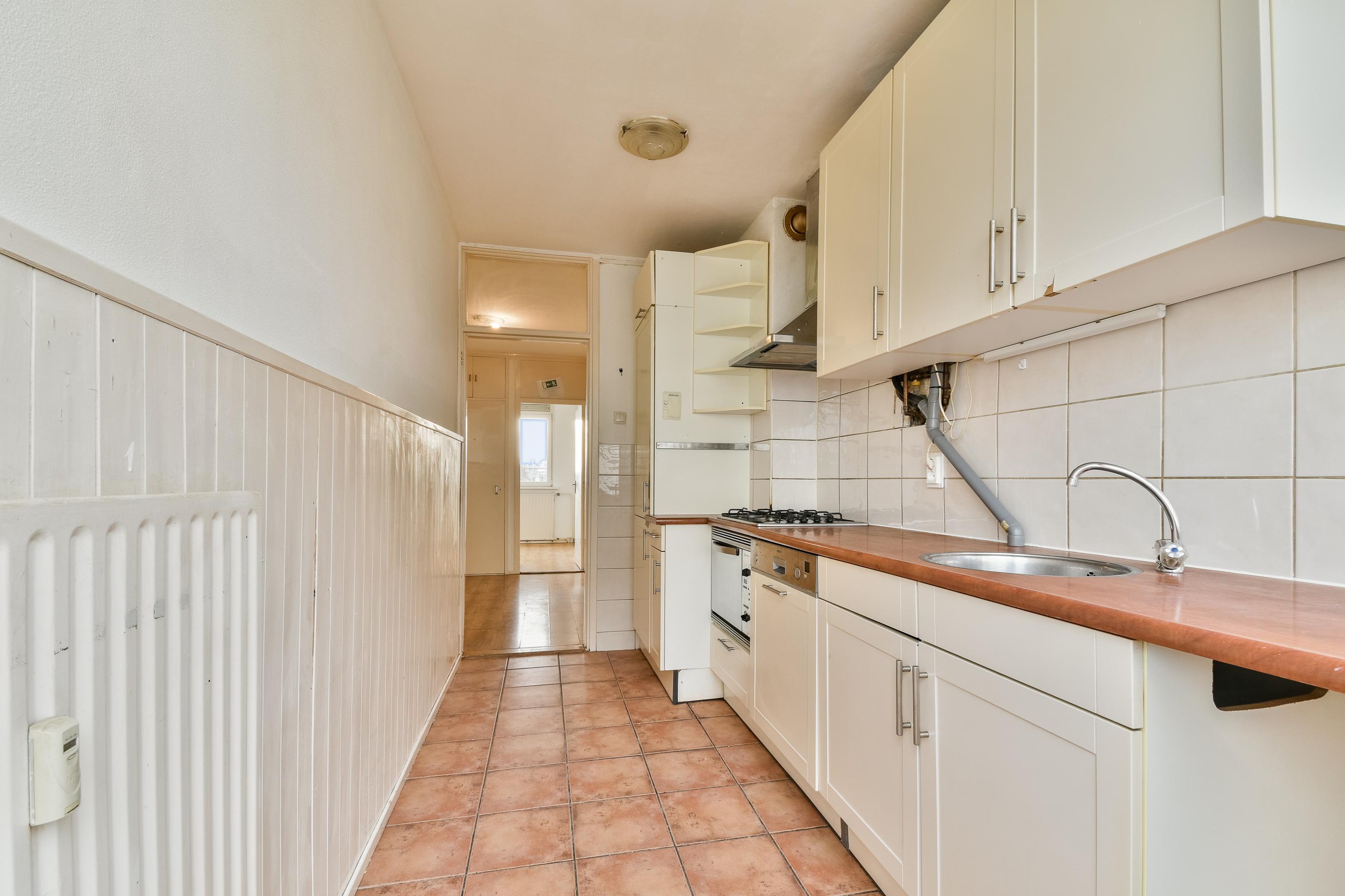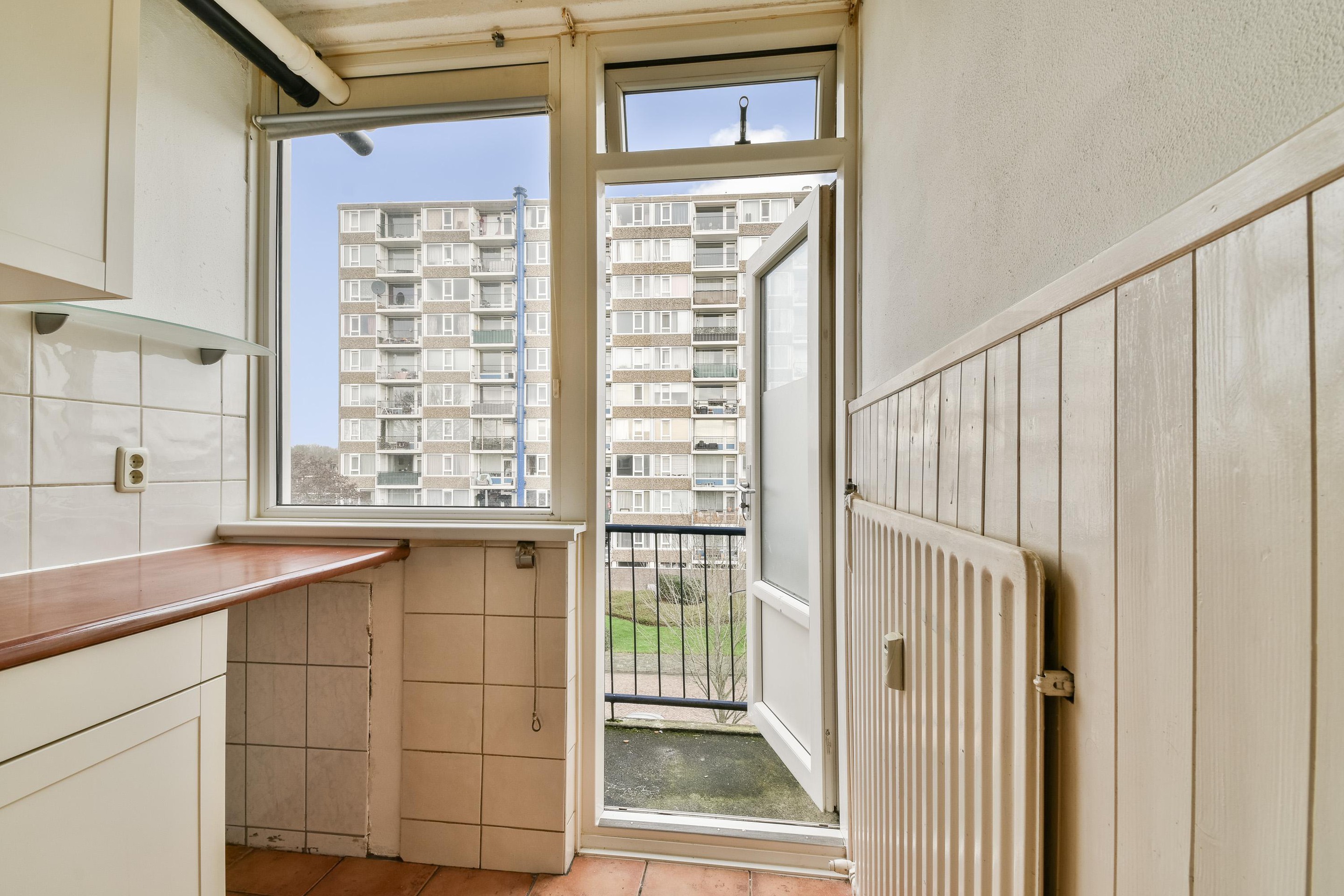 De woonkamer grenst aan een riant balkon met zuidelijke ligging waar je vrijwel de hele dag van de zon kunt genieten. Vanuit de eenvoudige keuken is een tweede balkon bereikbaar; perfect voor een kop koffie in de ochtend of om een groene hoek met planten te creëren.