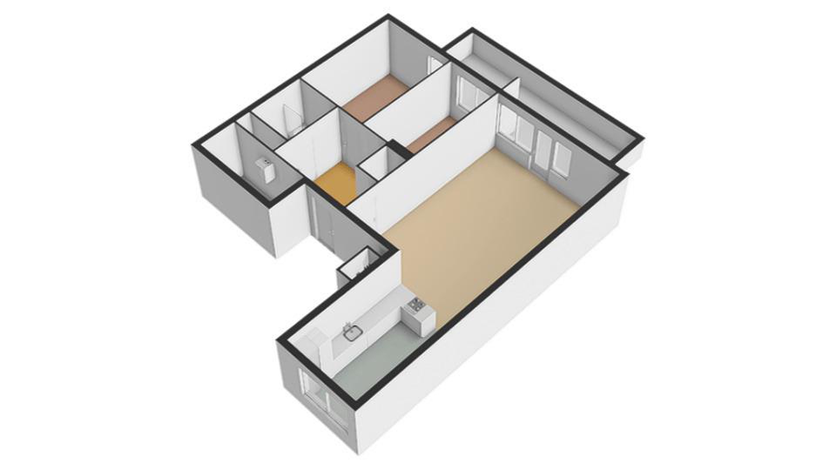 Step inside your private hall and enter the spacious living room with its chic, modern finish. From here, sliding doors lead to a fantastic balcony of approx. 20 m2 – perfect for relaxing or entertaining. The sleek open-plan kitchen is fully equipped with built-in appliances and an induction hob. Both bedrooms are generously sized, offering ample space for wardrobes. The stylish bathroom comes with a walk-in shower, towel shelves, a heated towel rail, and a vanity unit. There’s also a convenient utility room with space for your washing machine, dryer, and central heating system.