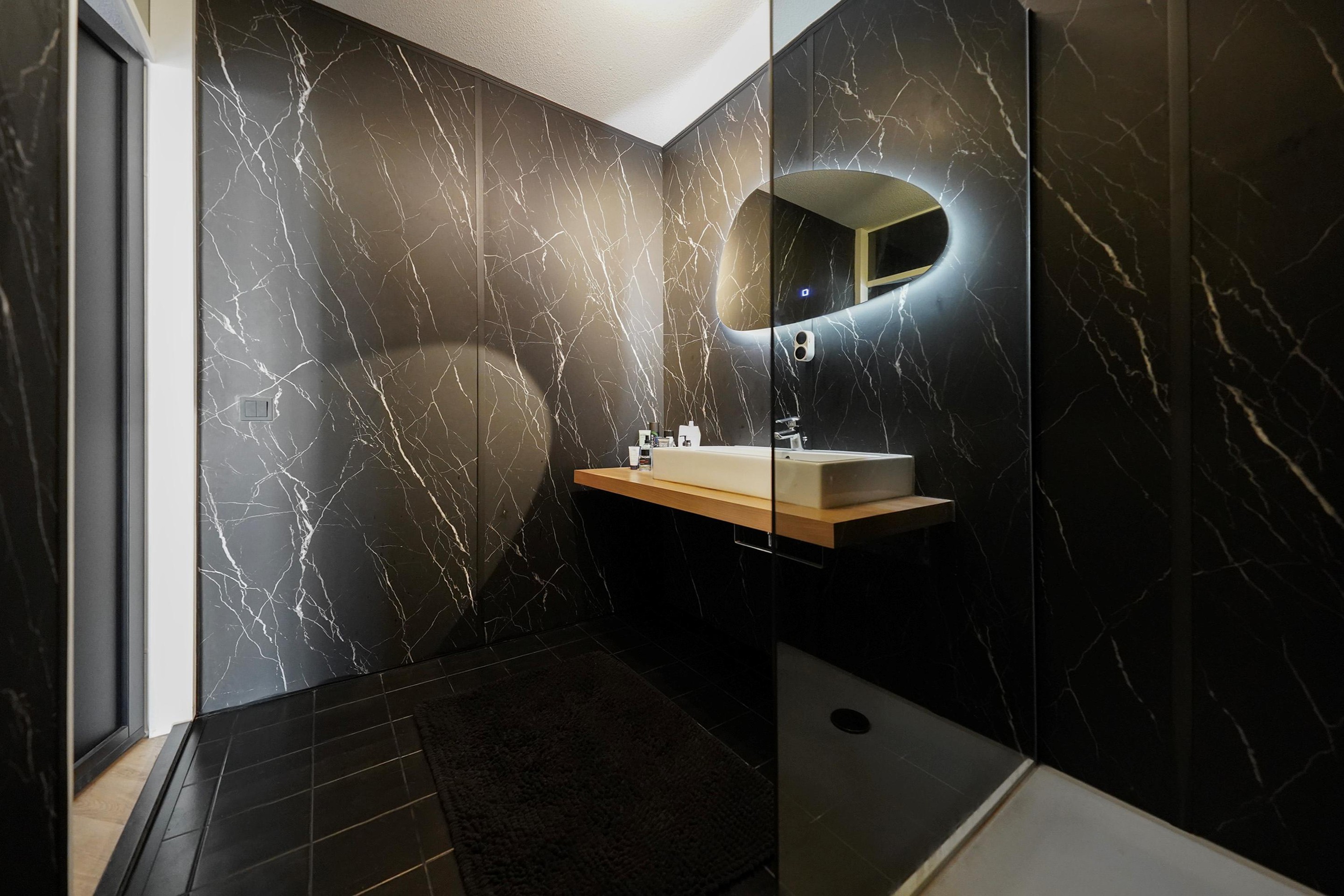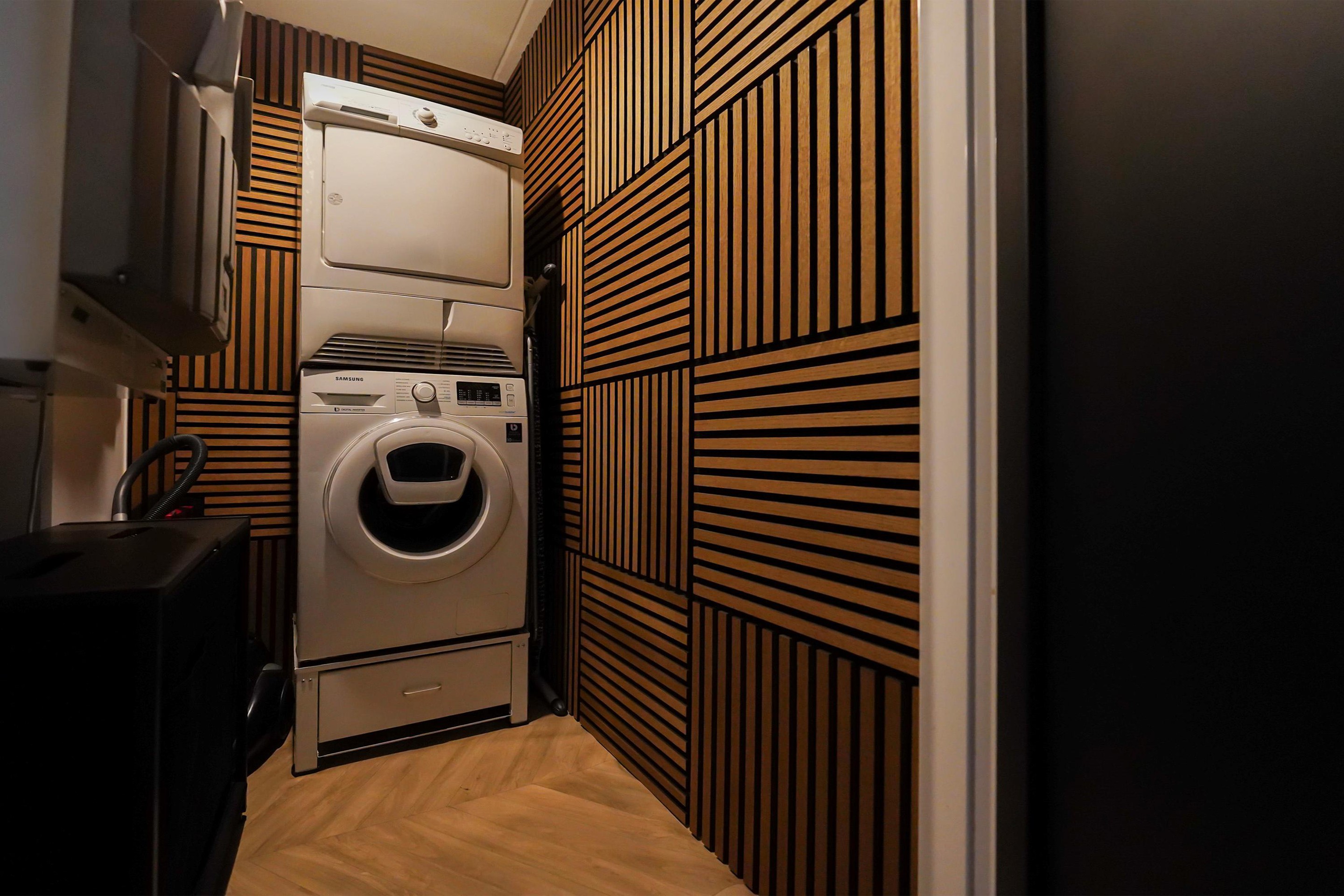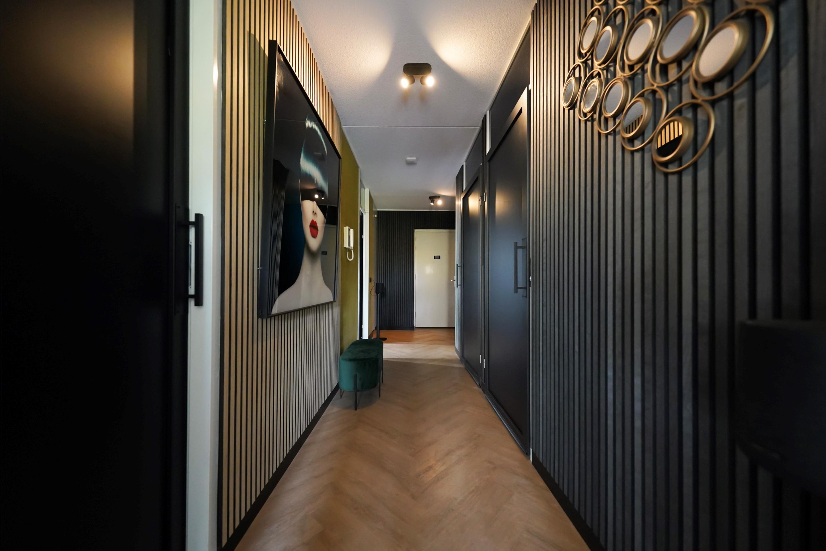 Allereerst is het natuurlijk ideaal dat je jouw auto inpandig kan parkeren. Er is ook voldoende ruimte als openbare parkeerplekken rondom het gebouw voor jouw visite. Je loopt gemakkelijk van je auto zo de lift in op de trap op. De algemene entree en de portieken zijn verzorgd en fris ingericht. Deze appartementen zijn dan ook voor verschillende doelgroepen heel geschikt. Zodra ik de woning binnen kom, ervaar ik een oase van luxe en sfeer. Wauw! Wat is deze woning uniek ingericht! Mooie houten wandpanelen, binnendeuren, visgraat pvc-vloerafwerking; overal is over nagedacht!