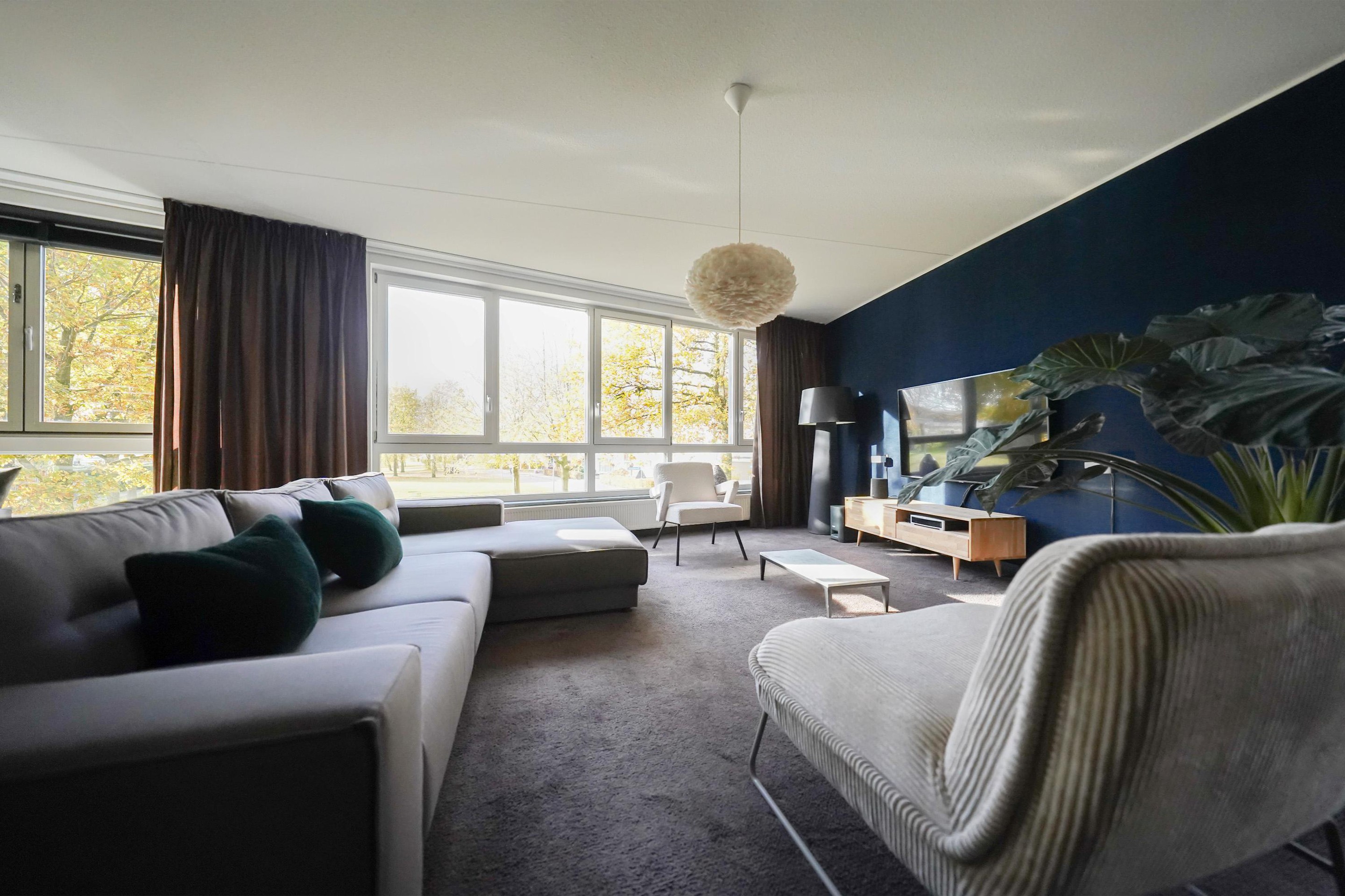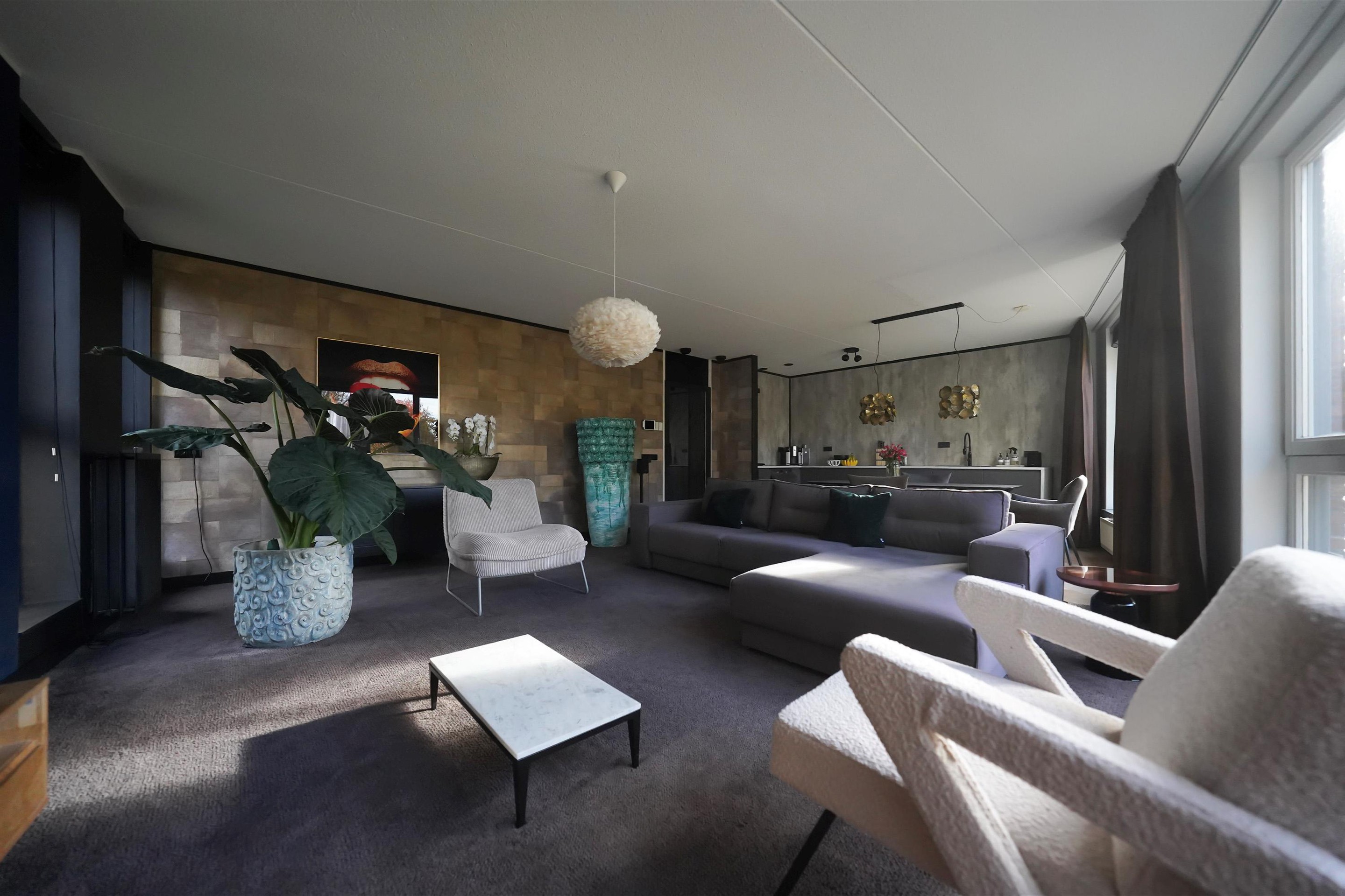 Ik loop meteen richting de woonkamer een de keuken en de ruimte verrast me. Door de grote raampartijen en zelfs nog een lang hoekraam is dit een heerlijke lichte een ruime leefruimte. Deze ruimte voelt als een penthouse. Je kijkt over een uitgestrekt groen plantsoen uit waar je de seizoenen perfect kunt beleven. De keuken is extra groot door de extra m2 die normaal als loggia was ingericht en waar je gemiddeld gezien heel weinig gebruik van maakt toch? Nu is er een heerlijke grote hoekkeuken in 2025 gerealiseerd! Slim! In het lounge-gedeelte kan een fijne grote zitopstelling staan zoals je ook wel op de foto’s kan zien.