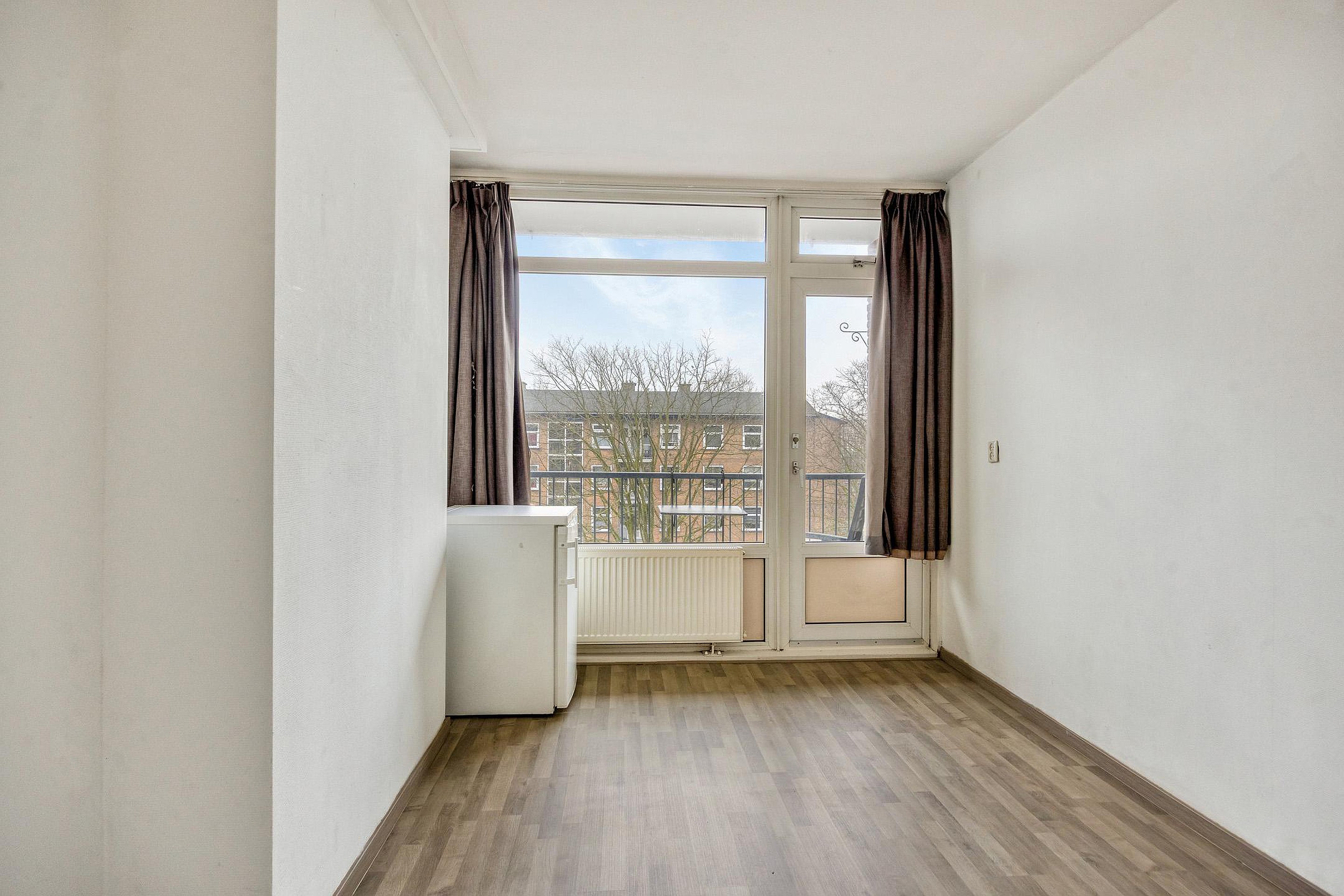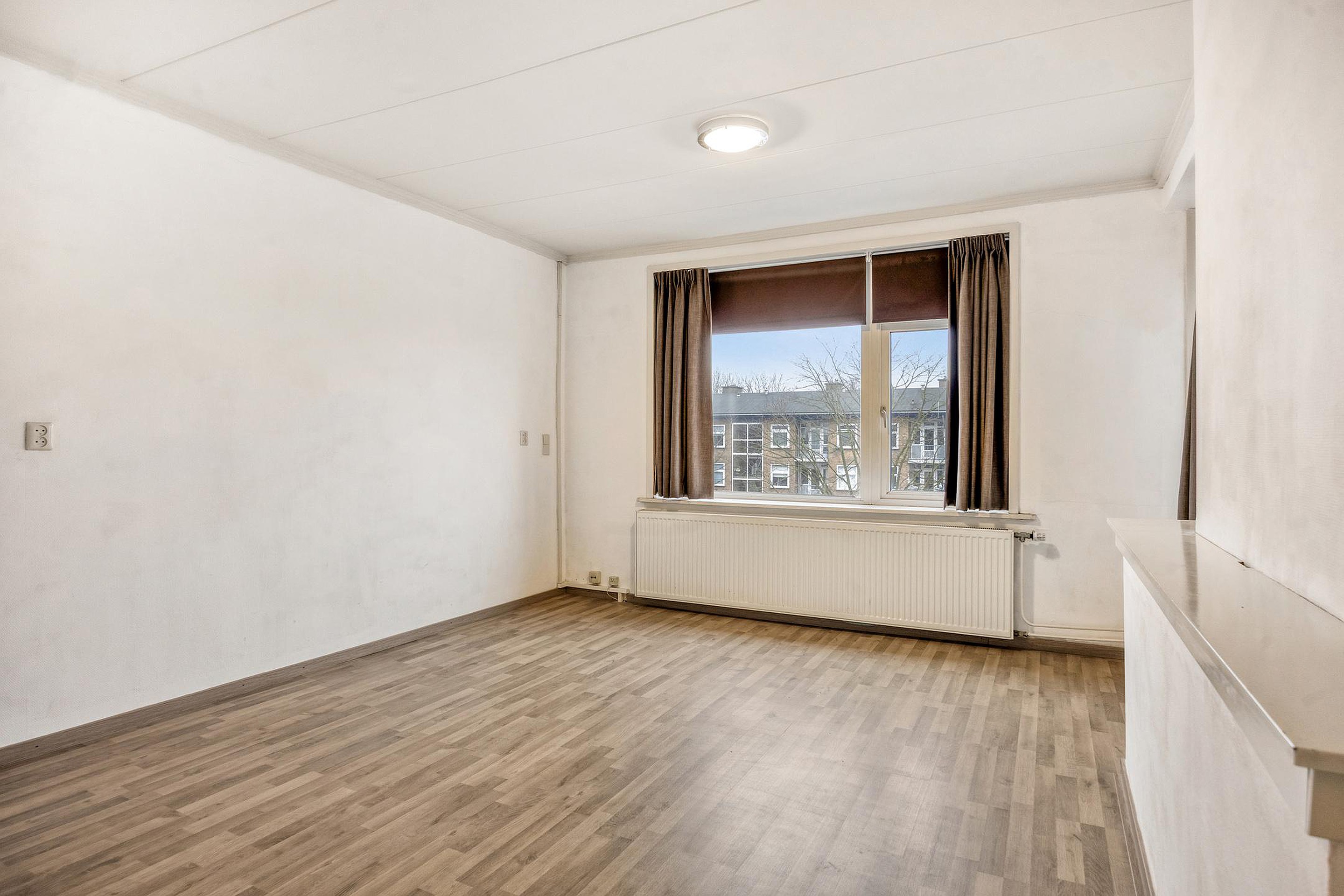 Entree met meterkast en centrale hal die toegang biedt tot alle vertrekken. De gesloten keuken biedt toegang tot het eerste balkon en is uitgerust met een afzuigkap, een CV-ketelopstelling en een witgoedaansluiting. Ruime woonkamer met toegang tot het tweede balkon. In totaal drie slaapkamers. Badkamer met inloopdouche en wastafel. Separaat toilet.