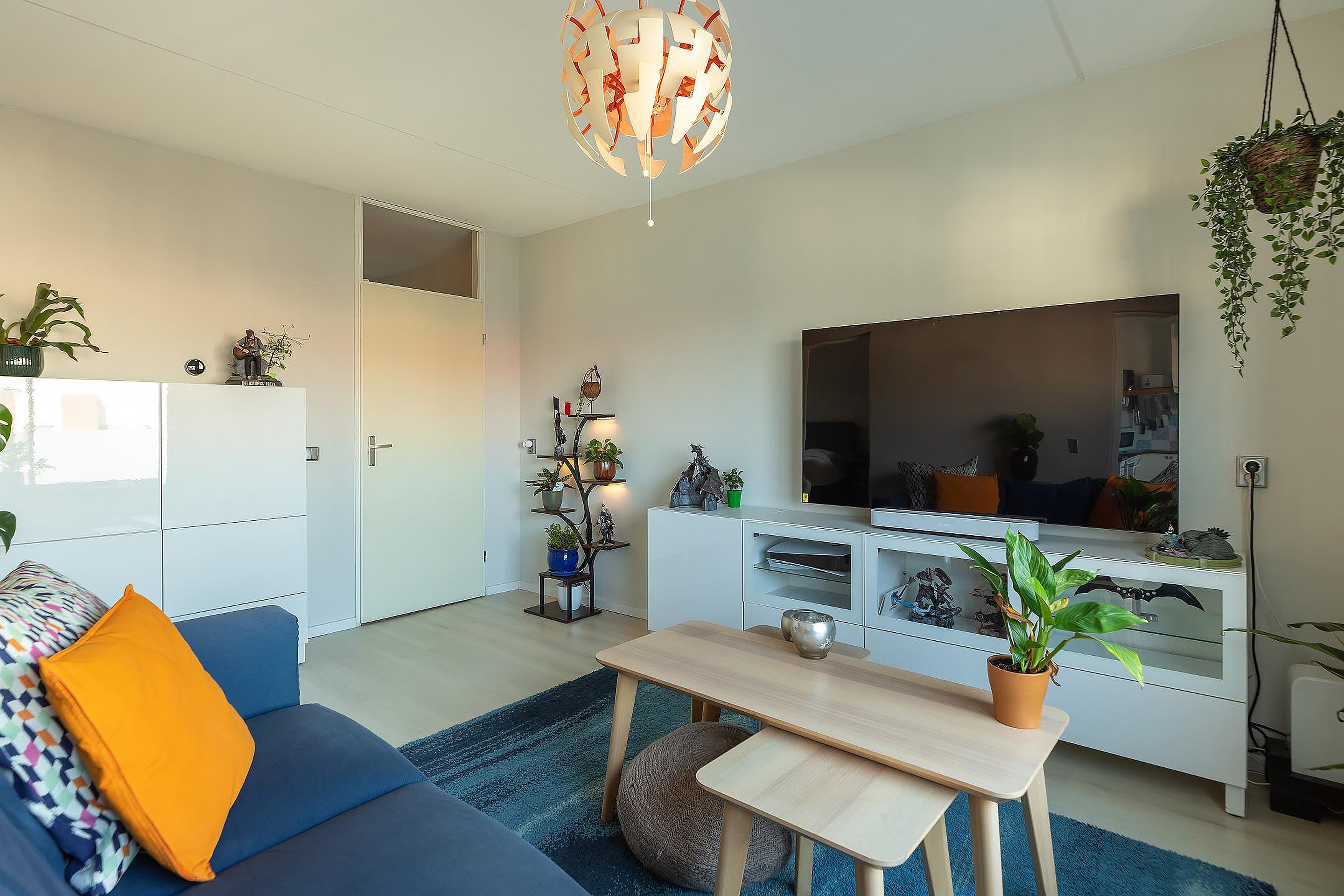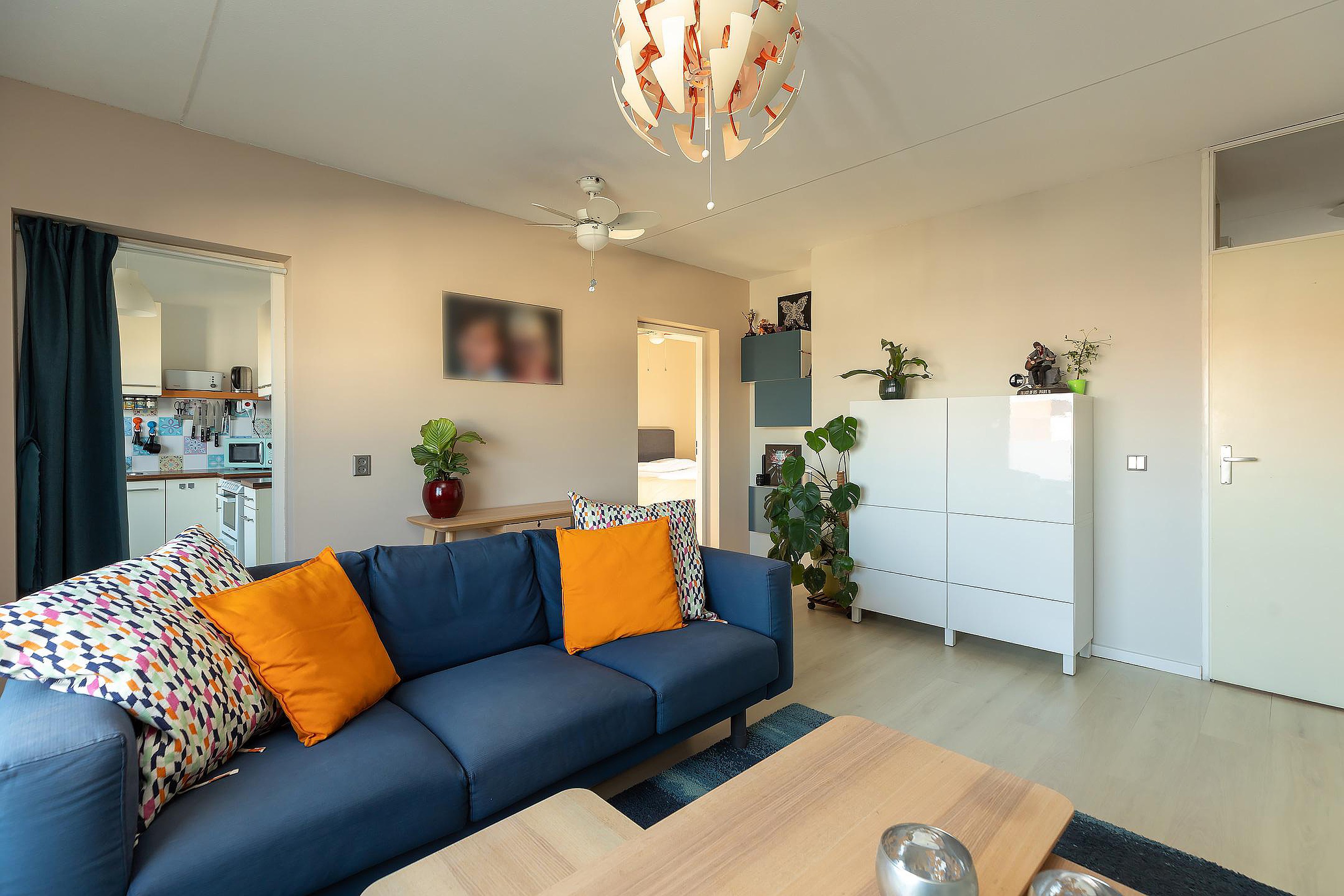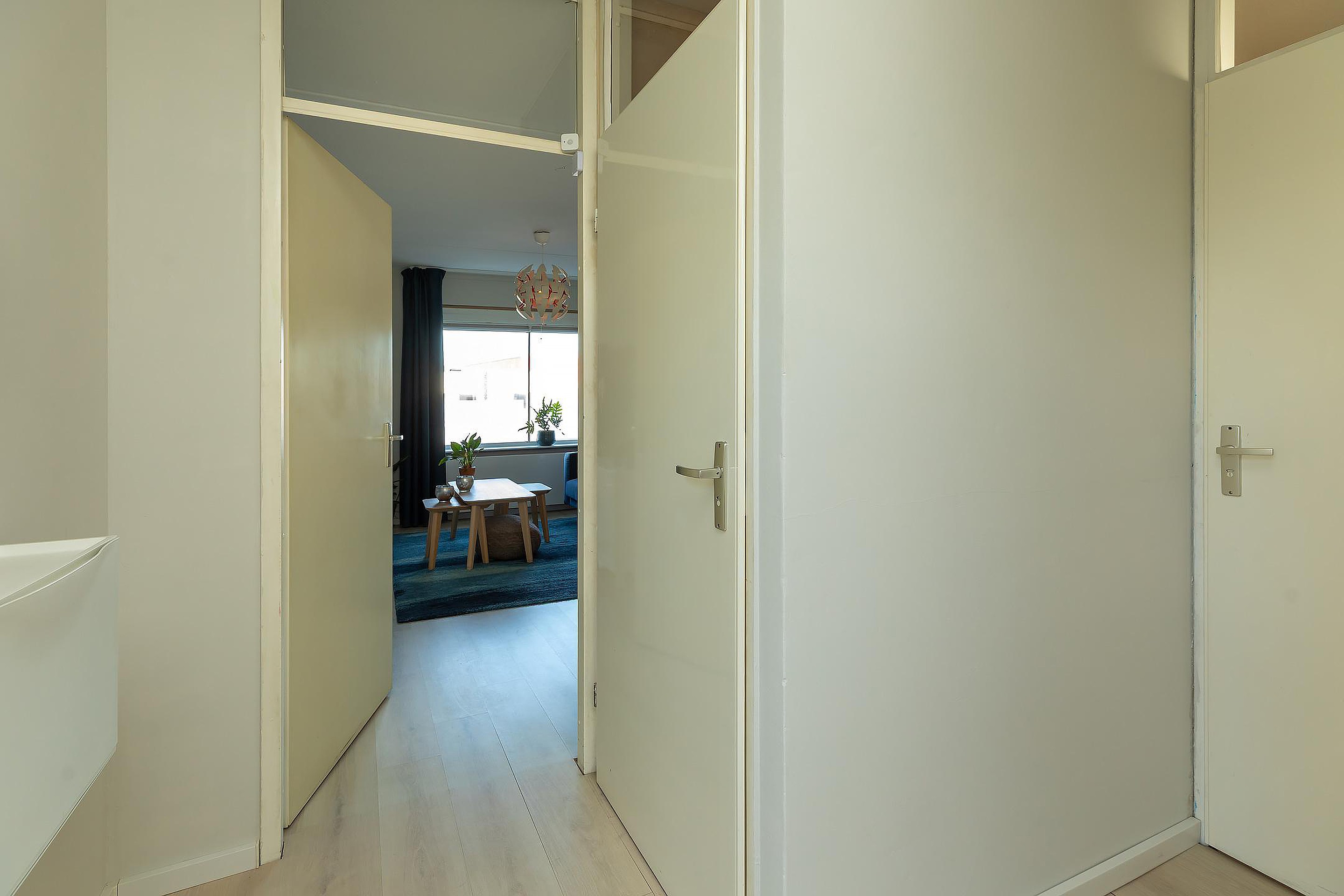 Bij binnenkomst stap je de hal in, die toegang biedt tot alle vertrekken. Vanuit hier ontvouwt zich een prettige en overzichtelijke indeling. De woonkamer ligt aan de voorzijde van het appartement en profiteert van veel lichtinval. De ruimte biedt volop mogelijkheden voor het creëren van een comfortabele zithoek en een gezellige eethoek.