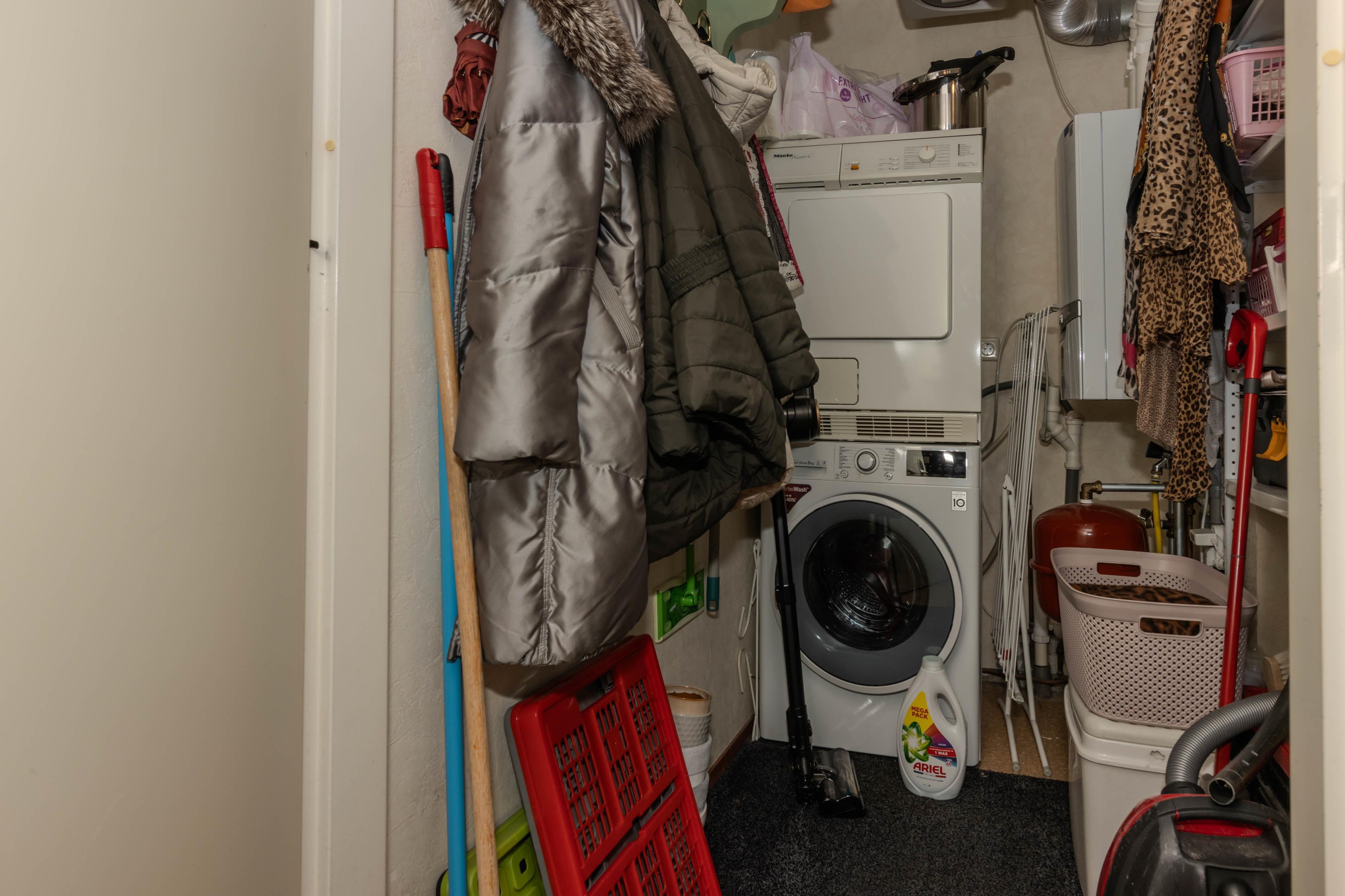 De technische ruimte is voorzien van de aansluiting voor wasmachine- en droger.