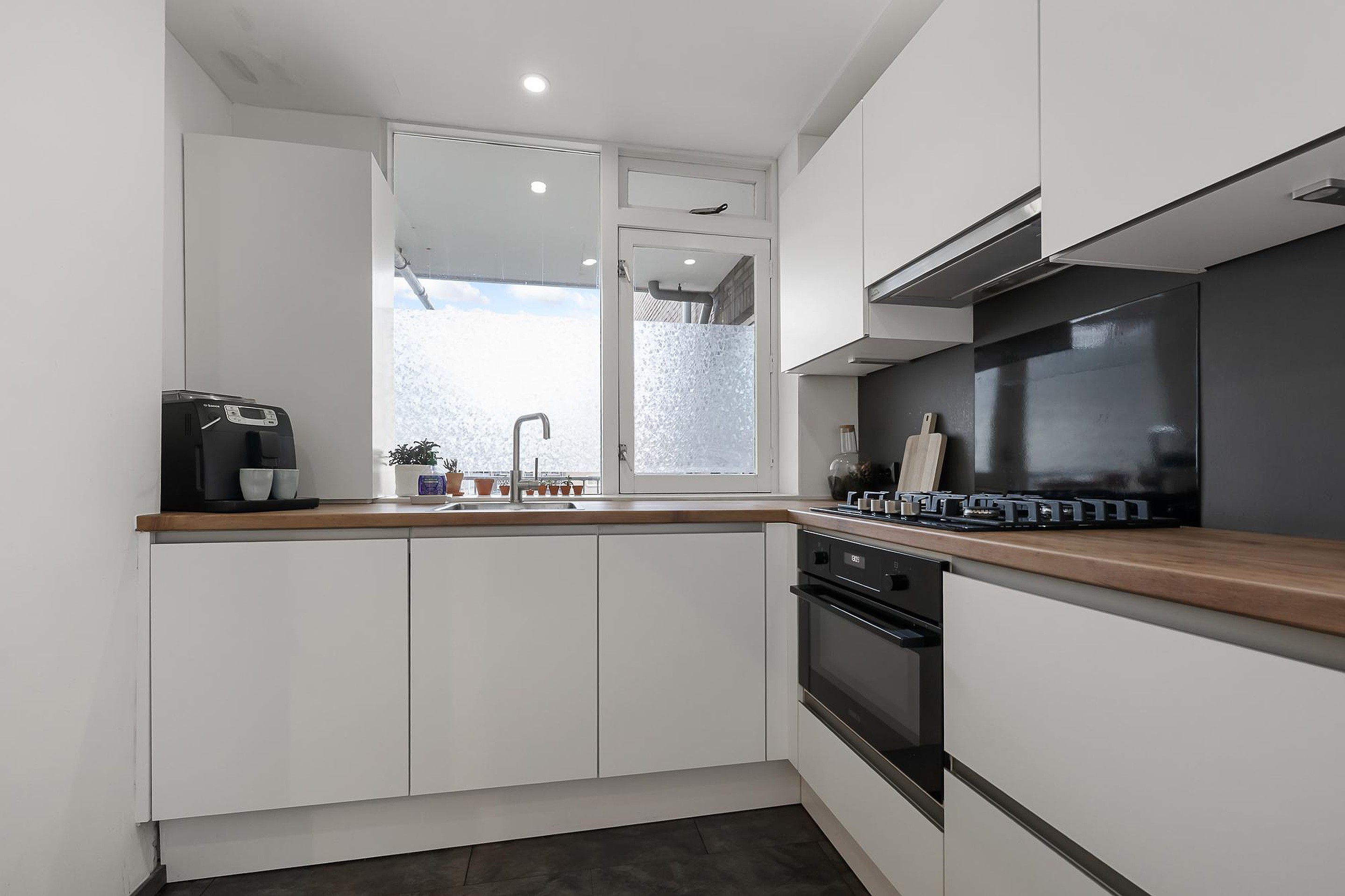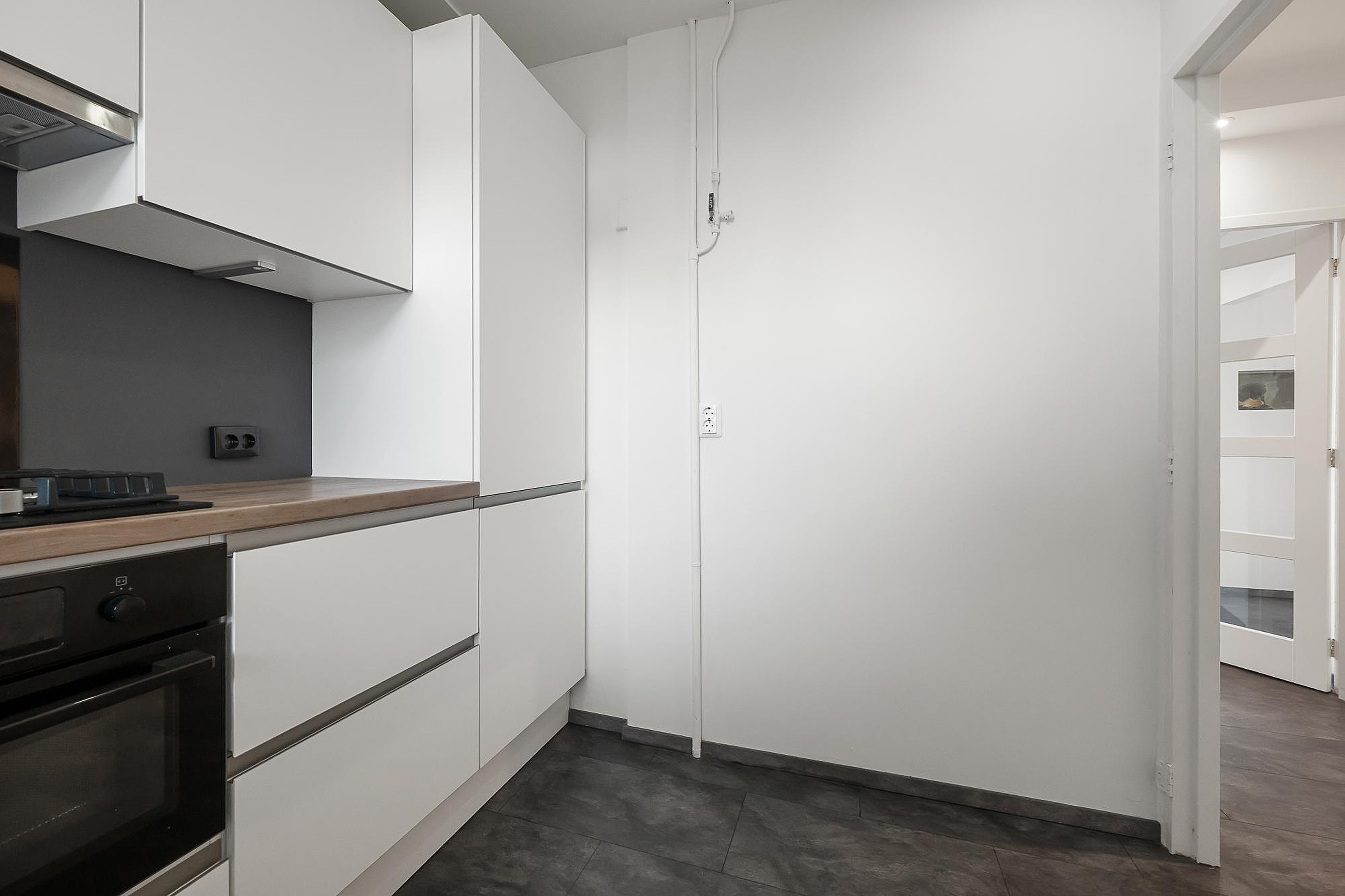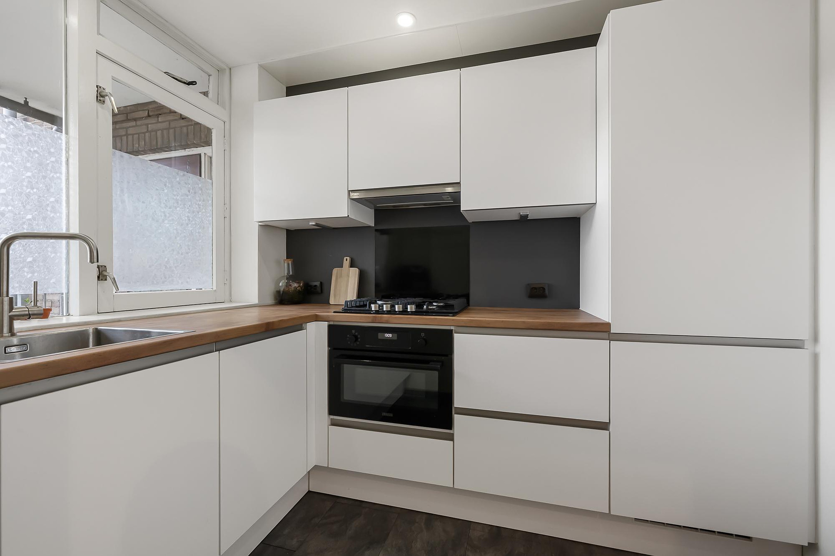 Via de entree bereik je de hal met meterkast. De moderne keuken is praktisch opgezet en voorzien van diverse inbouwapparatuur, wat zorgt voor optimaal kookgemak. De sfeervolle woonkamer is heerlijk licht en vormt een fijne plek om te ontspannen dankzij de grote raampartijen en prettige lichtinval.