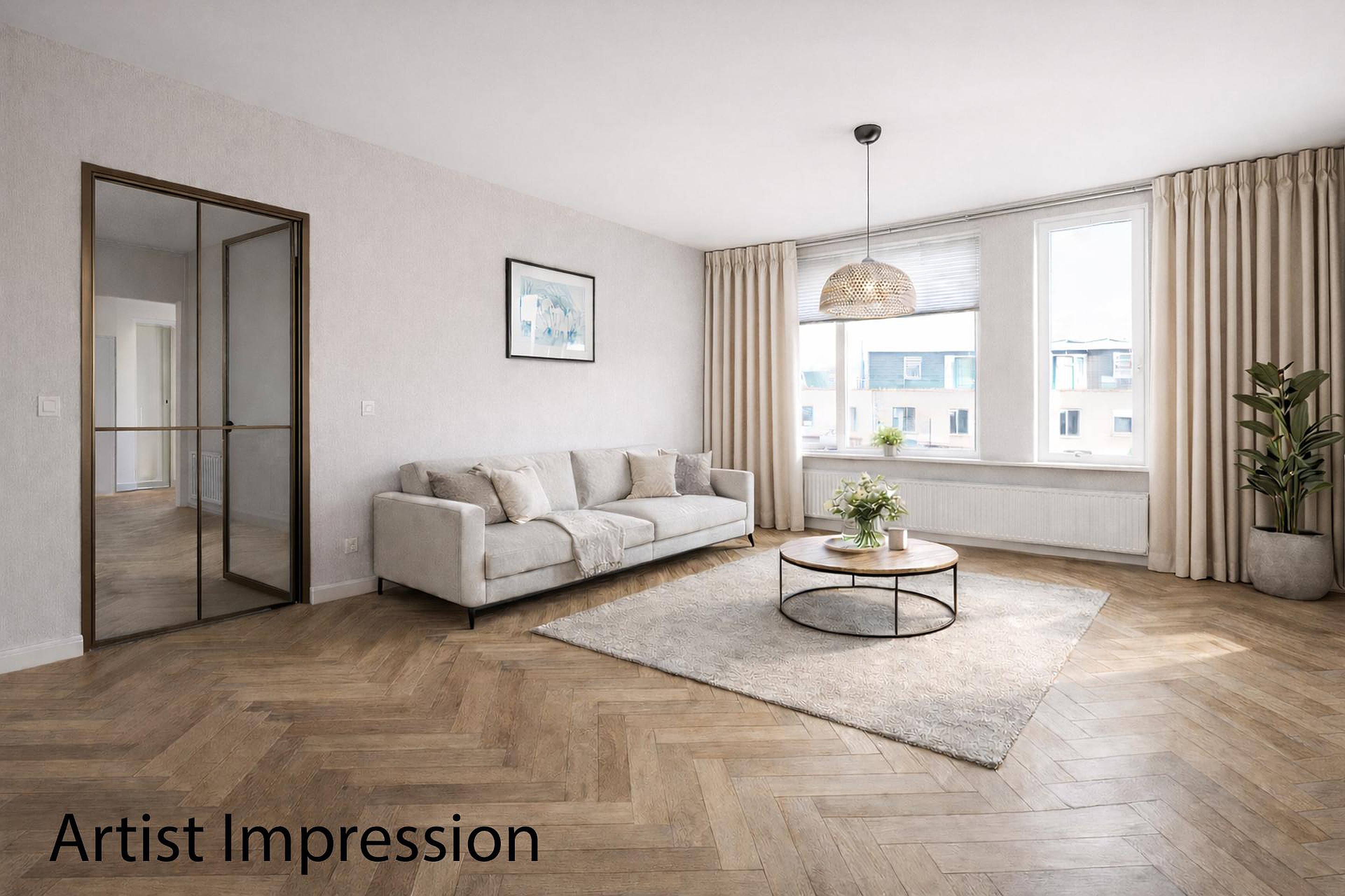 Gelegen op de hoek op de tweede etage mogen we jullie dit ruime 4-kamer appartement laten zien. Het appartement heeft maar liefst drie goede slaapkamers en heeft door de hoekligging een fijne lichtinval van drie kanten. Via de woonkamer met open keuken kom je op het zonnige en ruime balkon op het zuidwesten. Hier geniet je de hele dag van de zon en heeft door de vierkante vorm genoeg ruimte om met meerdere om een tafel te zitten om gezellig met z'n allen buiten te eten. De woning staat leeg en juist daarom hebben we Artist Impression foto's bijgevoegd ter inspiratie. Met een nieuwe vloer, een nieuwe tussendeur en eigen meubelen kan je er al snel je eigen woning van maken.