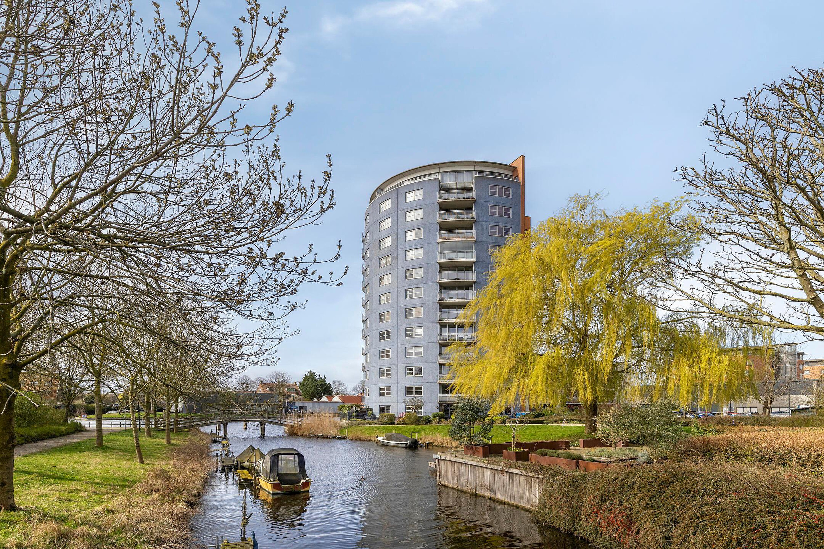 Entree woning. Gang met meterkast, toiletruimte en een vaste (berg)kast met stadsverwarmingsinstallatie en de opstelplaats voor de mechanische ventilatie-unit. De badkamer is voorzien van een wastafel, doucheruimte, radiator en de wasmachineaansluiting. Aan de achterzijde van het appartement bevindt zich de ruime ouderslaapkamer en een slaapkamer welke ook uitermate geschikt is als studie-, hobby- en/of kinderkamer. Vanuit beide slaapkamers geniet u van leuk vrij uitzicht over o.a. de Oude Rijn. De royale woonkamer verdient zeker uw aandacht! Deze lichte woonkamer is voorzien van een grote raampartij, videofooninstallatie en een gezellige open keuken. Er is genoeg ruimte voor een grote eettafel. Leuk wanneer u vrienden of familie hebt uitgenodigd voor een diner! De keuken beschikt o.a. over een keramische kookplaat, koel/vriescombinatie en een vaatwasser. Via een deur in de woonkamer heeft u toegang tot het fijne balkon gelegen op het oosten. Beeldt u eens in… Het is zomer. U komt thuis aan het einde van de dag. Even bijkomen en de dag doorspreken onder het genot van een gekoeld drankje met gedeeltelijk uitzicht op o.a. voorbijkomende (plezier)vaart. Onwerkelijk?