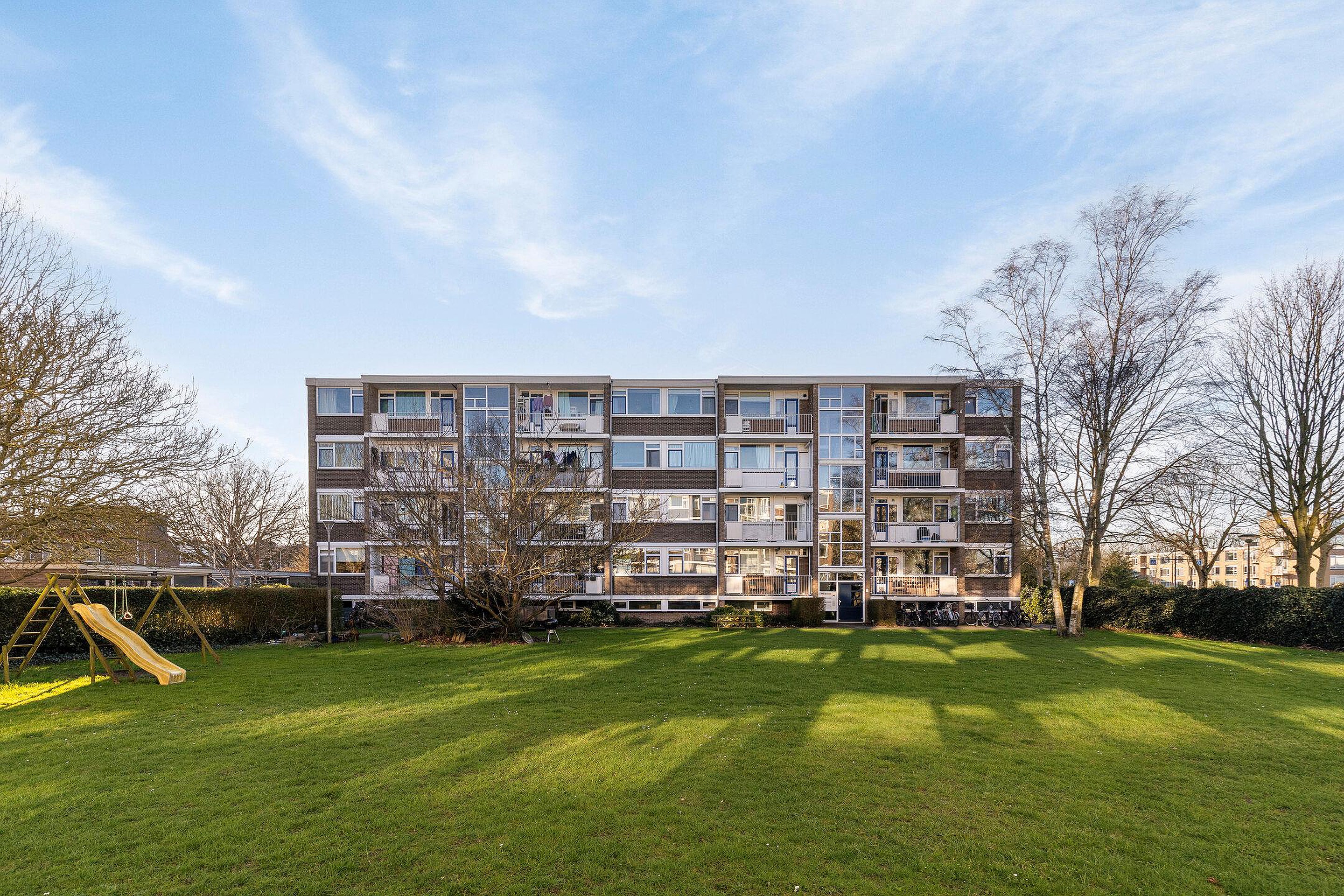 In de Componistenwijk vindt u dit per direct te betrekken 4-kamerappartement gelegen op de 1e woonlaag van het op een centrale locatie gelegen appartementencomplex in Leiden. Lichte woonkamer, afgesloten keuken, badkamer met douche, drie slaapkamers en een balkon met fijn groen uitzicht op de gemeenschappelijke binnentuin. Nieuwsgierig geworden? Dit zijn enkele kenmerken van deze ideale starterswoning gelegen in een groene rustige woonomgeving welke uitermate geschikt is voor starters, maar ook voor gezinnen met kinderen. De ruime berging vindt u in de onderbouw. De woning is gelegen nabij winkelcentra De Luifelbaan en Wagnerplein, diverse sport- en recreatievoorzieningen, Bio Science Park, LUMC, universiteit, scholen, openbaar vervoer en uitvalswegen (A4/N11 en A44/N206). Met de komst van de RijnlandRoute is de bereikbaarheid nog beter geworden. NS Leiden Centraal, NS De Vink en het bruisende centrum van Leiden bevinden zich op fietsafstand.
