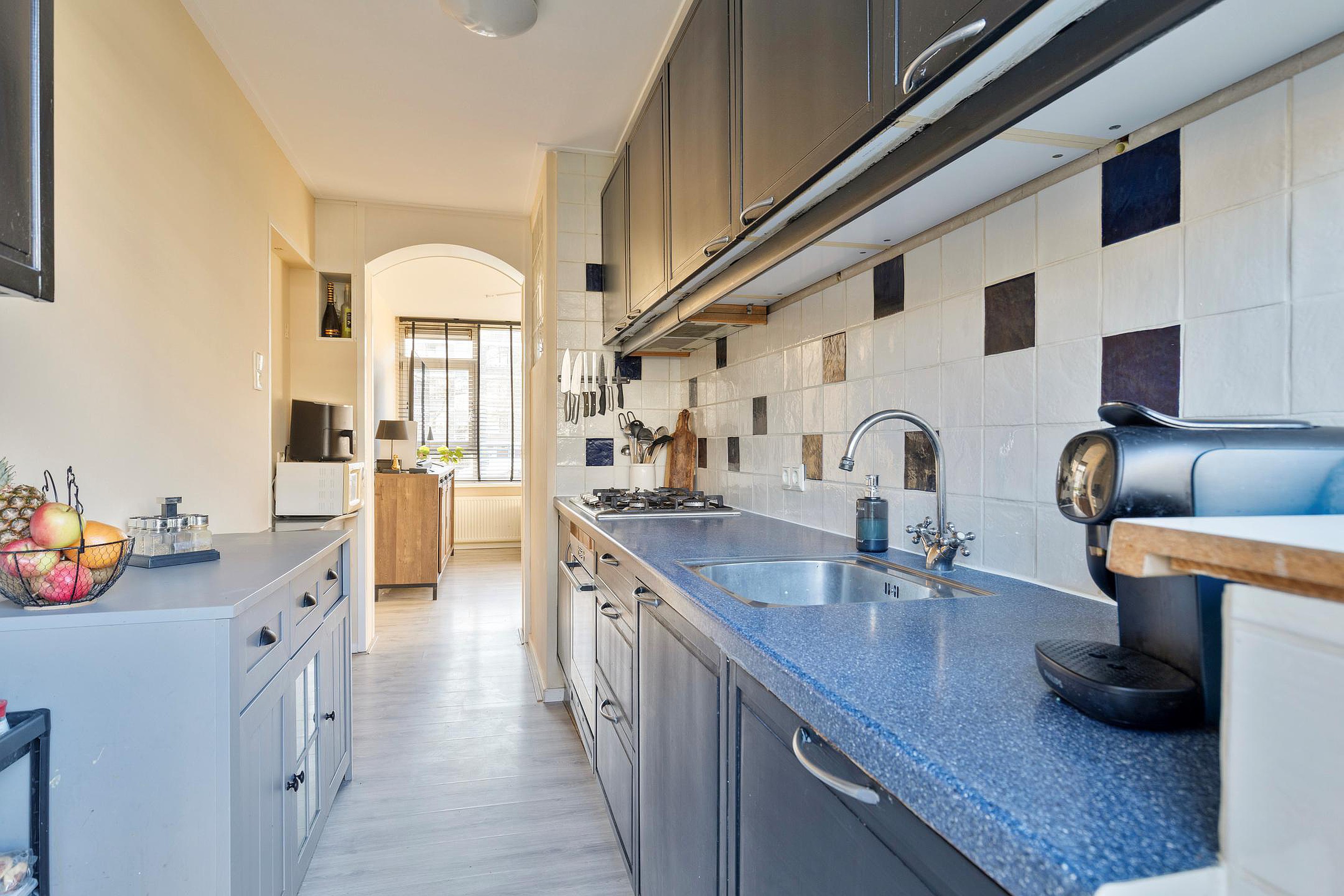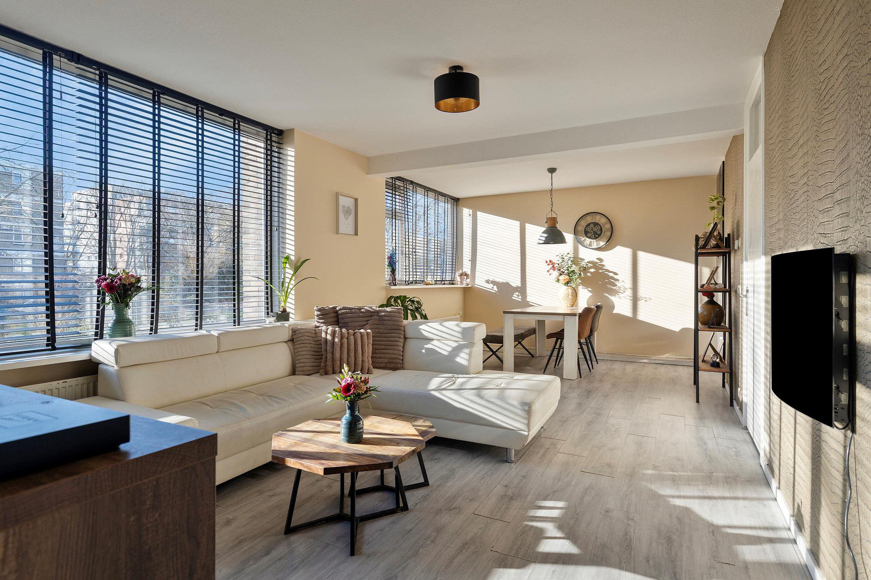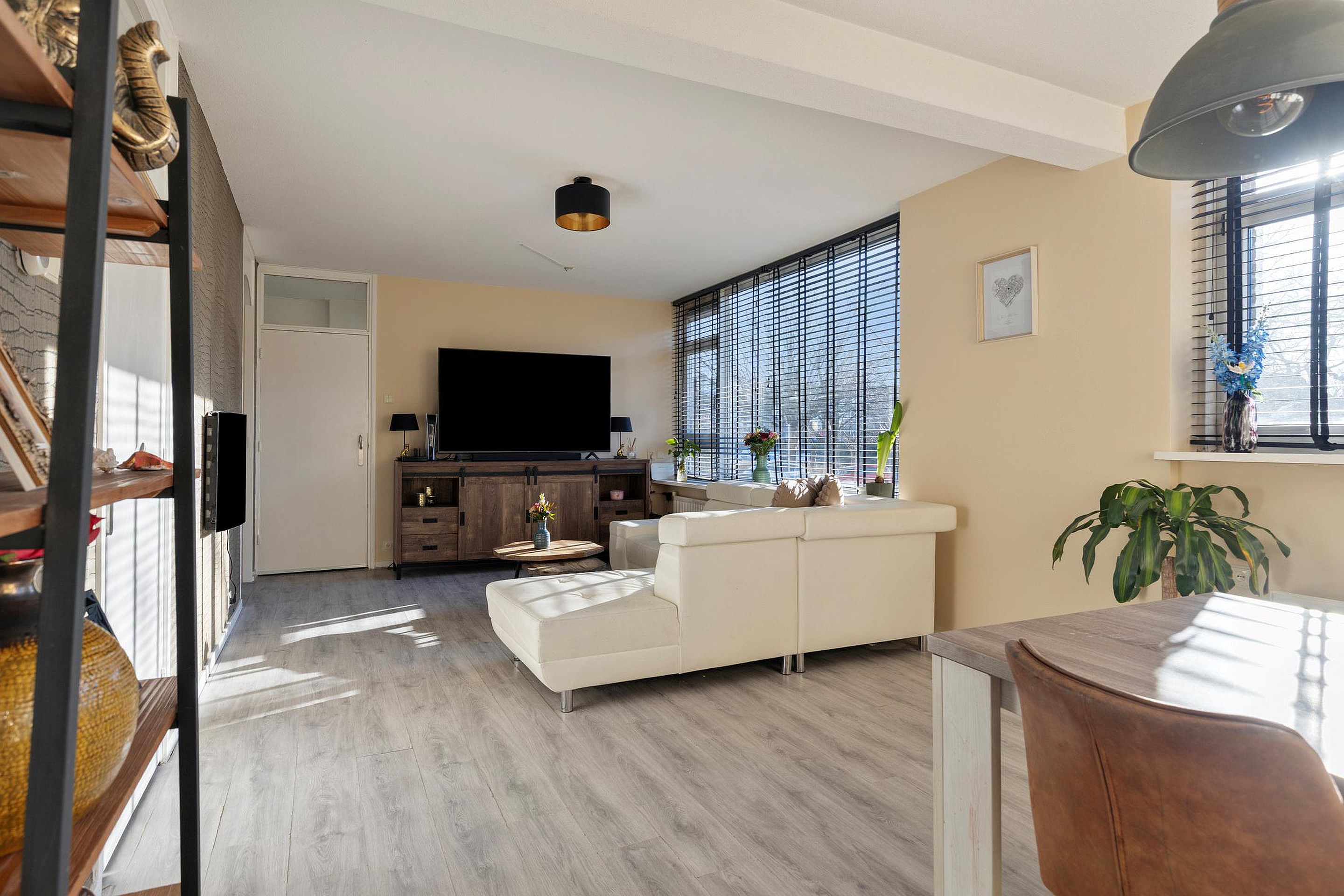 Entree woning, gang met meterkast, intercom en toegang tot een slaapkamer aan de achterzijde van de woning. Door de grote raampartij geniet u van een opvallend lichte woonkamer met leuk (groen) uitzicht. De vaste kast zorgt voor extra bergruimte. De keuken bevindt zich aan de voorzijde van de woning en beschikt o.a. over een 5-pitskookplaat, combi oven, vaatwasser en de opstelplaats voor de cv-ketel (2017 / huur: € 27,- per maand). Het balkon is gelegen op het oosten (ochtend-/middagzon). Het groene uitzicht op de gemeenschappelijke binnentuin maakt dit balkon extra aantrekkelijk. Via de tussenhal bereikt u de toiletruimte en de badkamer met wastafel, douche, designradiator en een tegelvloer met vloerverwarming. Aan de voorzijde van de woning bevindt zich een slaapkamer met vaste kast inclusief wasmachineaansluiting. De 3e slaapkamer bevindt zich ook aan de voorzijde van de woning en maakt het geheel compleet.