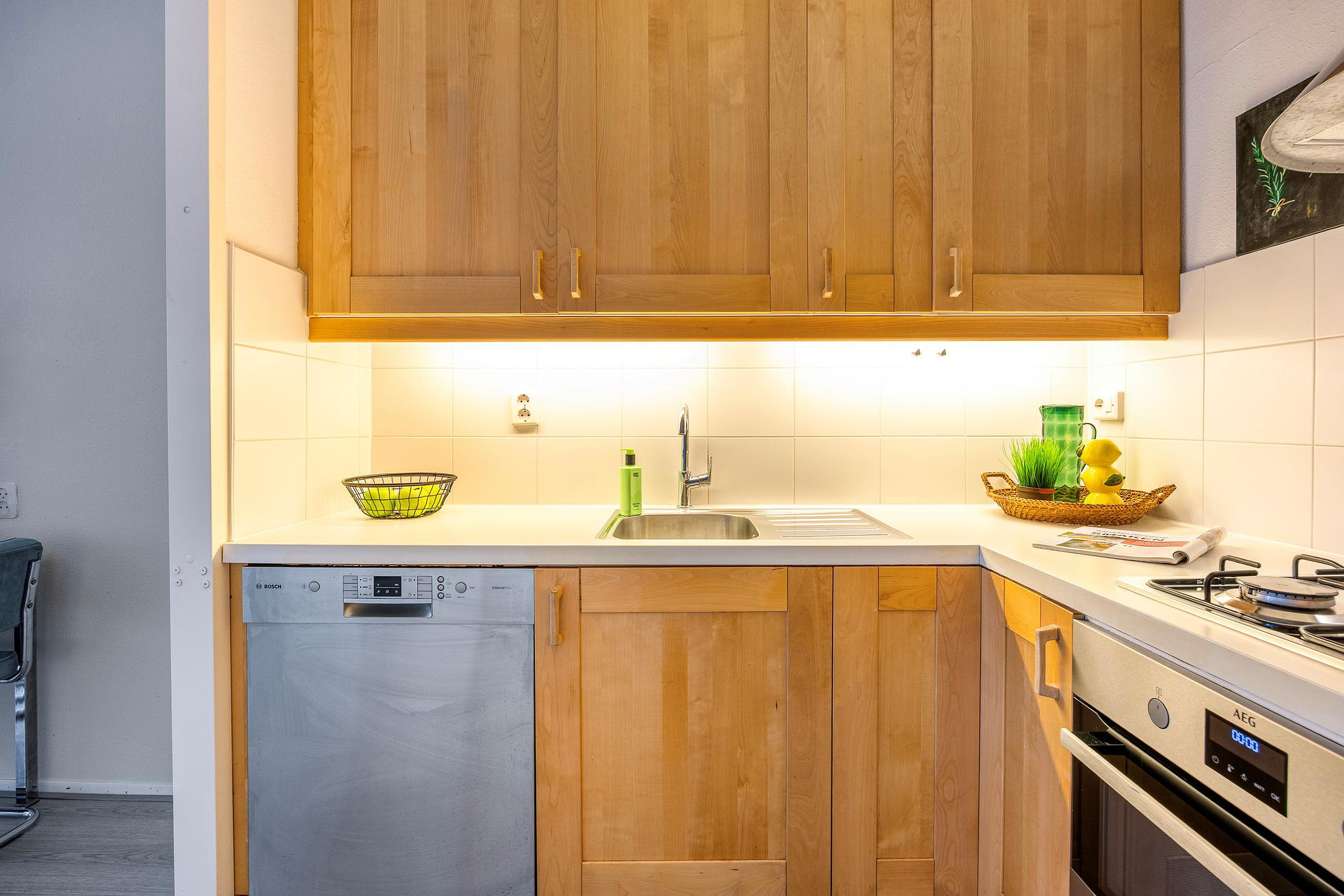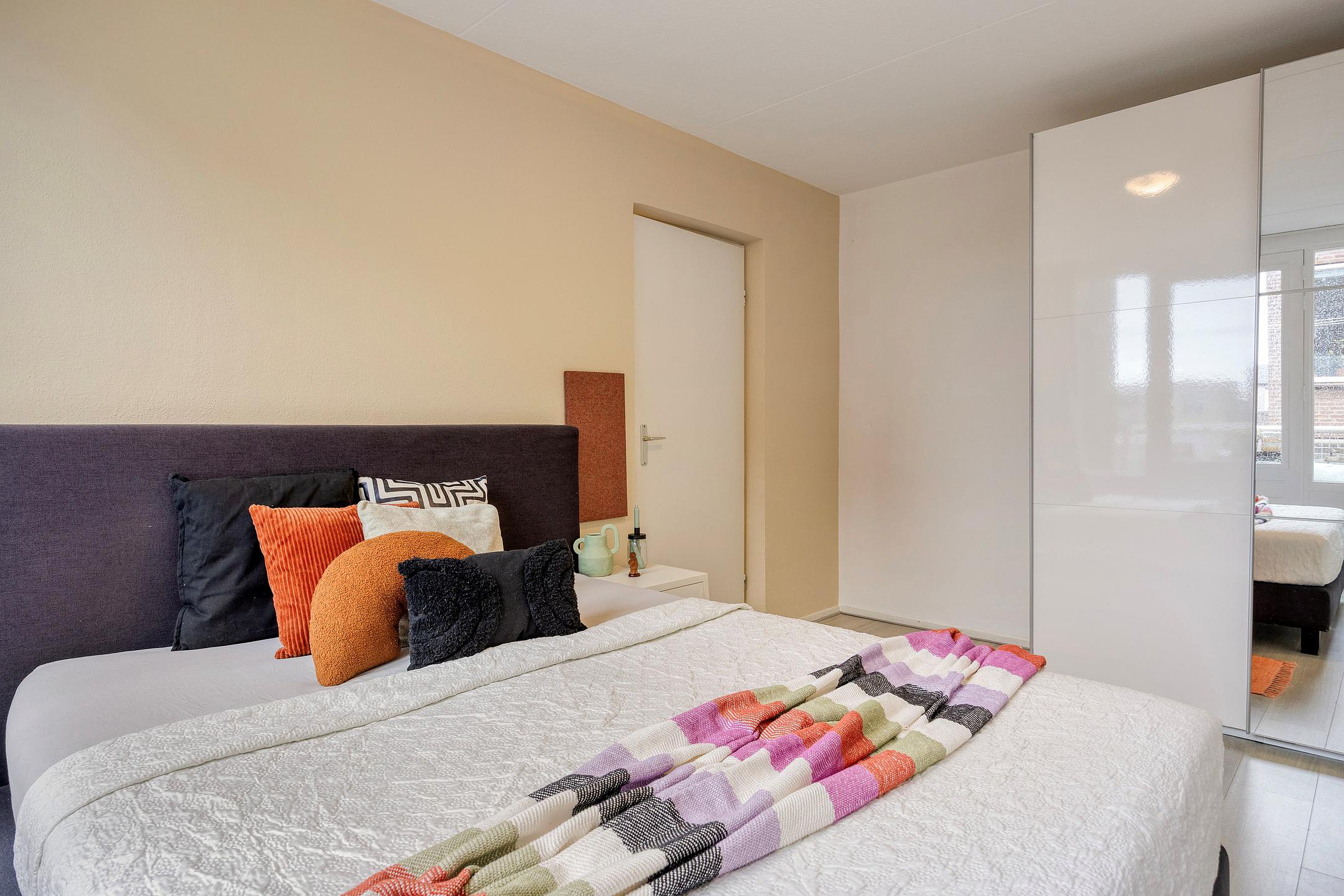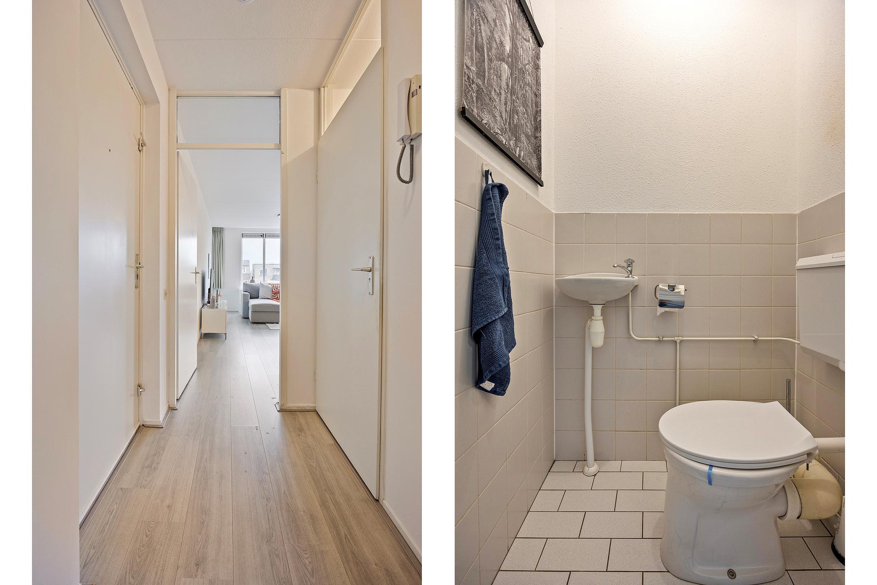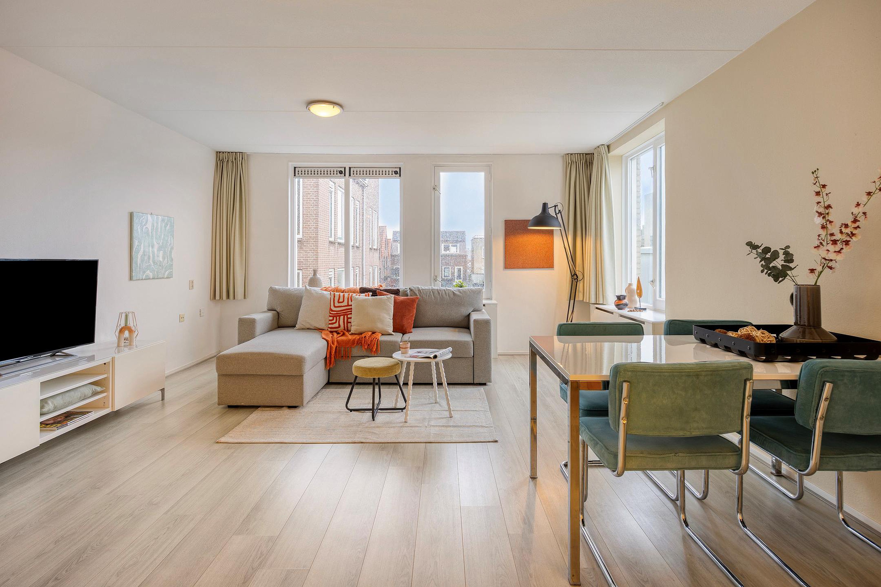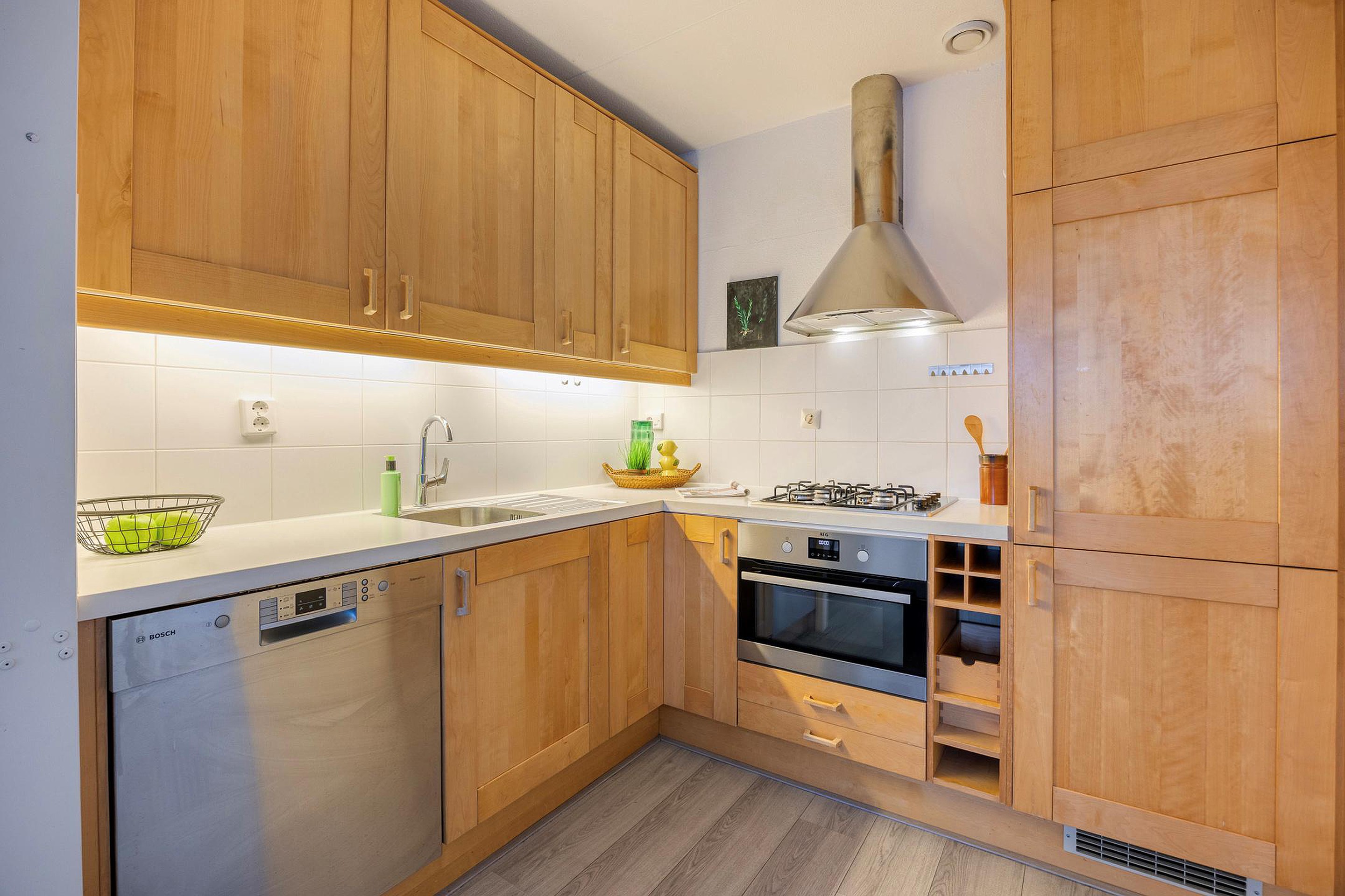 Entree woning. Hal met intercominstallatie, meterkast, toiletruimte en een vaste kast met cv-opstelling (2021). De badkamer beschikt over een wastafelmeubel, douchecabine, designradiator en een wasmachineaansluiting. Door de raampartijen geniet u van een opvallend lichte woonkamer. De gezellige open keuken beschikt o.a. over een 4-pitskookplaat, rvs afzuigkap, koel/vriescombinatie, combi oven en een vaatwasser. Aan de voorzijde van de woning bevindt zich een slaapkamer. Aan de achterzijde van deze leuke woning vindt u nog een slaapkamer met toegang naar het zonnige balkon op het westen (middag-/avondzon) met uitzicht over de daken van de Leidse binnenstad. De hal, woonkamer, keukenruimte en de slaapkamers zijn afgewerkt met een laminaat vloer.