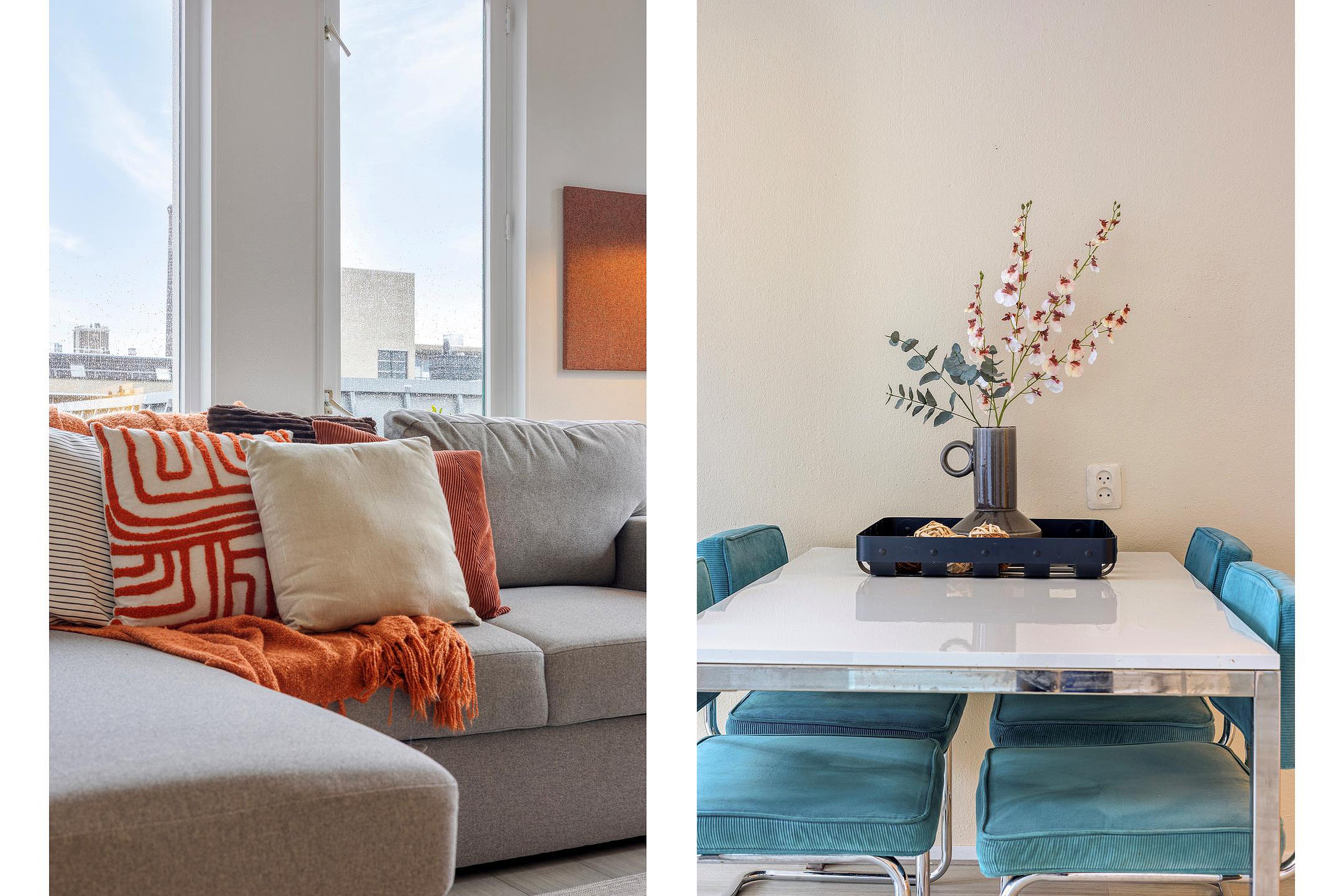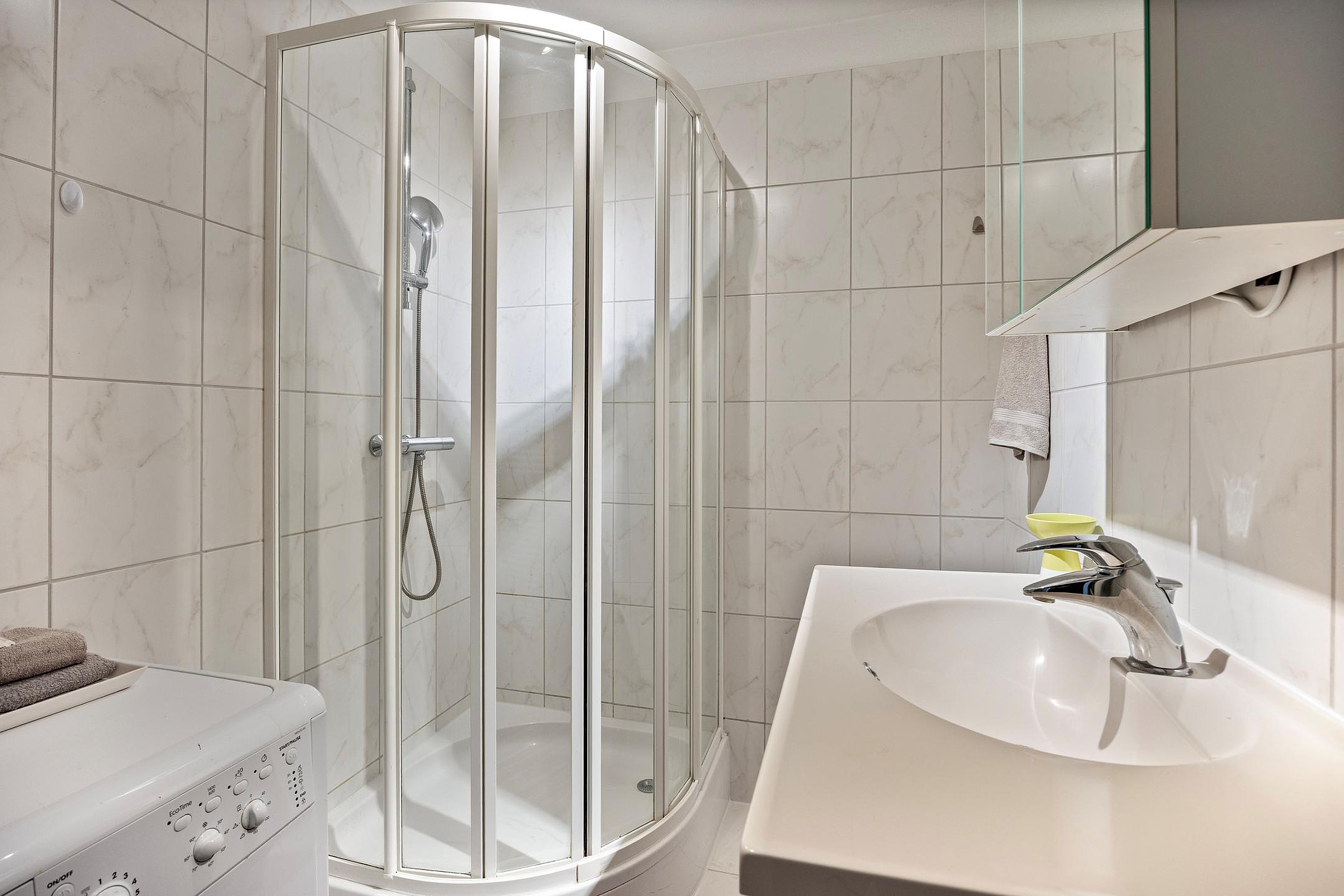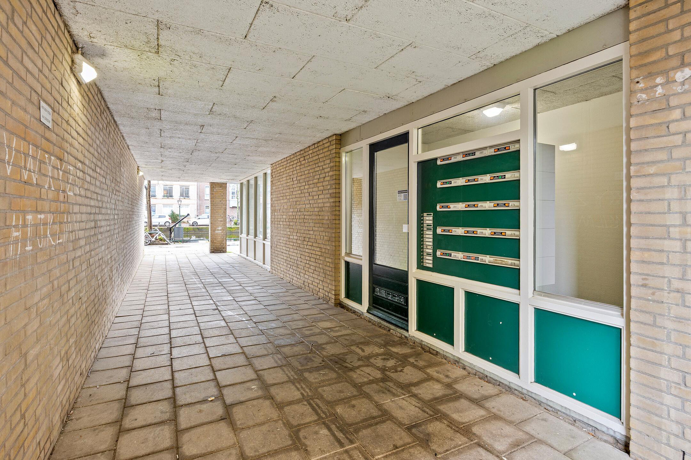Het complex waarin het appartement zich bevindt is een portiekflat. Niet alleen plezierig bij slechte weersomstandigheden maar ook veilig.