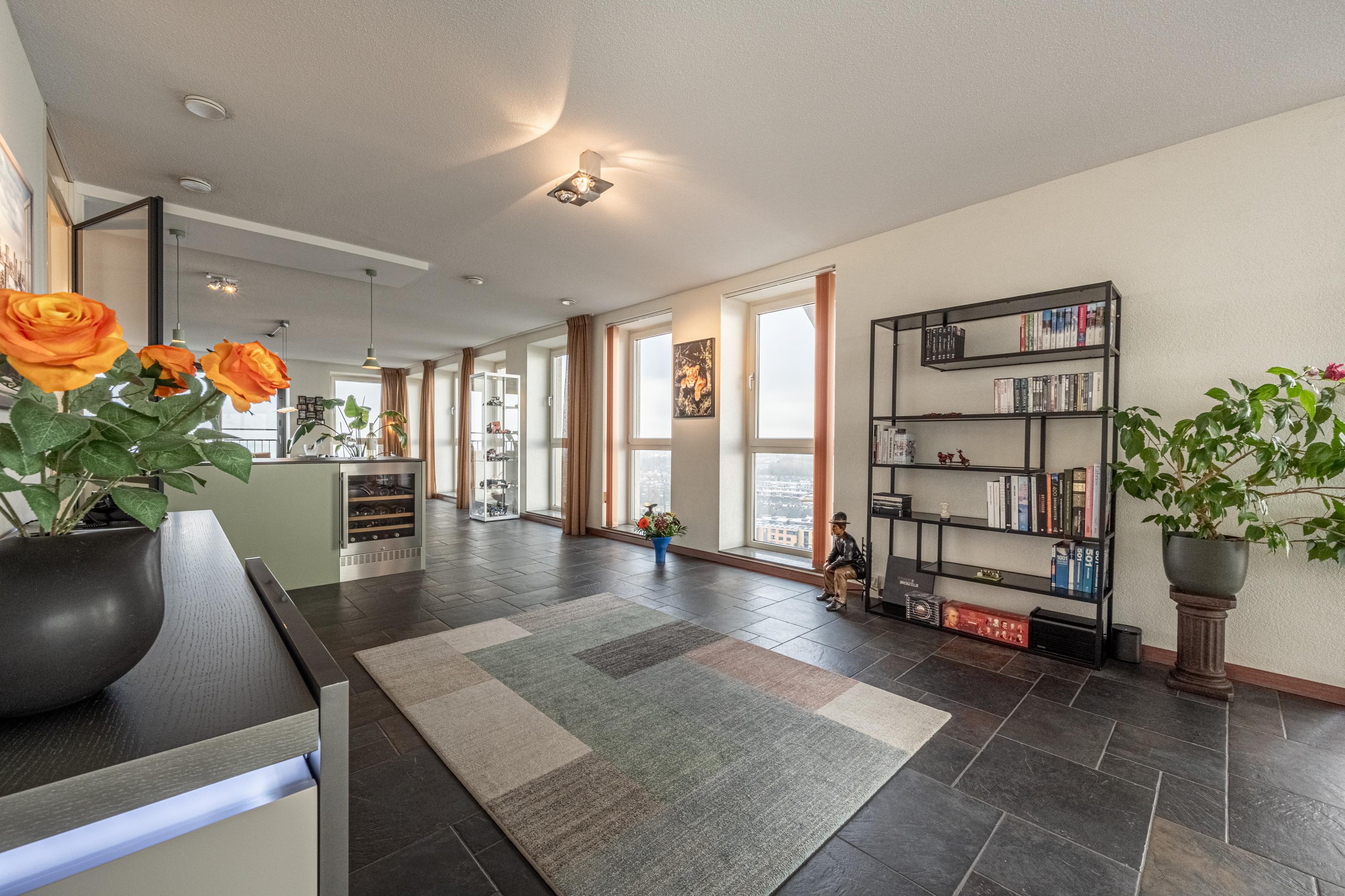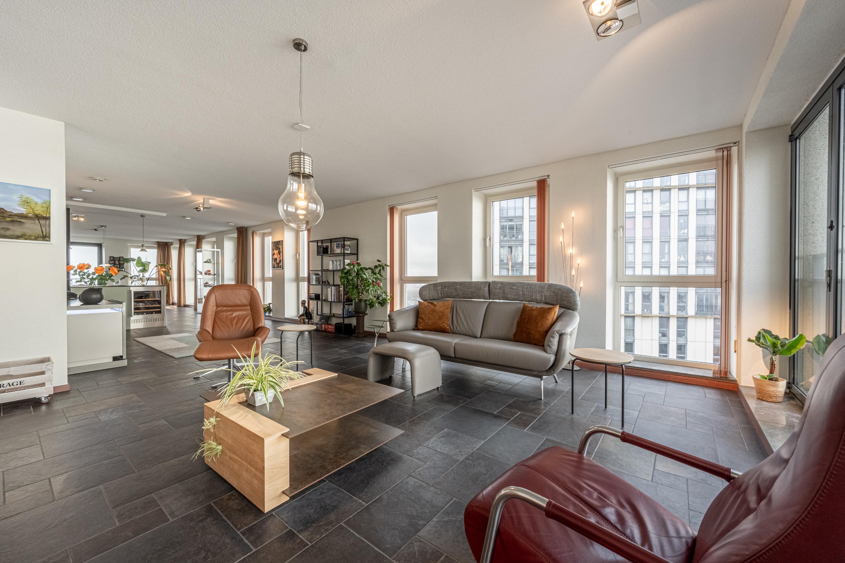 6. Royale woonkamer met grote raampartijen en adembenemend uitzicht;