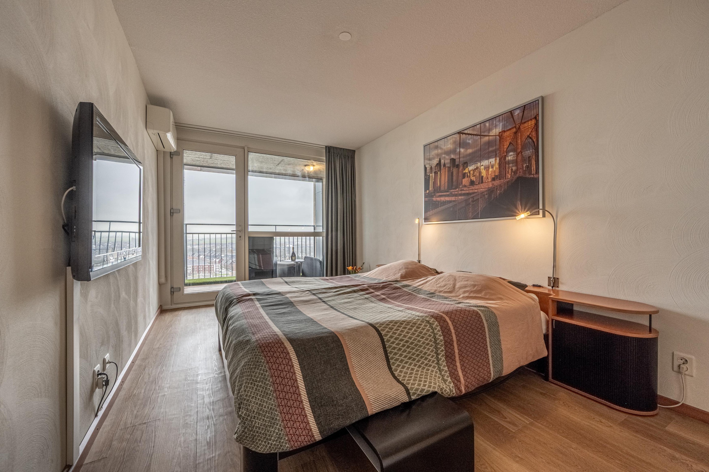 Het appartement beschikt over drie volwaardige slaapkamers. De ruime hoofdslaapkamer is voorzien van airco en heeft toegang tot het balkon. Eén kamer is ingericht als kastenkamer en de derde kamer is ideaal als slaap-, werk- of hobbyruimte.