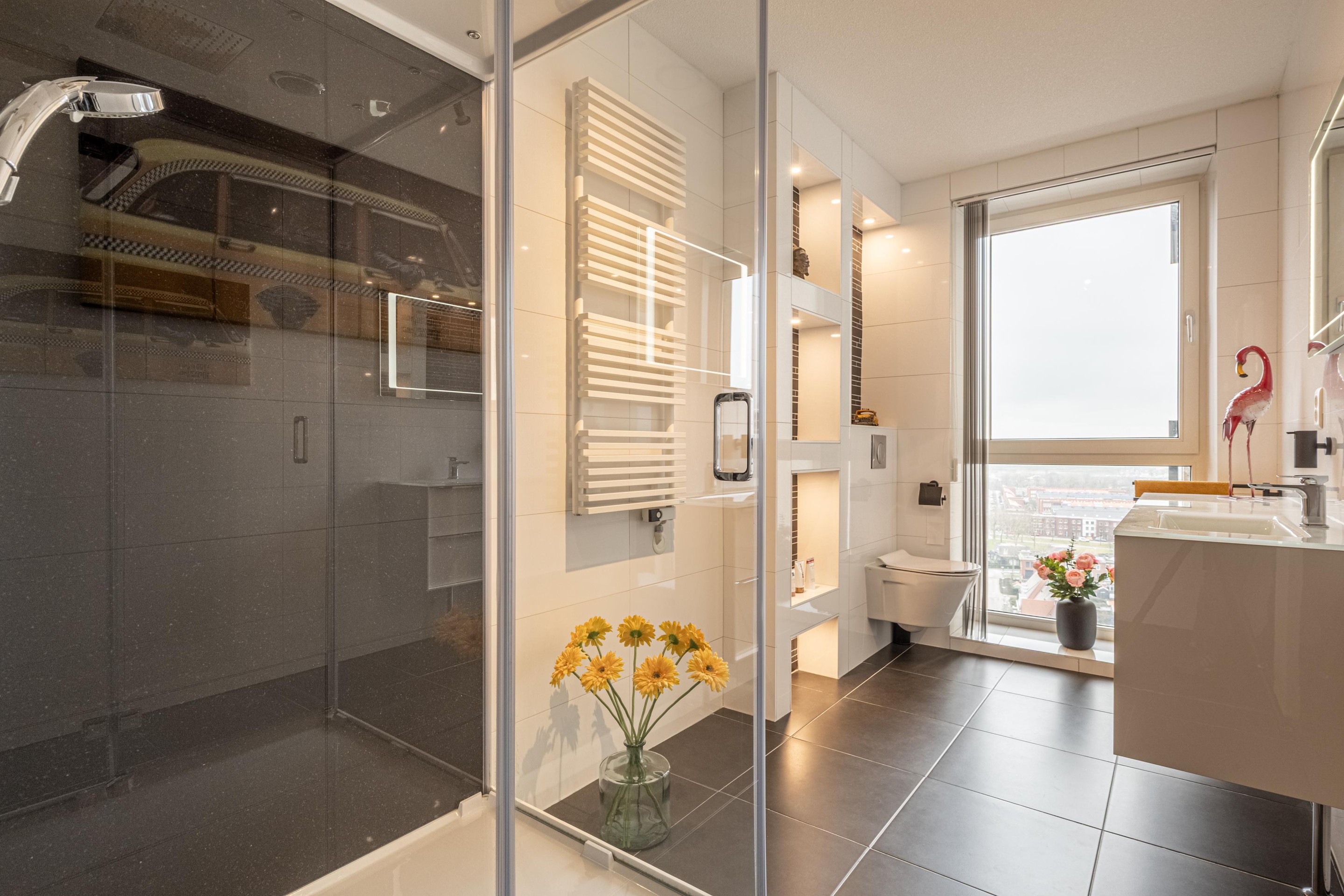 - Nette badkamer voorzien van een heerlijke stoomcabine en zelfs hier weer uitzicht!;