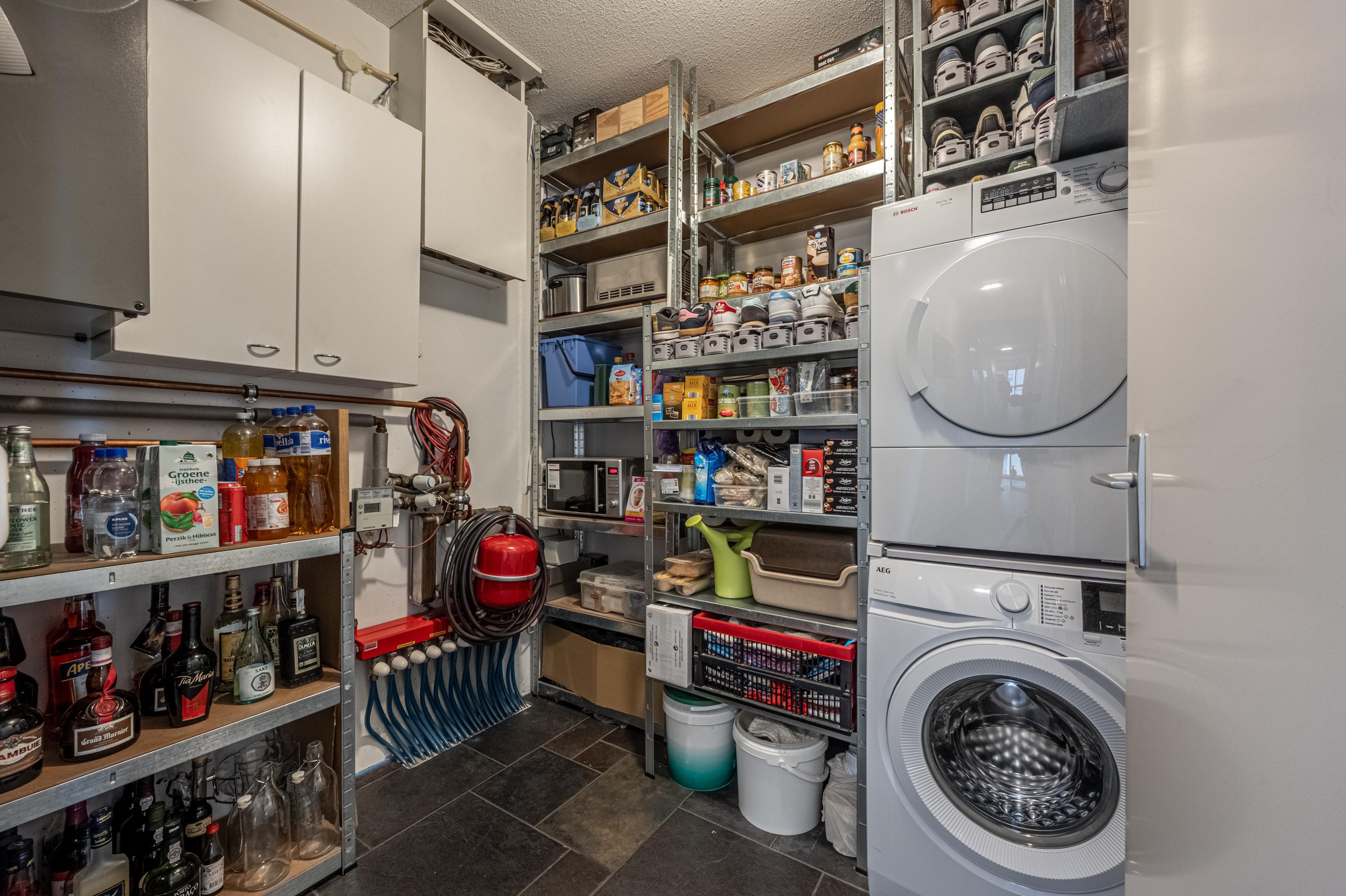 Ook aan bergruimte geen gebrek: er is een inpandige berging met wasmachineaansluiting, meterkast, voorraad-/schoenenkast én de warmte-terugwinunit.