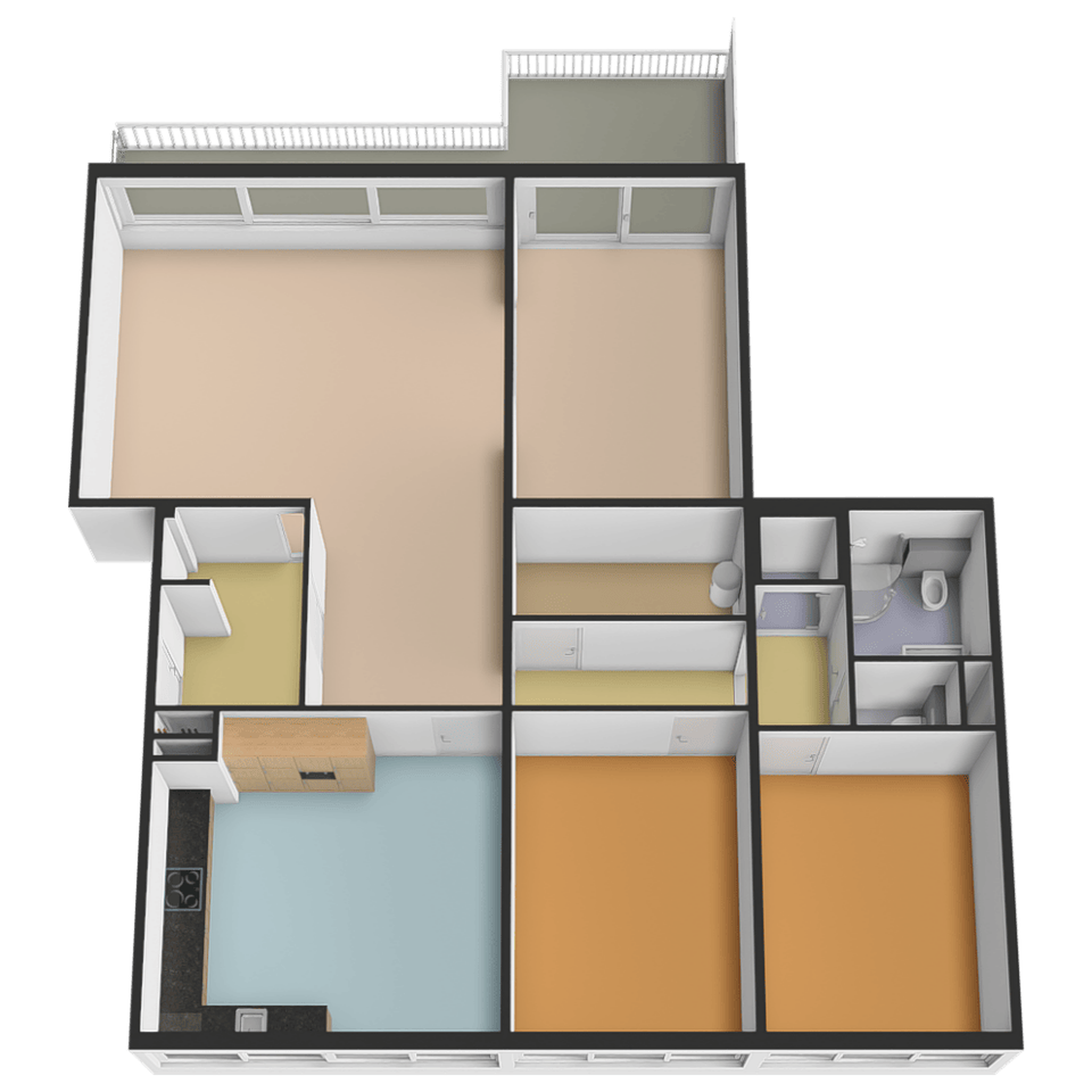 - Drie kamers, waarvan twee (optioneel drie) slaapkamers