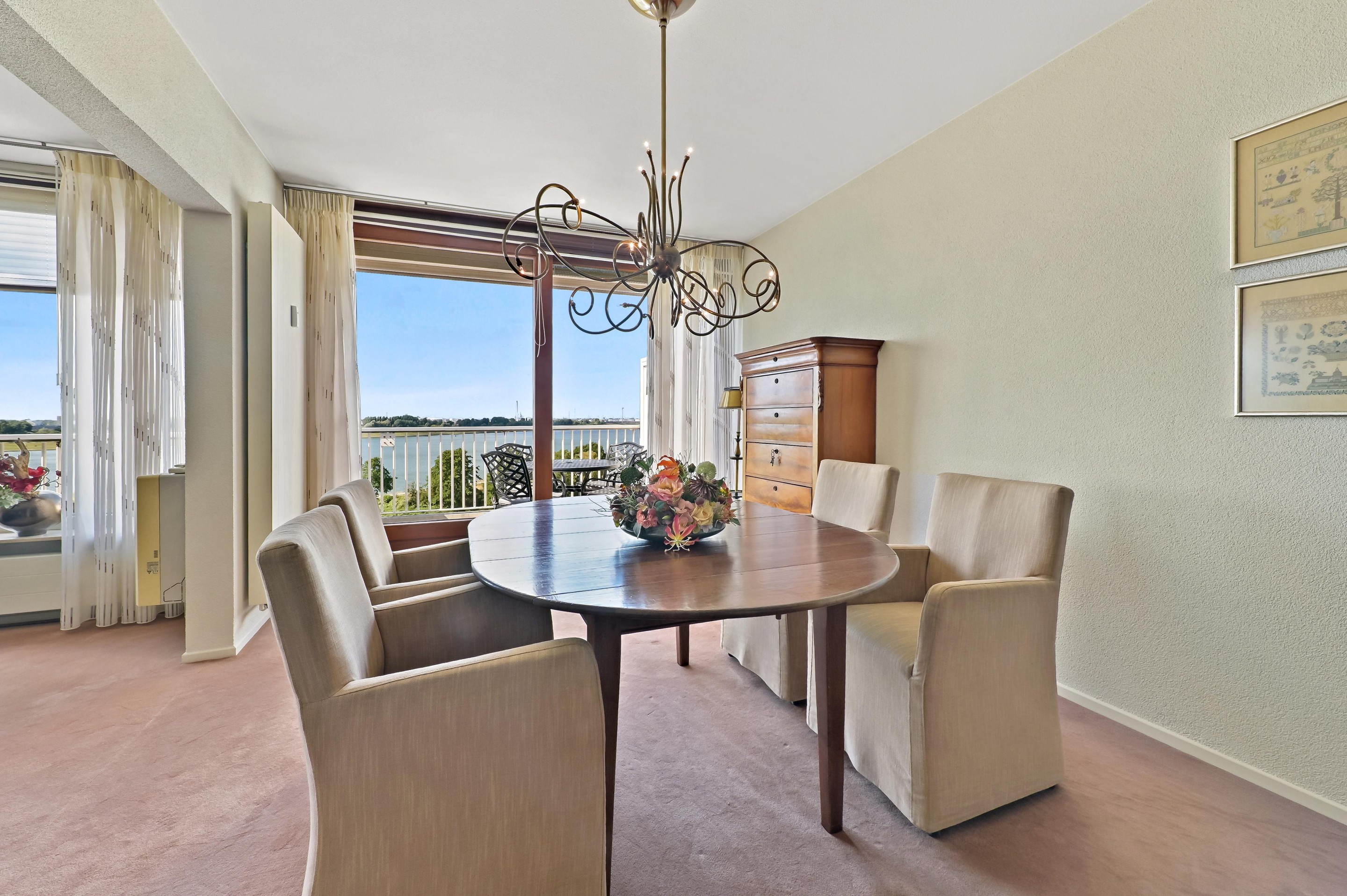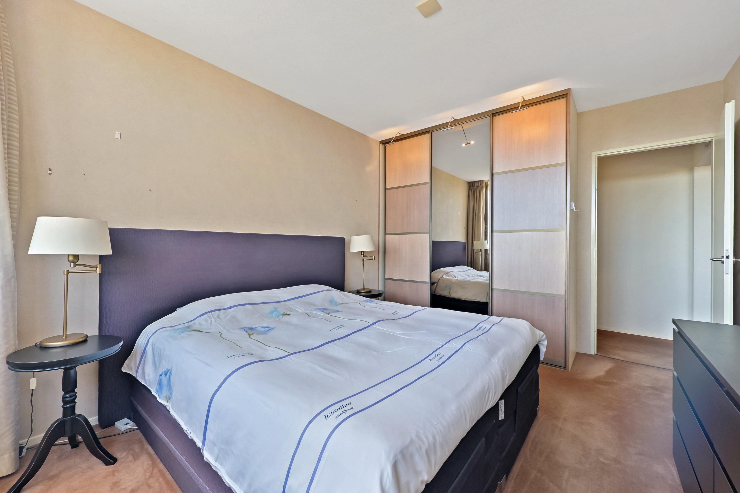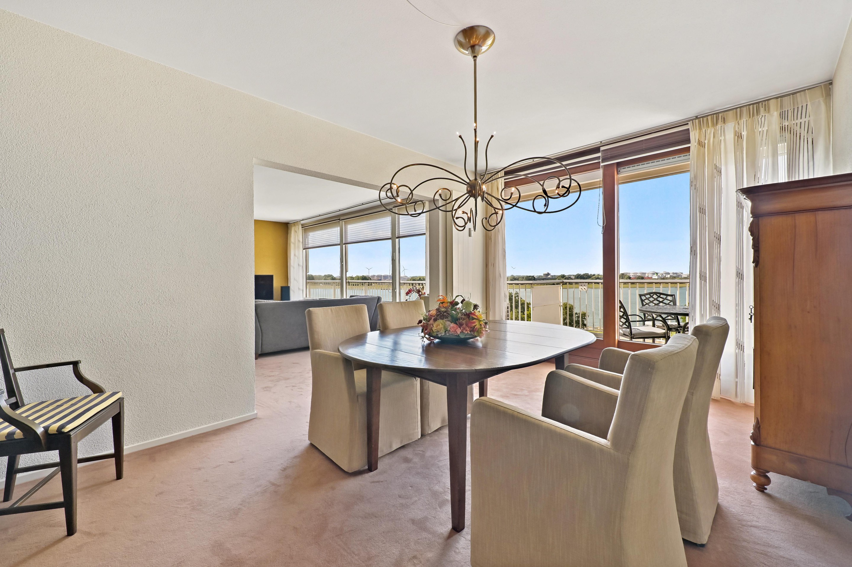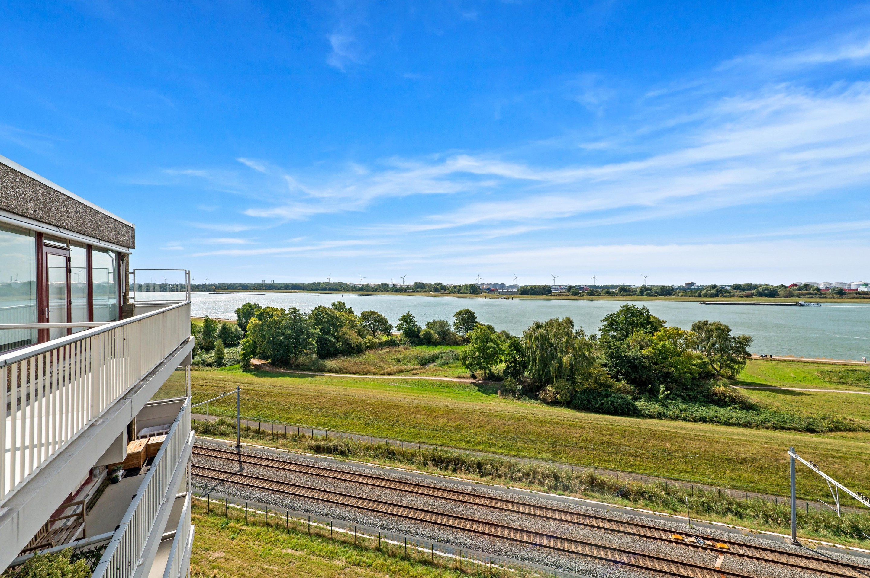 Op de achtste verdieping van het complex bereikt u de entree van het appartement. De ruime hal welke is voorzien van meterkast en garderobe is dankzij de inpandige raampartij aangenaam licht. Via een schuifpui komt u in de royale woonkamer met aangrenzende eetkamer aan de achterzijde. In de woonkamer zijn diverse grote raampartijen aanwezig die niet alleen veel daglicht binnen laten maar ook zorgen voor een fantastisch uitzicht over de Waterweg. De aangrenzende eetkamer is voorzien van een schuifpui naar het zonnige balkon. In de woonkamer zijn zowel radiatoren als een airconditioning aanwezig. Via de hal bereikt u aan de voorzijde van de woning de ruime eetkeuken. Dankzij de ligging op de achtste etage is ook het uitzicht aan deze zijde geweldig. De nette keuken in L-opstelling is voorzien van hoogwaardige Miele apparatuur en aansluitingen voor de wasmachine en wasdroger. Naast de keuken zijn twee ruime slaapkamers aan de voorzijde te vinden. De hoofdslaapkamer is voorzien van een vaste kastenwand. De moderne toiletruimte is volledig betegeld en beschikt over een wandcloset en fonteintje. Naast de toiletruimte vindt u de badkamer welke in dezelfde stijl als het toilet is betegeld. In de badkamer is een douchecabine, wastafelmeubel, elektrische verwarming en bidet aanwezig. Heeft u behoefte aan ontspanning? Op de gang bevindt zich een infraroodcabine; perfect om helemaal tot rust te komen!