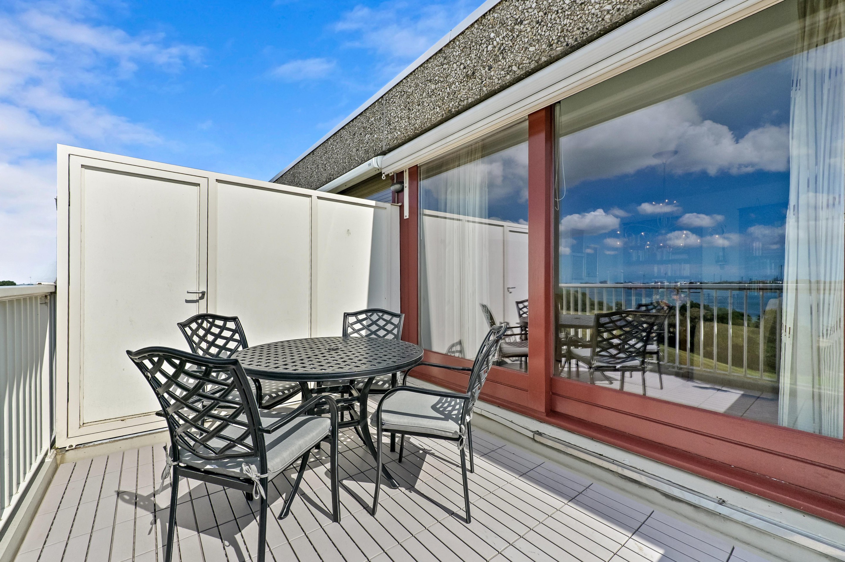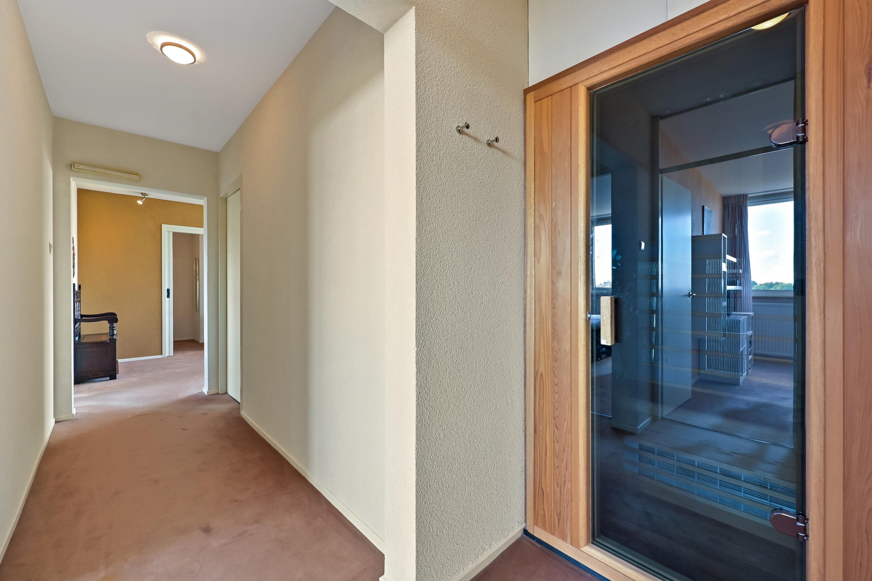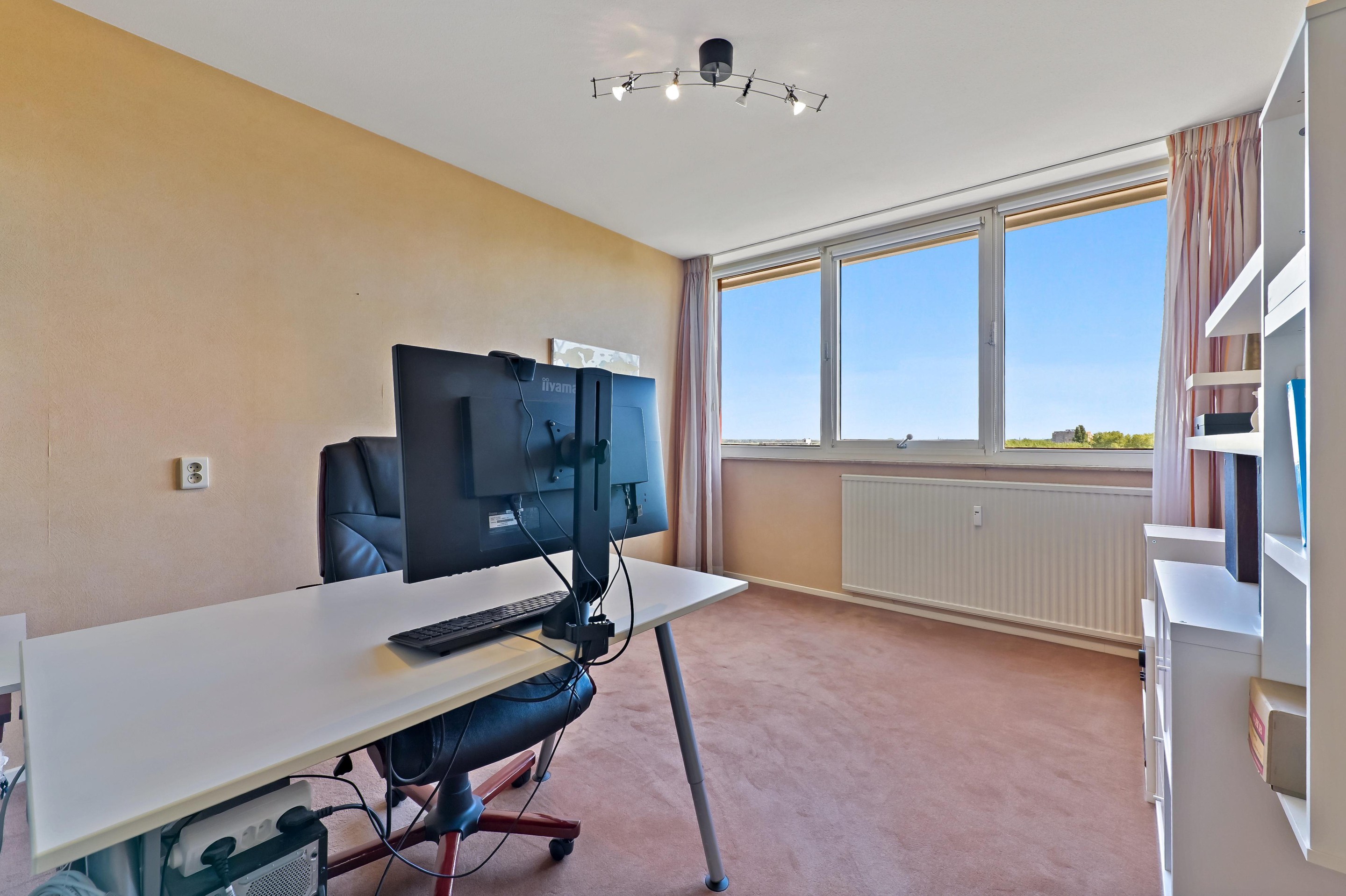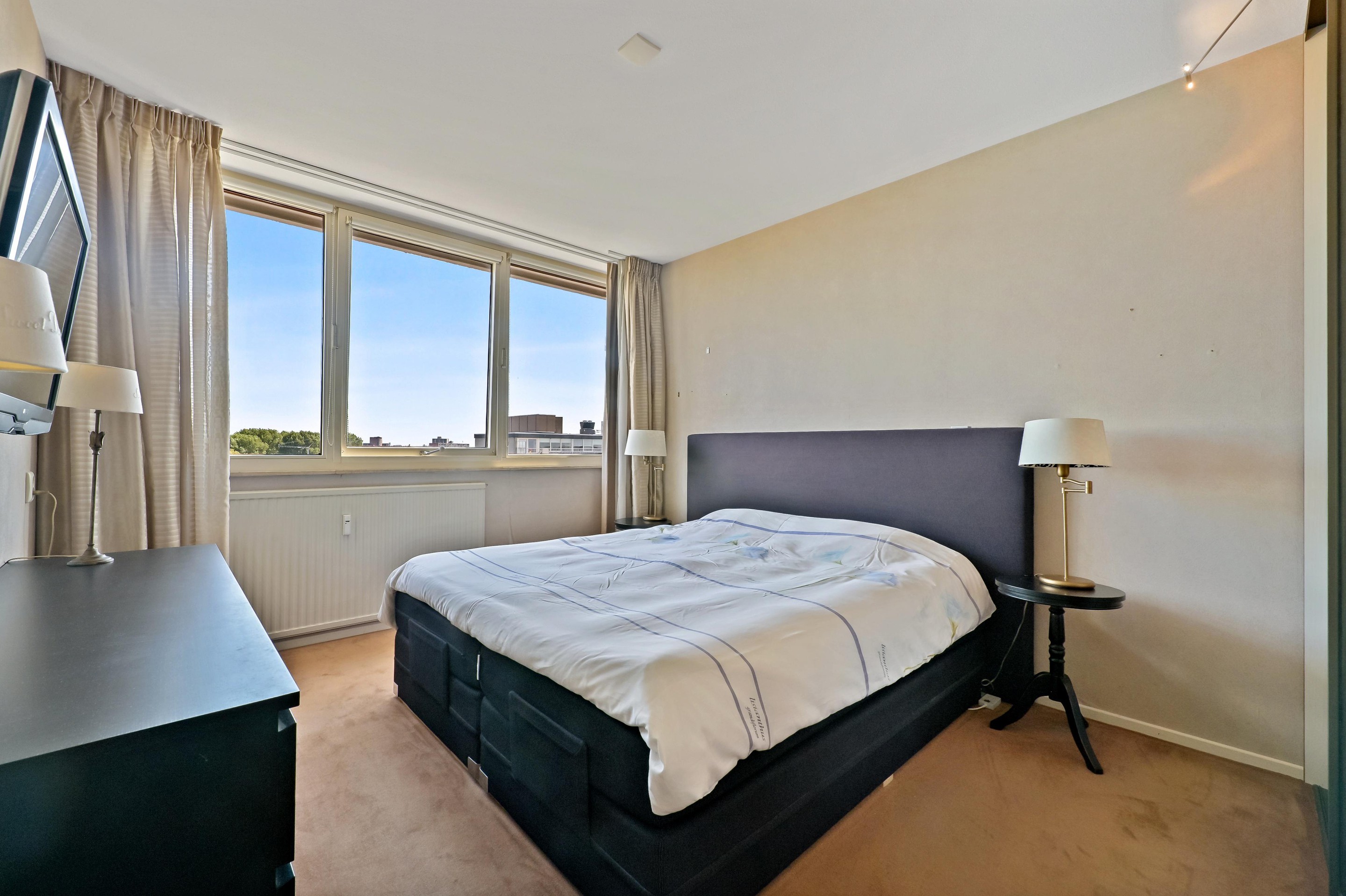 Op de achtste verdieping van het complex bereikt u de entree van het appartement. De ruime hal welke is voorzien van meterkast en garderobe is dankzij de inpandige raampartij aangenaam licht. Via een schuifpui komt u in de royale woonkamer met aangrenzende eetkamer aan de achterzijde. In de woonkamer zijn diverse grote raampartijen aanwezig die niet alleen veel daglicht binnen laten maar ook zorgen voor een fantastisch uitzicht over de Waterweg. De aangrenzende eetkamer is voorzien van een schuifpui naar het zonnige balkon. In de woonkamer zijn zowel radiatoren als een airconditioning aanwezig. Via de hal bereikt u aan de voorzijde van de woning de ruime eetkeuken. Dankzij de ligging op de achtste etage is ook het uitzicht aan deze zijde geweldig. De nette keuken in L-opstelling is voorzien van hoogwaardige Miele apparatuur en aansluitingen voor de wasmachine en wasdroger. Naast de keuken zijn twee ruime slaapkamers aan de voorzijde te vinden. De hoofdslaapkamer is voorzien van een vaste kastenwand. De moderne toiletruimte is volledig betegeld en beschikt over een wandcloset en fonteintje. Naast de toiletruimte vindt u de badkamer welke in dezelfde stijl als het toilet is betegeld. In de badkamer is een douchecabine, wastafelmeubel, elektrische verwarming en bidet aanwezig. Heeft u behoefte aan ontspanning? Op de gang bevindt zich een infraroodcabine; perfect om helemaal tot rust te komen!