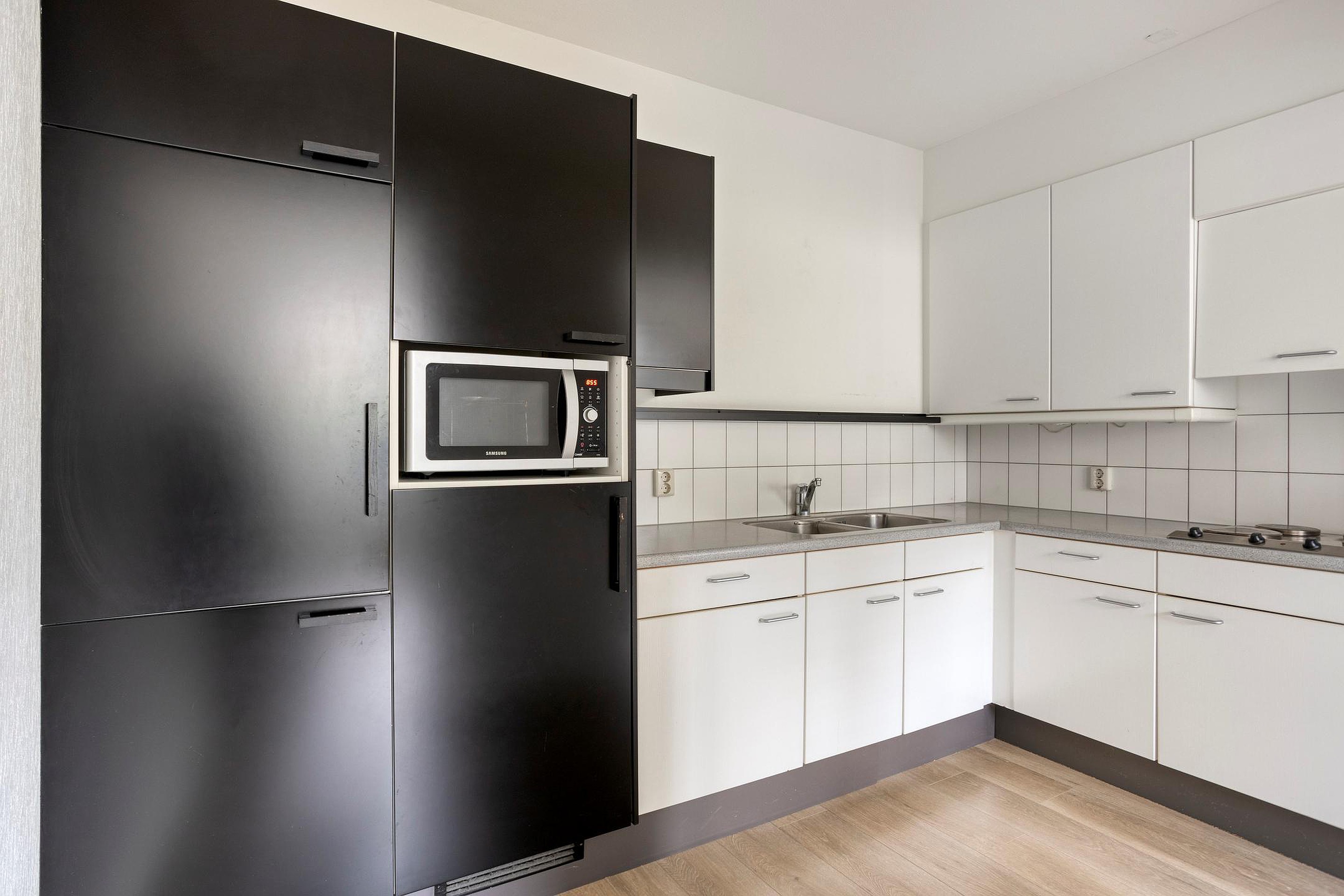 De lichte en sfeervolle woonkamer (16m2) vormt het hart van de woning. De halfopen keuken (7m2) is opgesteld in een praktische hoekopstelling en voorzien van diverse inbouwapparatuur, te weten: een 4-pits elektrische kookplaat met afzuigkap, combimagnetron, spoelbak en twee koelkasten met vriesvak.