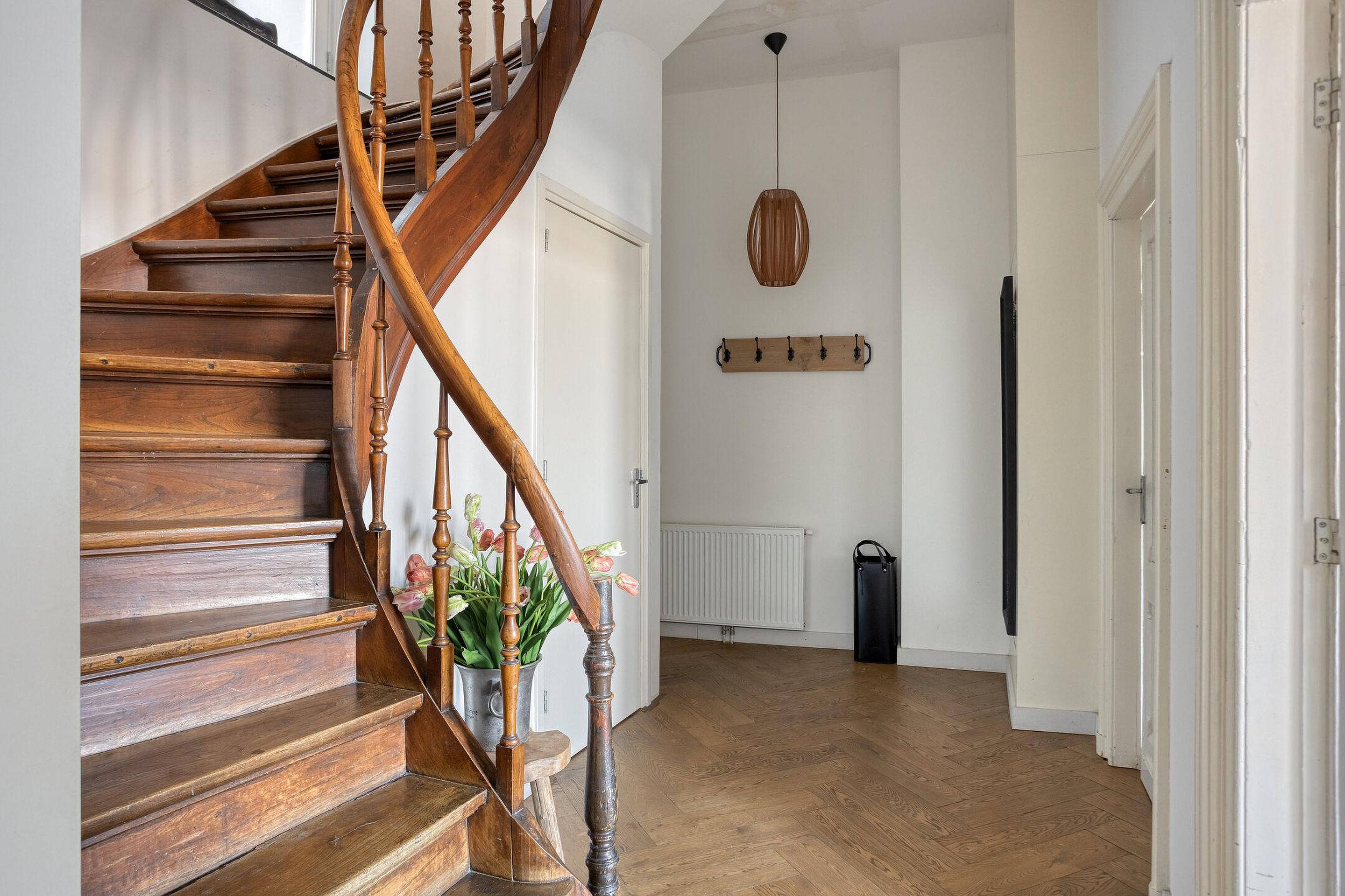 - De woonkamer is voorzien van een originele houten vloer in visgraat. De slaapkamers beschikken over vloerbedekking;