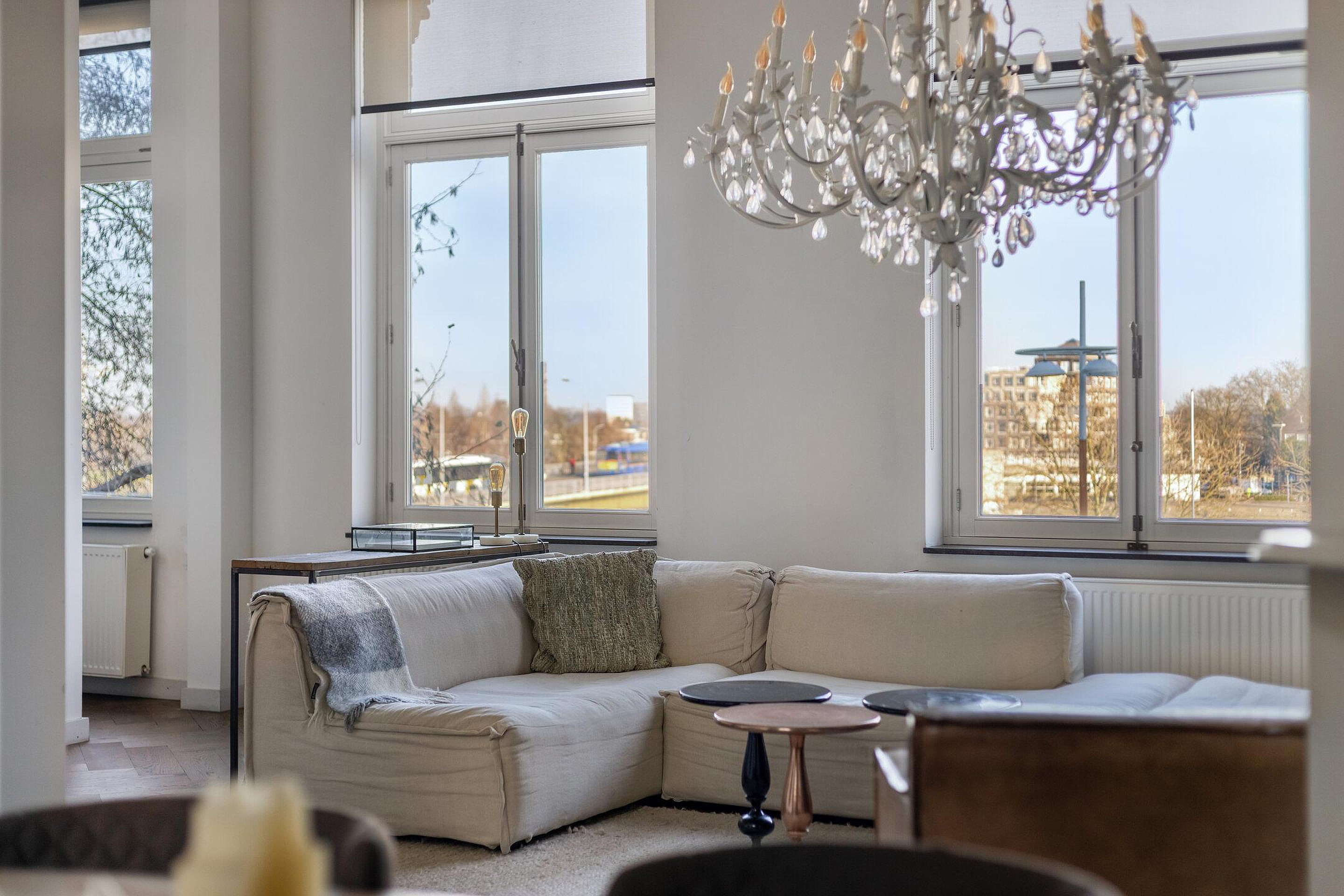 Dit stijlvolle appartement, via lift bereikbaar, een karaktervolle woonverdieping met visgraatvloer, marmeren schouw en openslaande deuren naar het balkon met een ruime derde verdieping voorzien van twee slaapkamers, een royale badkamer een aparte wasruimte en volop licht, ruimte en comfort. Gelegen op een van de mooiste locaties aan de Maas met een panoramisch vrij uitzicht over het water. Hier geniet u dagelijks van het prachtige uitzicht, terwijl het bruisende stadsleven, diverse voorzieningen en gezellige horeca op loopafstand liggen.