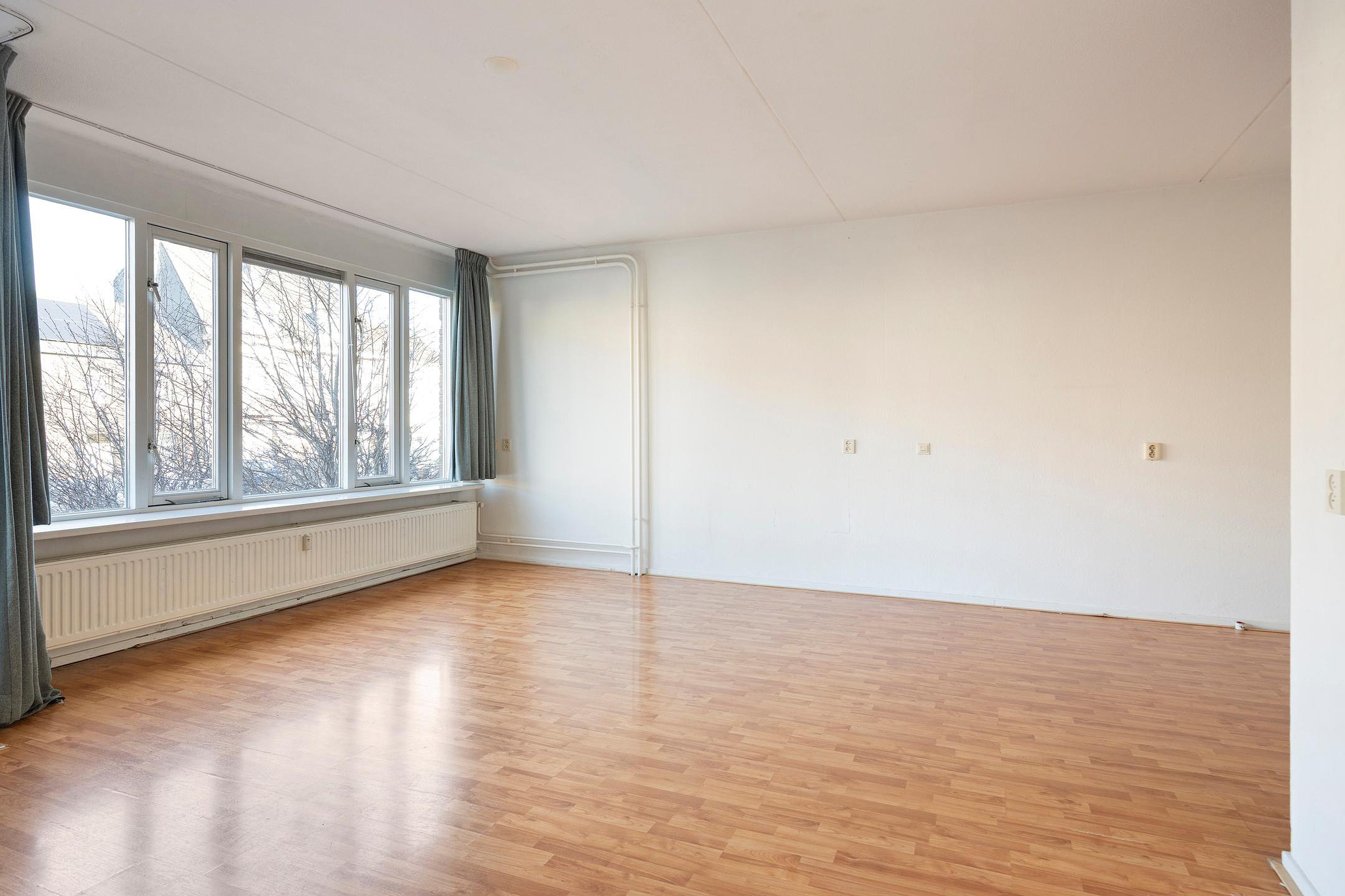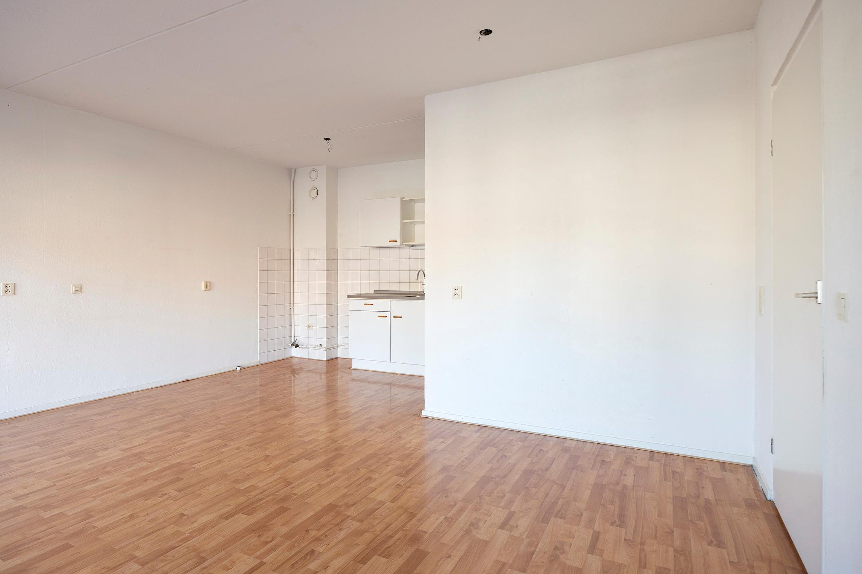 De woonkamer is royaal opgezet en valt direct op door de grote raampartijen die zorgen voor een aangename hoeveelheid daglicht. De ruimte biedt volop mogelijkheden voor het creëren van een sfeervolle zit- en eethoek. Vanuit de woonkamer is er directe toegang tot het balkon.