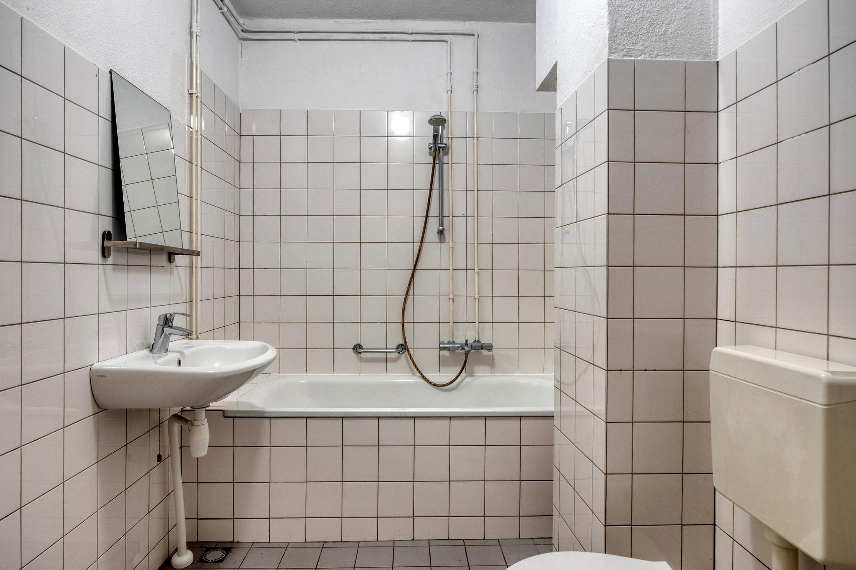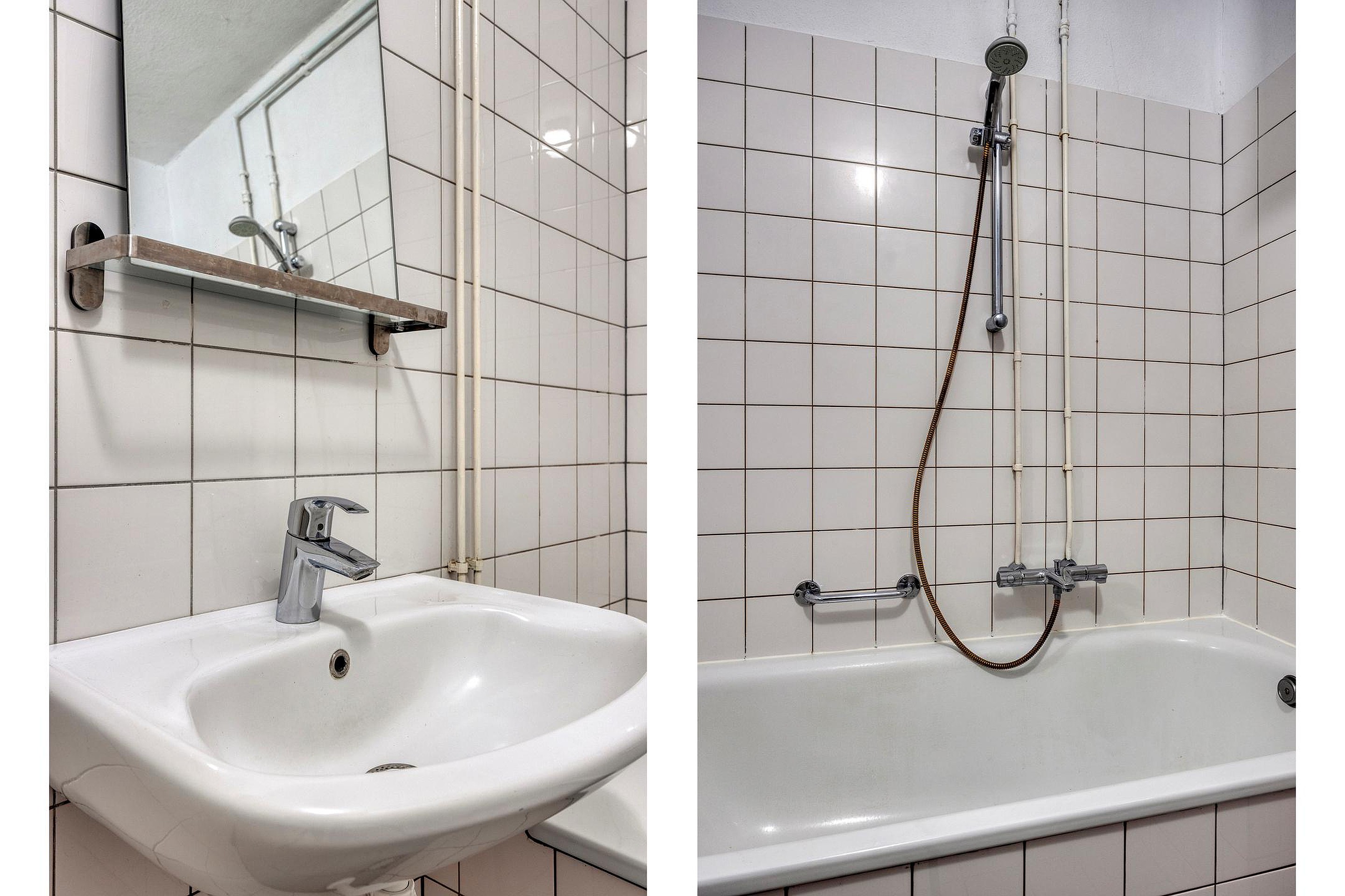 De slaapkamer is goed van formaat en biedt voldoende ruimte voor een tweepersoonsbed en kastruimte. De badkamer is functioneel ingericht en beschikt over een ligbad met douche, wastafel en toilet.
