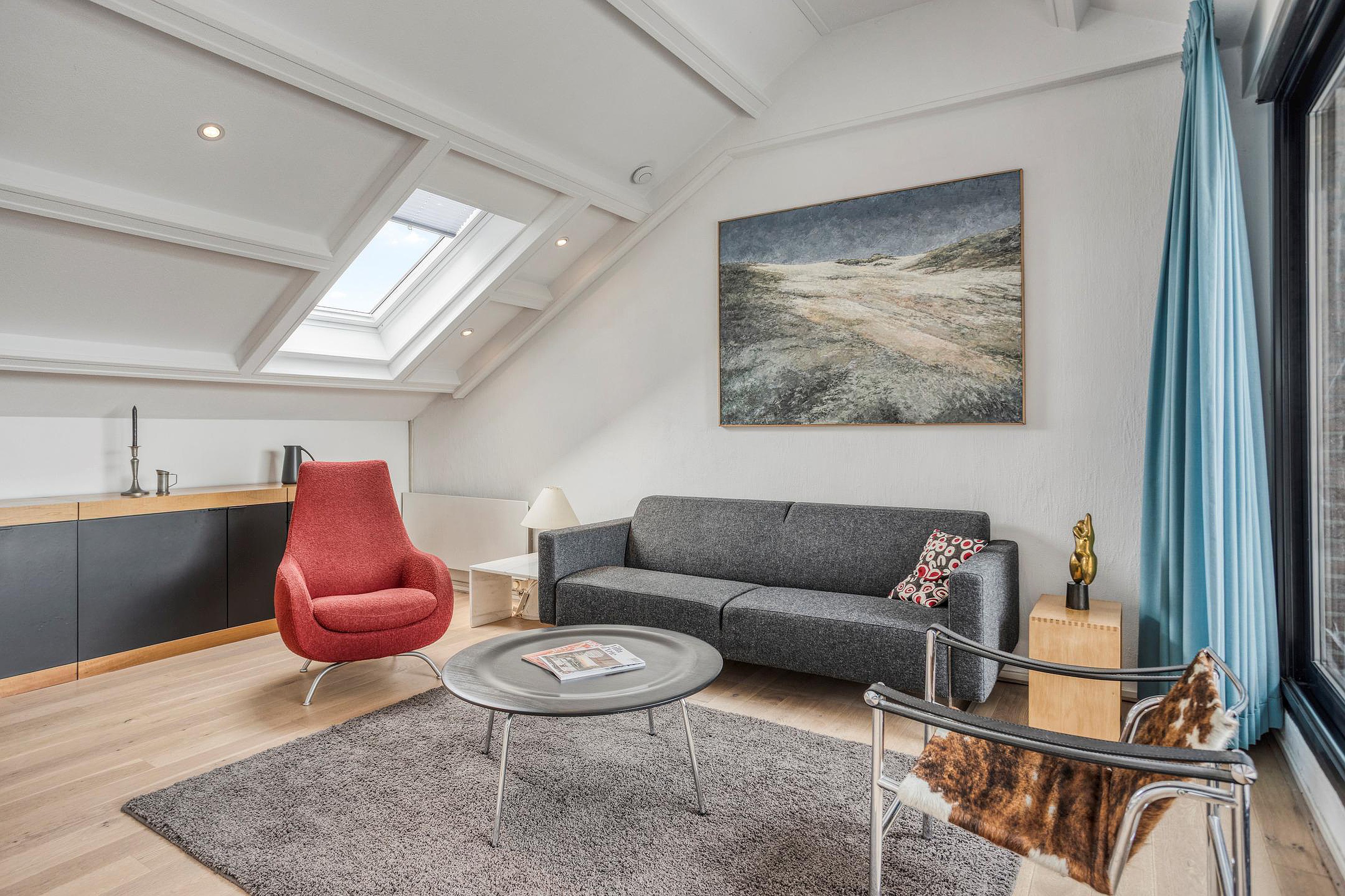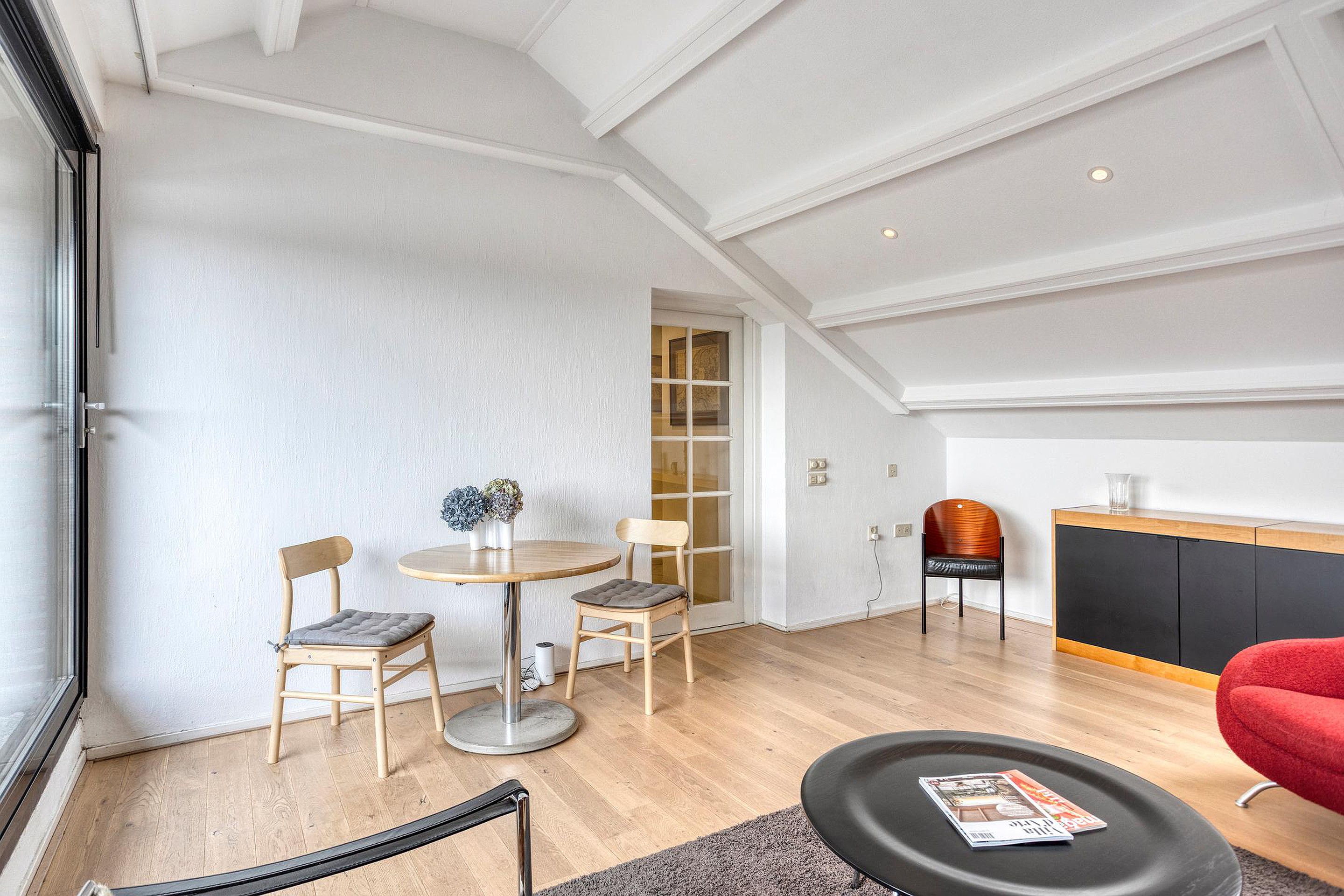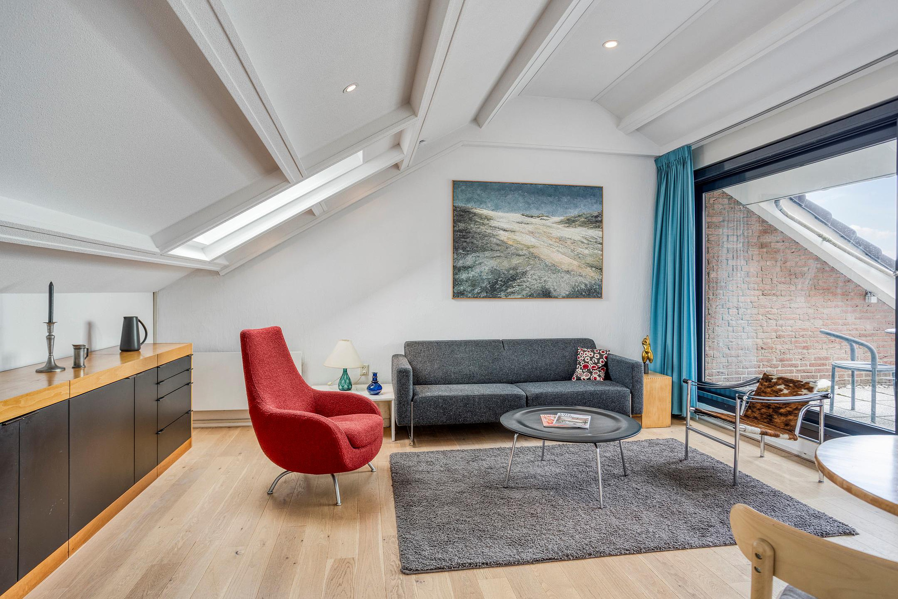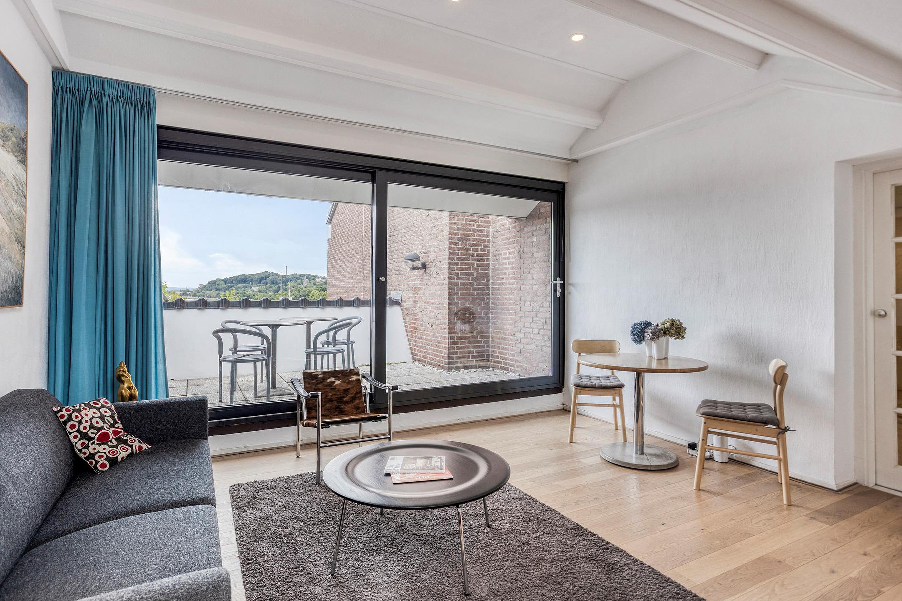 Via de overloop heeft u toegang tot alle vertrekken van dit goed ingedeelde appartement. De woonkamer (21m2) is de plek waar u kan genieten van een adembenemend uitzicht over rivier de Maas en de Sint Pietersberg. Dankzij de grote raampartijen en een dakraam is de ruimte bijzonder licht en aangenaam. De woonkamer is voorzien van een hoogwaardige parketvloer en biedt via een schuifpui directe toegang tot het royale, zonnige dakterras; een perfecte plek om in alle rust te genieten van al het moois wat deze omgeving te bieden heeft.