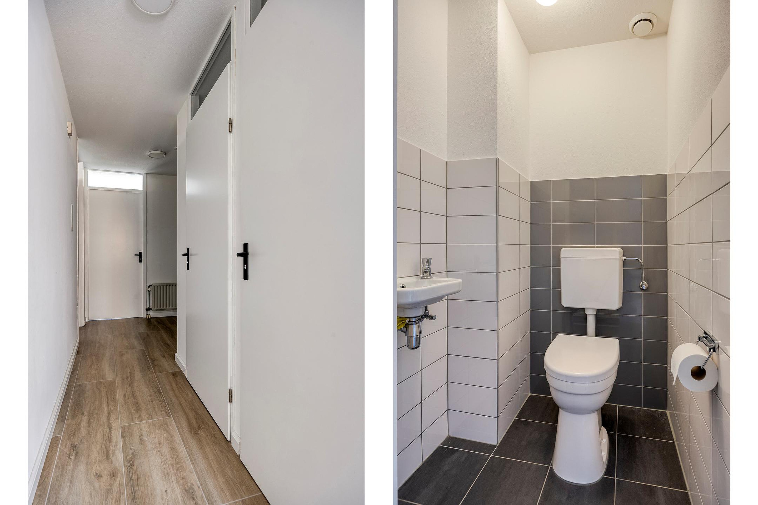 Het appartement heeft twee slaapkamers, één aan de voorzijde (12 m2) en één aan de achterzijde (10 m2). De badkamer (3 m2) is in 2017 gerenoveerd en beschikt over een douchecabine en een vaste wastafel met apart kastje. Het toilet, dat eveneens in 2017 is gemoderniseerd, is voorzien van een staand toilet en een kleine wastafel. Er is ook een praktische berging van ongeveer 3 m2 met mechanische ventilatie en aansluitingen voor de wasmachine.