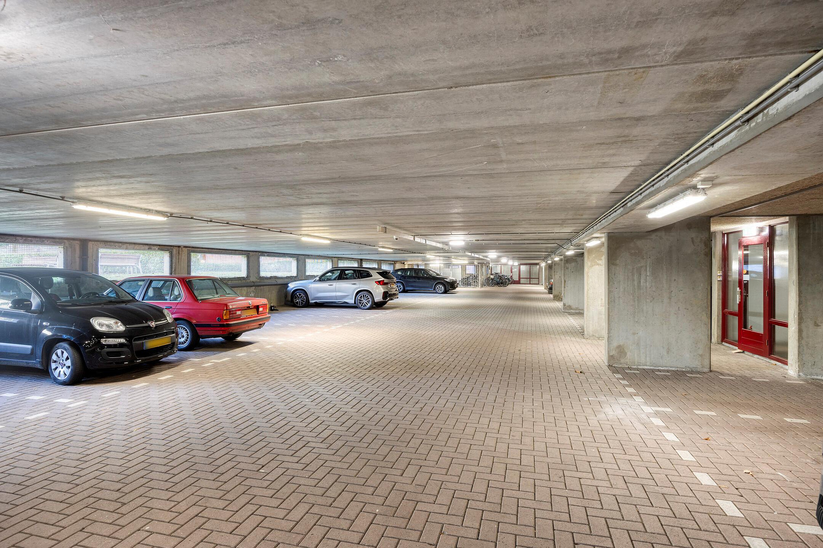 Privéberging (5 m2). Afgesloten parkeergarage met privé parkeerplaats (nummer 22) en gemeenschappelijke fietsenstalling.