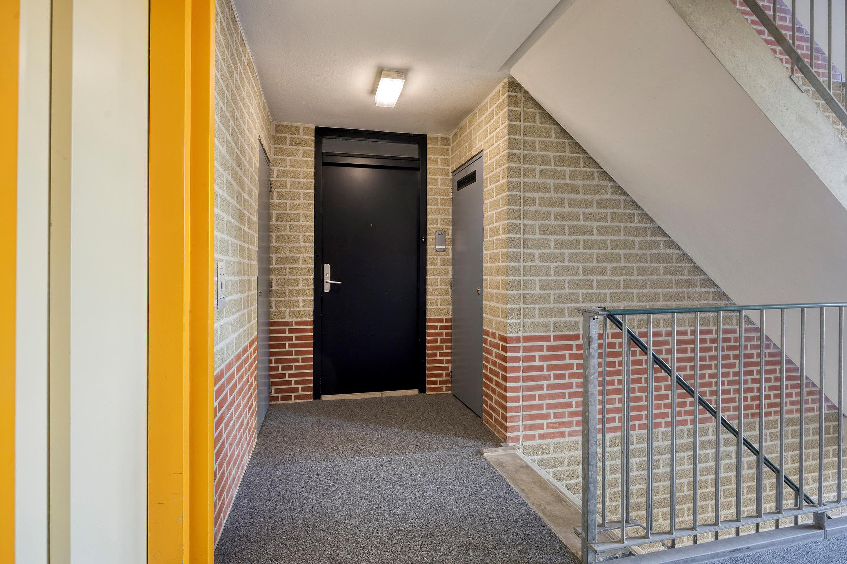 Gedeelde entree met intercom, videofoon, brievenbussen, lift en trap.
