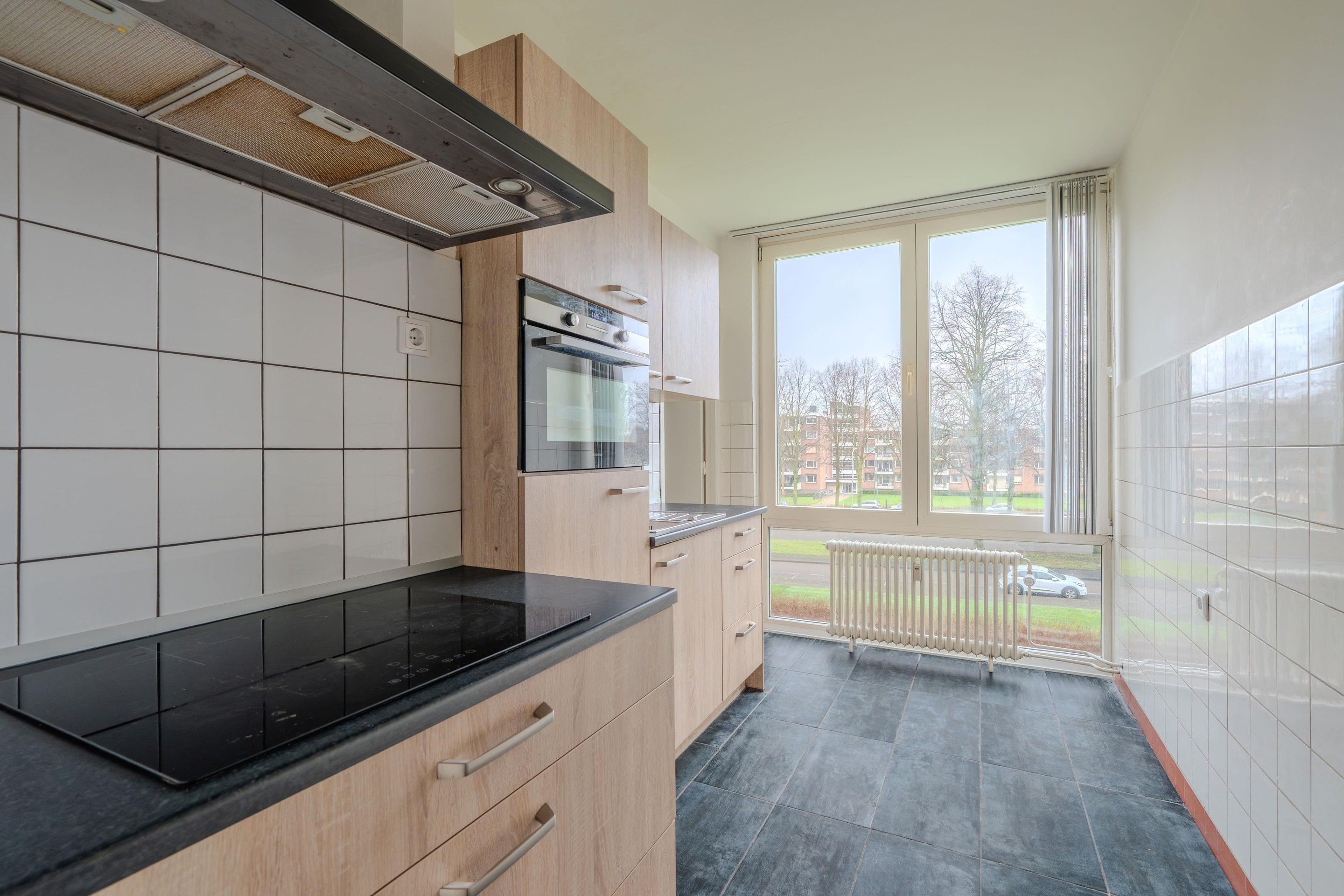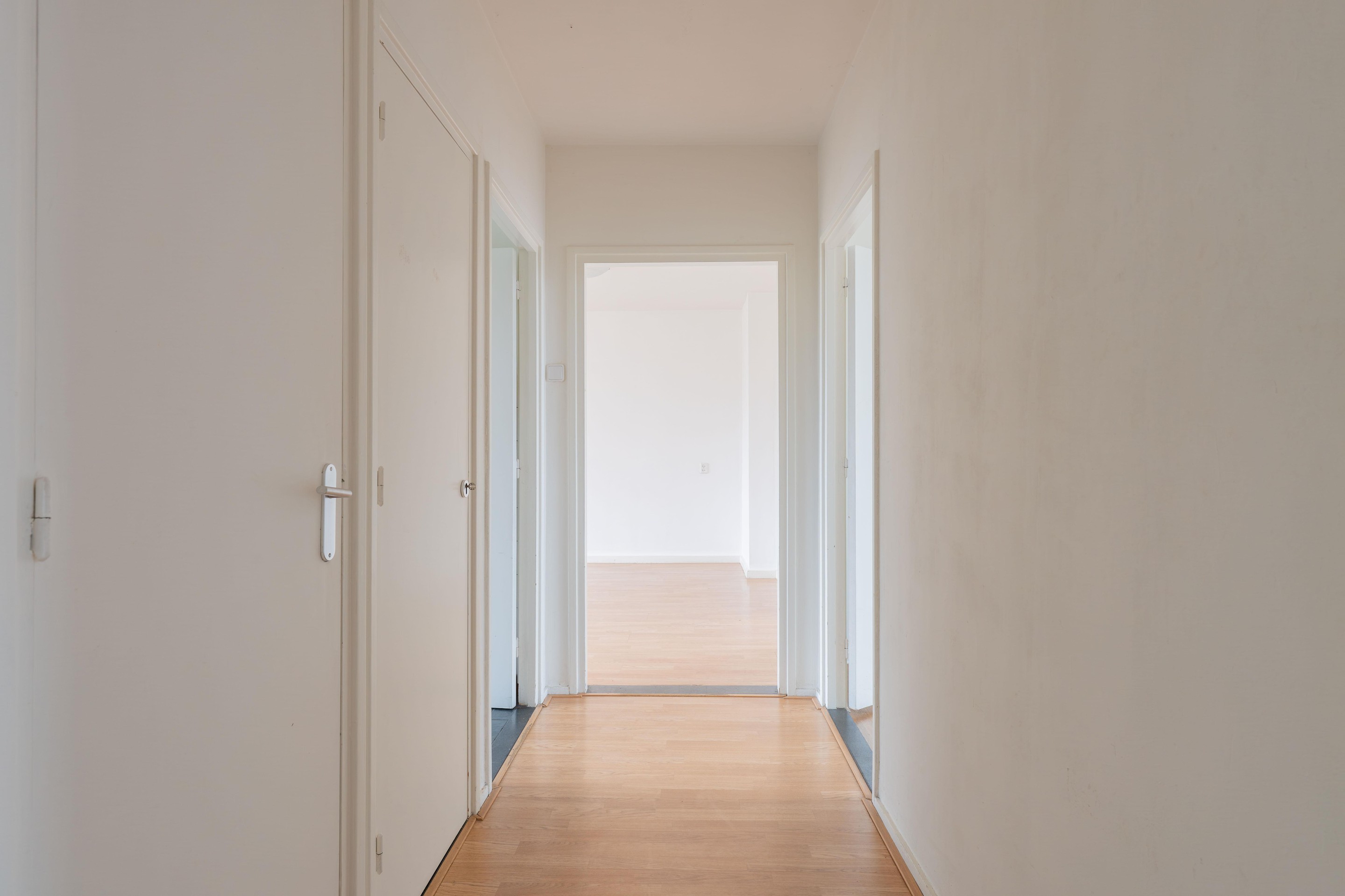 Aan de voorzijde kijk je uit over een aangrenzend plantsoen aan de Via Regia. Aan de achterzijde ligt het winkelcentrum Brusselse Poort, gescheiden door een straat, waardoor voorzieningen bijna letterlijk binnen handbereik zijn. Het balkon vormt een rustige plek om even naar buiten te stappen. In het souterrain is een ruime privéberging aanwezig voor fietsen en opslag. Doordat hier verwarmingsleidingen van bovenliggende appartementen lopen, is de temperatuur er doorgaans aangenaam. Daarnaast is de berging voorzien van verlichting.