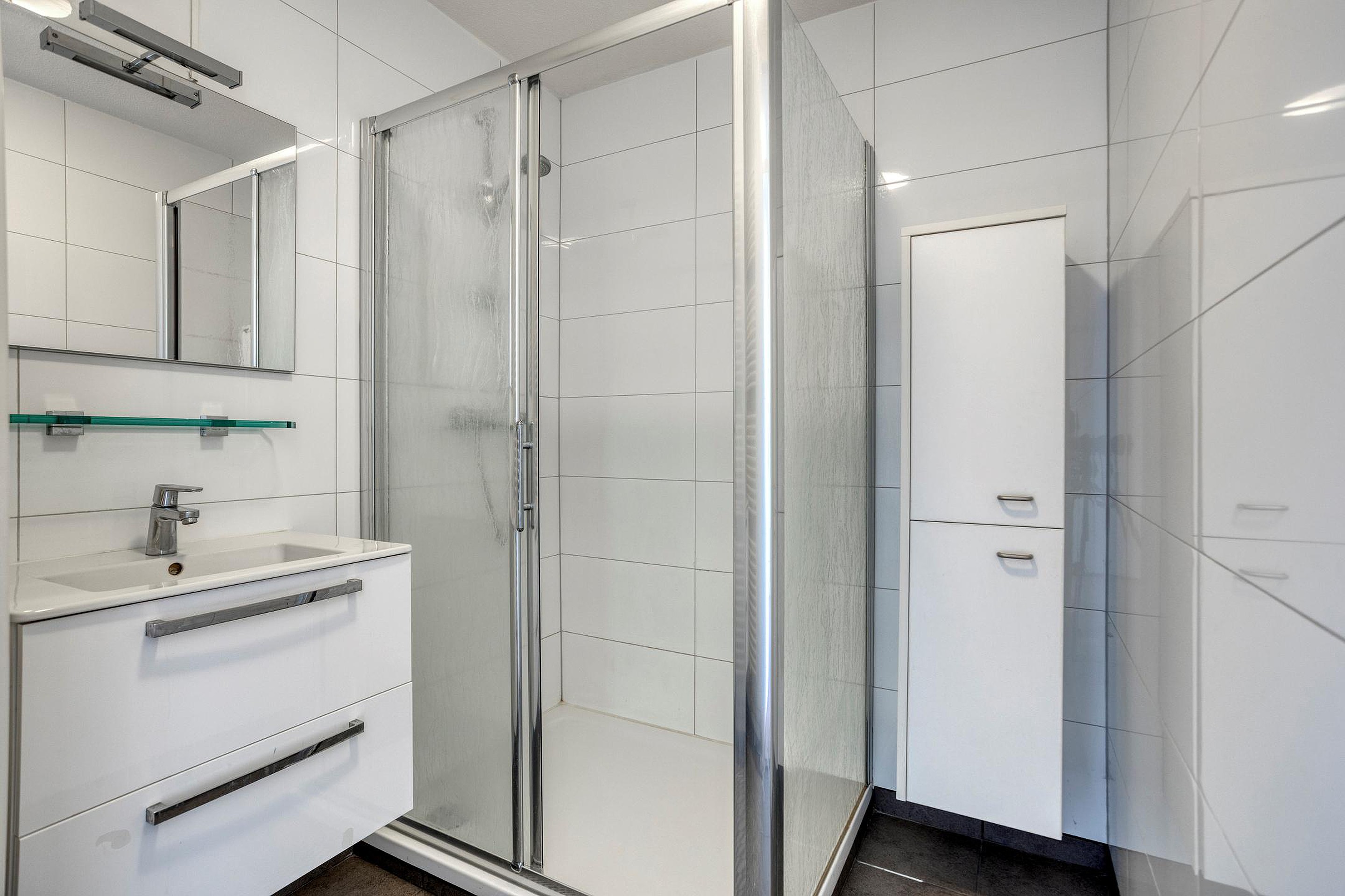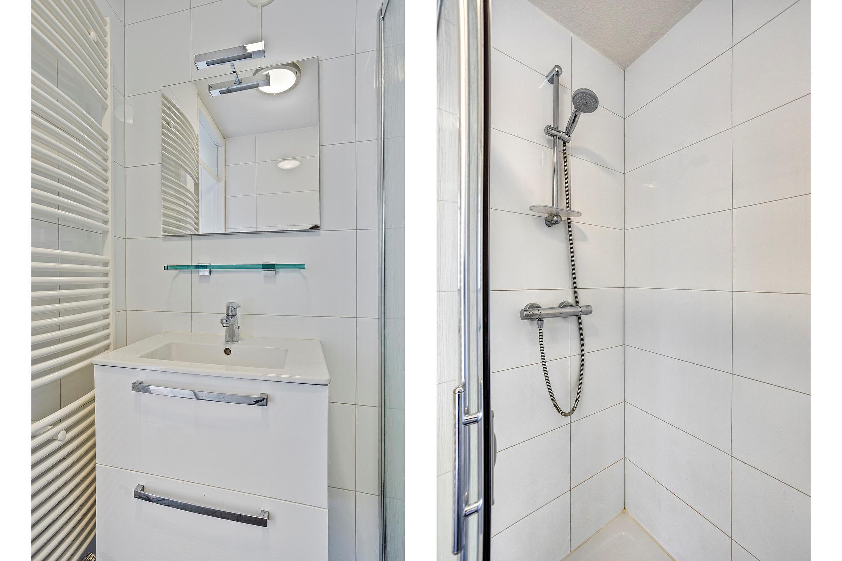 De badkamer (3 m2) beschikt over een douche en wastafel in meubel. Het toilet (1 m2) met fonteintje is separaat gelegen. In de praktische berging/waskamer (2 m2) bevinden zich de aansluitingen voor wasmachine en droger.