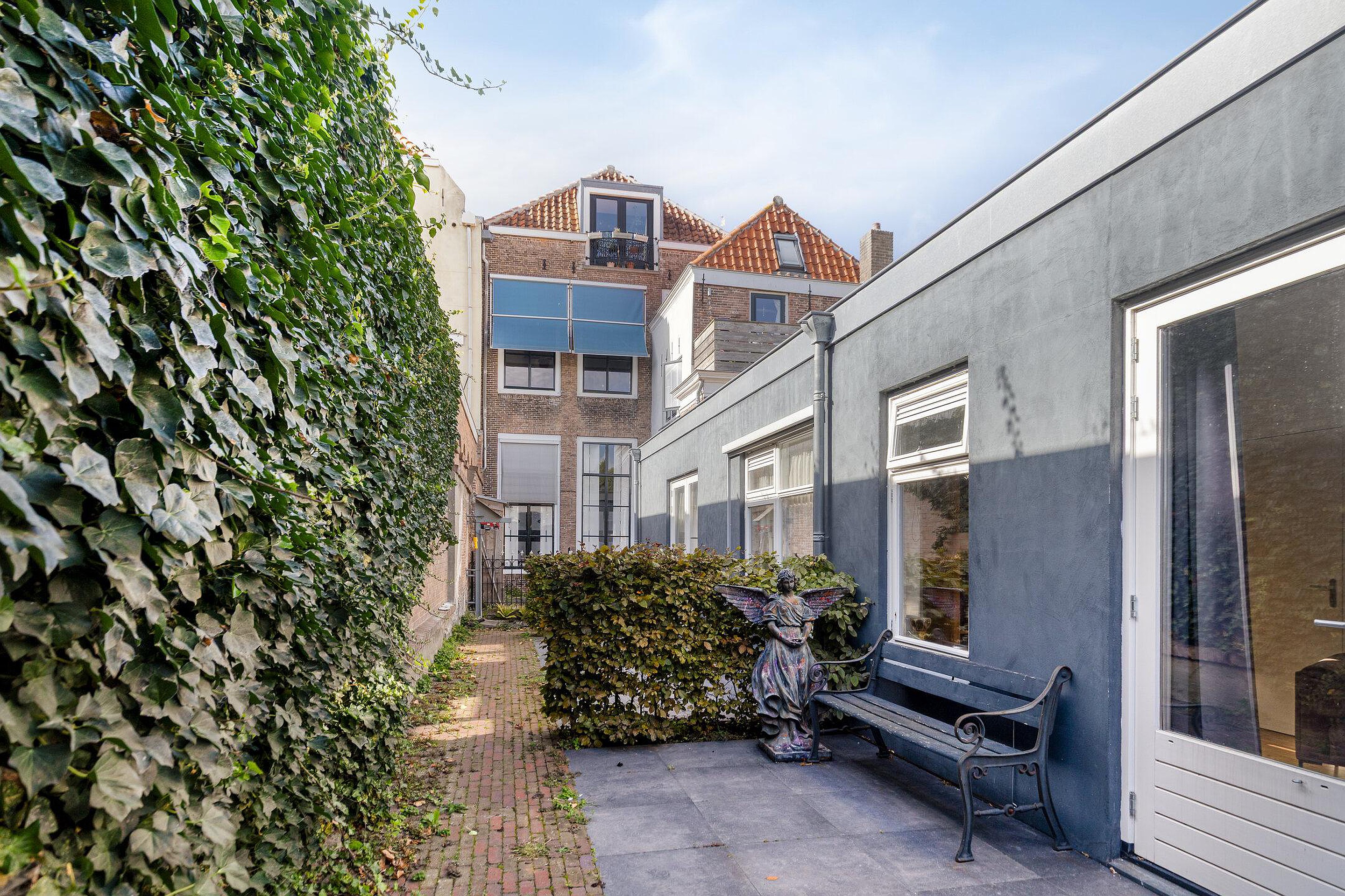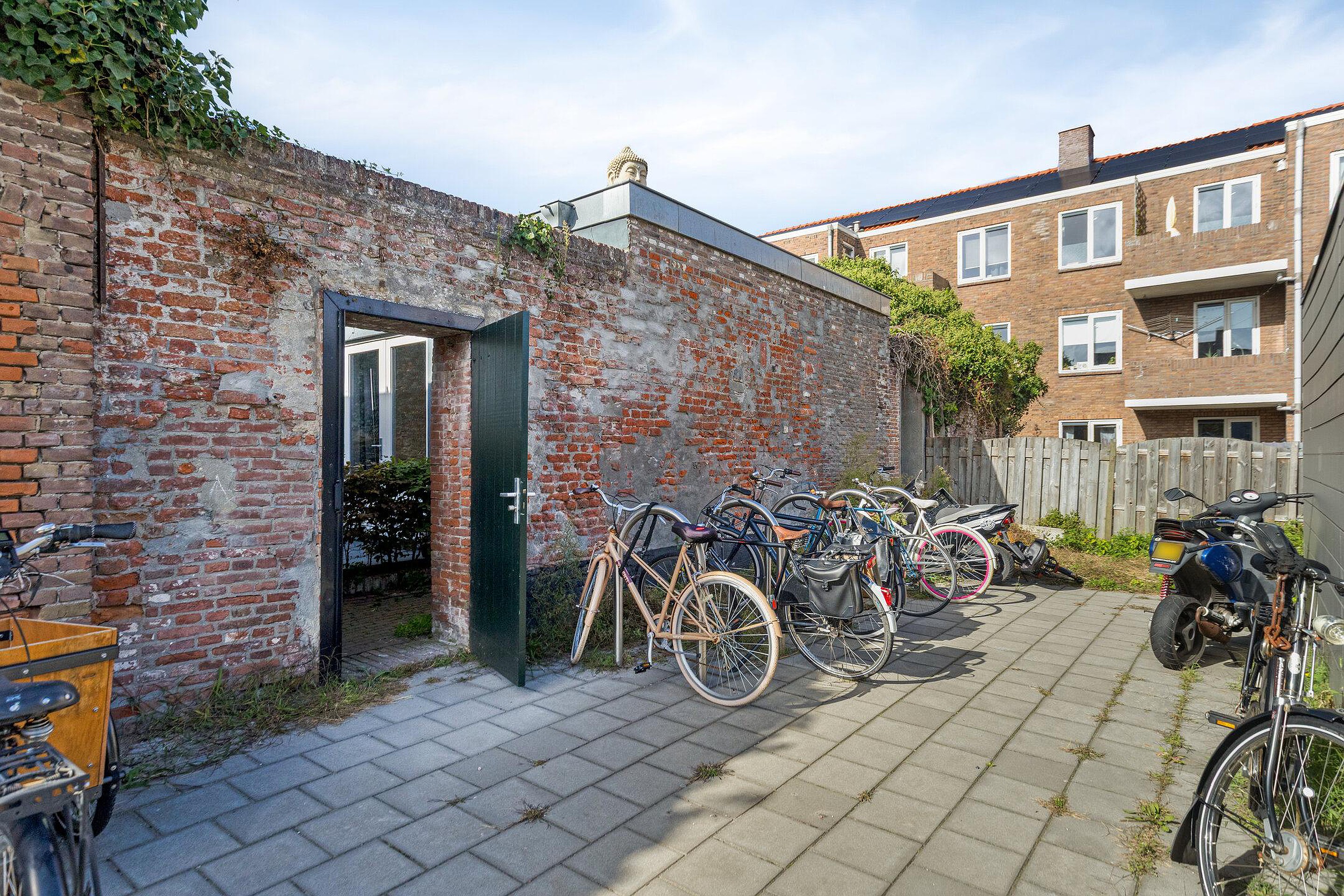 Wil je buiten zitten, dan kan dat ook in de (gezamenlijke) tuin. Er is in de kelder met gewelf een gezamenlijke berging, daar kun je prima je (race)fiets of surfplank stallen. Ook aan een vrije achterom ontbreekt het niet.