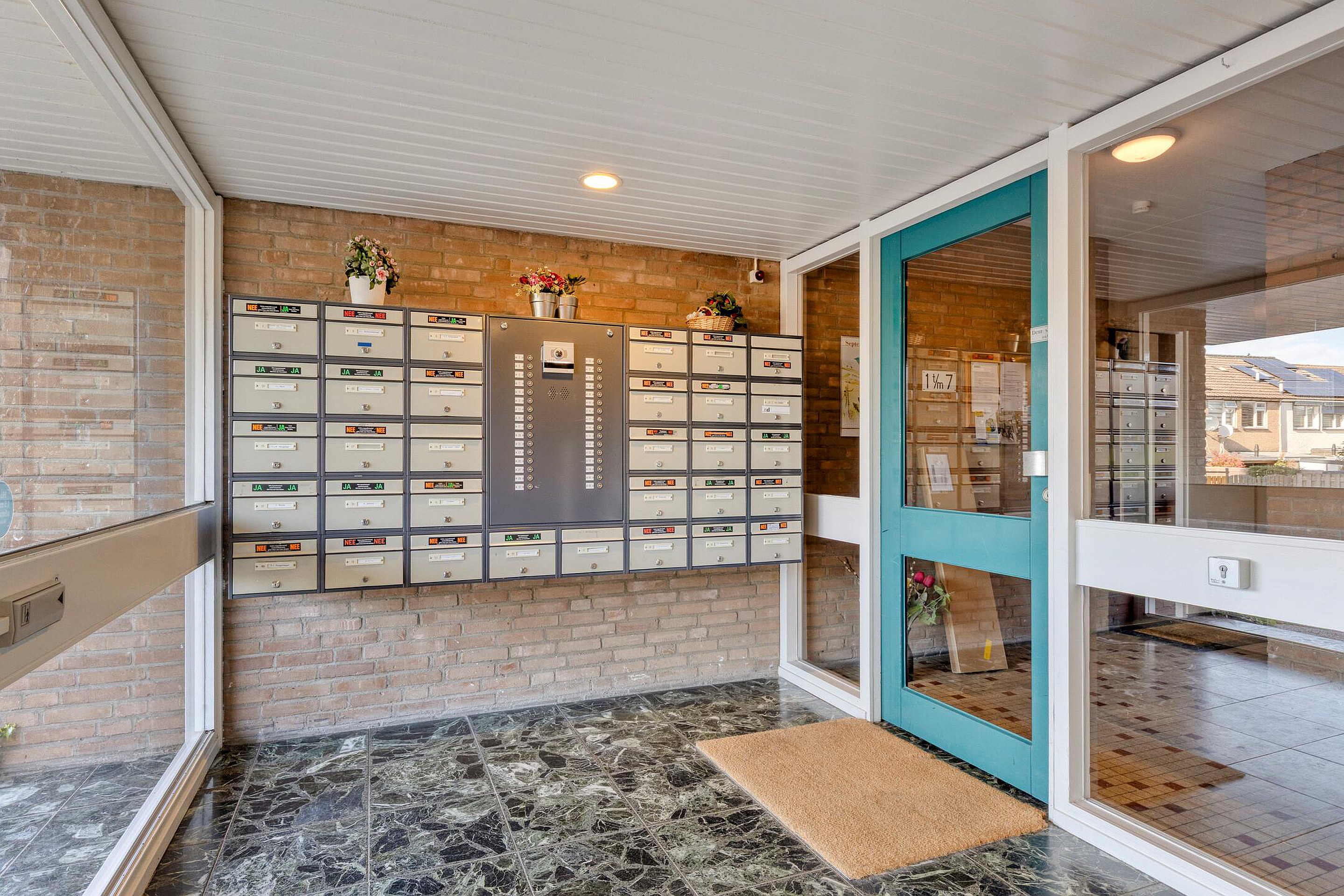 Begane grond Gezamenlijke entree, met de brievenbussen, trappenhuis en toegang tot de lift.