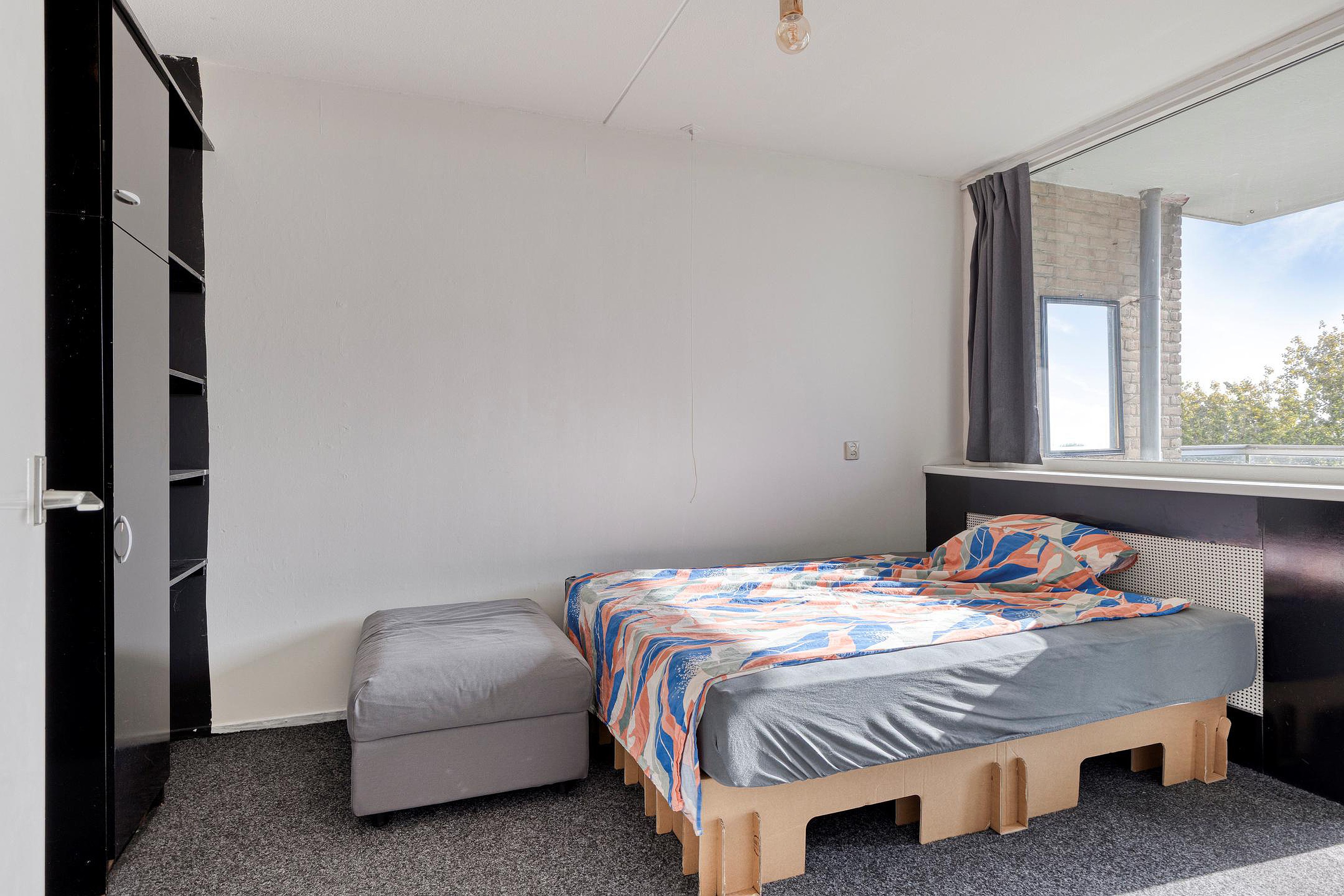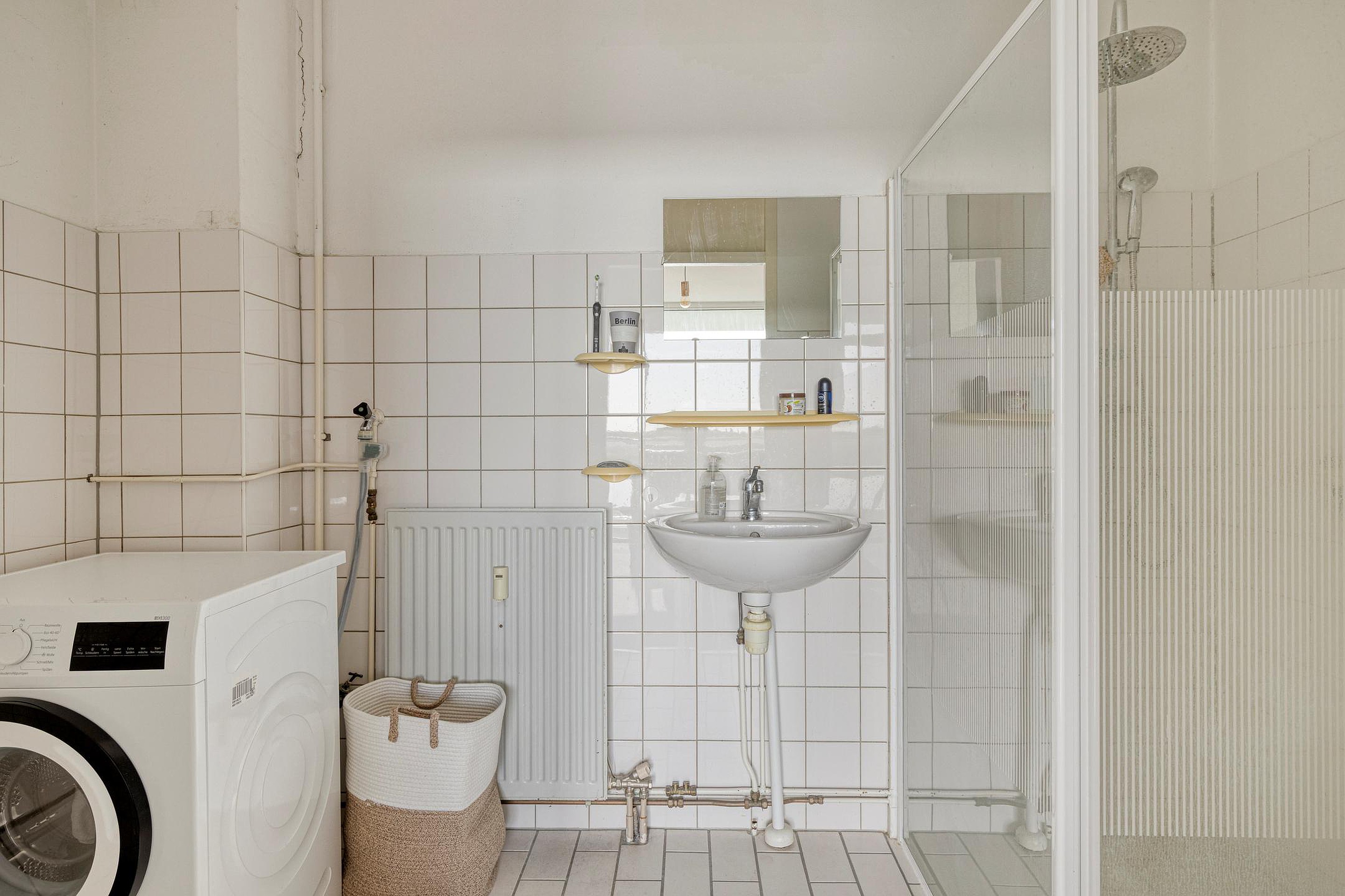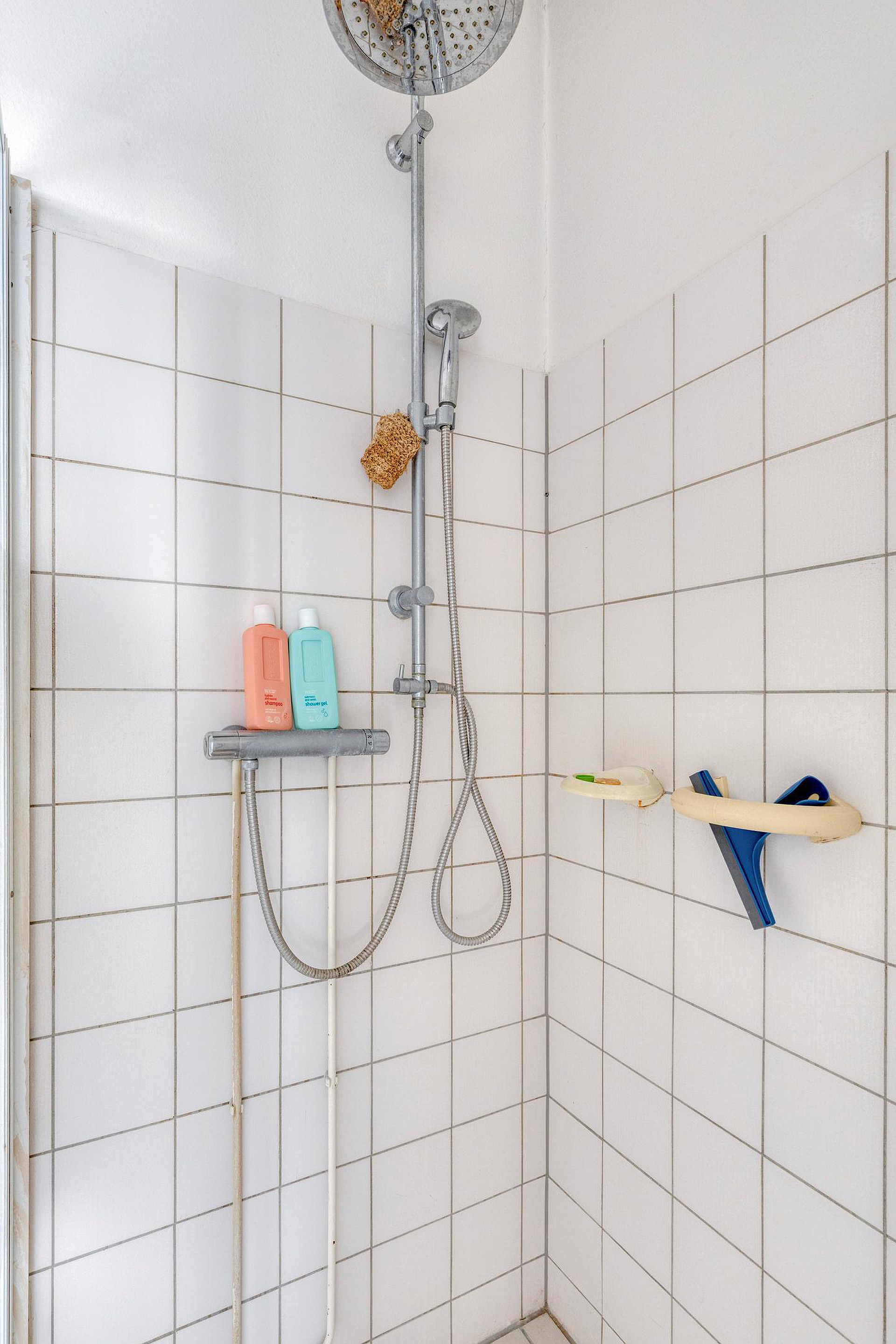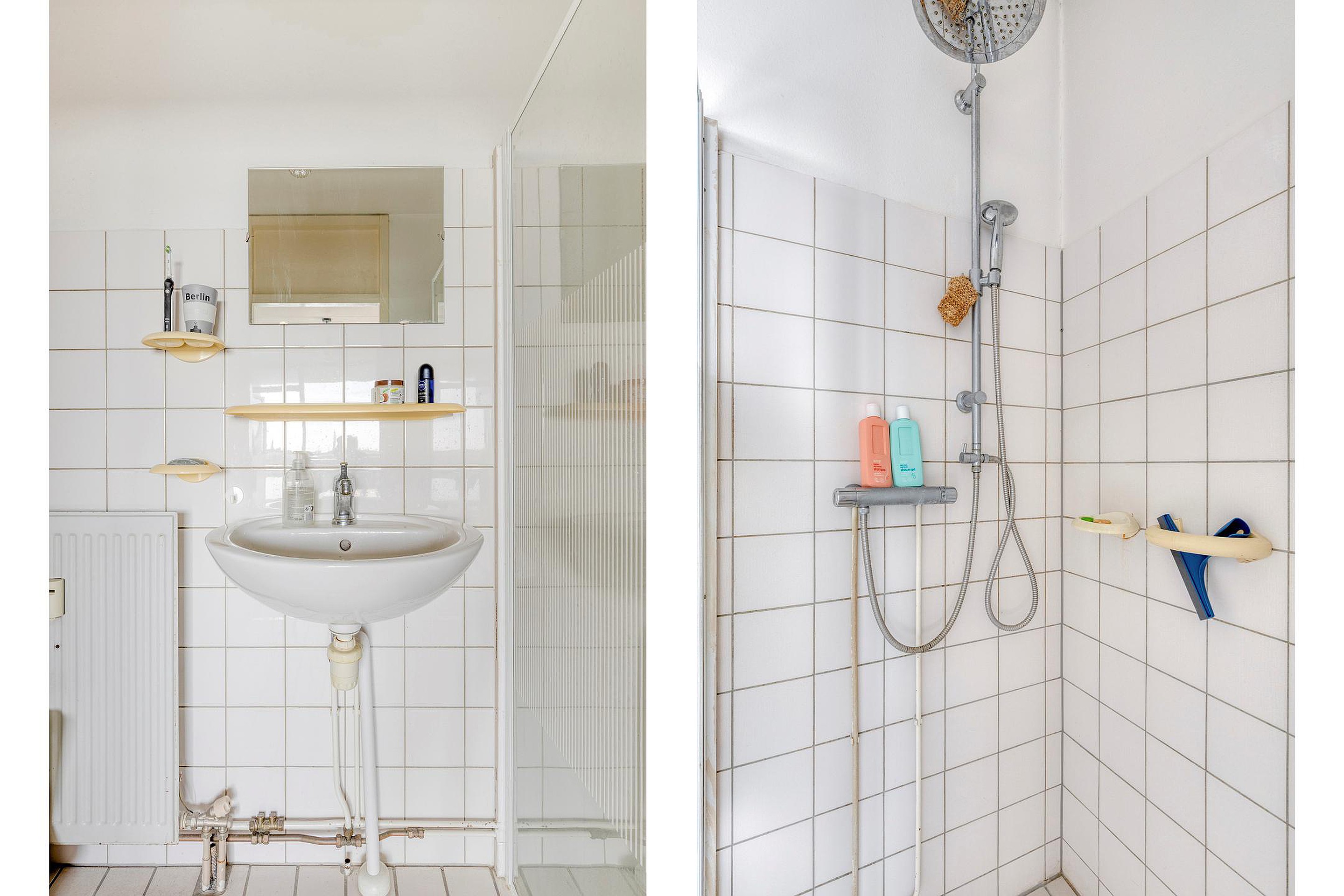 Doorlopend vanuit de woonkamer is de slaapkamer bereikbaar met aansluitend de badkamer met douche, wastafel en de wasmachine aansluiting.