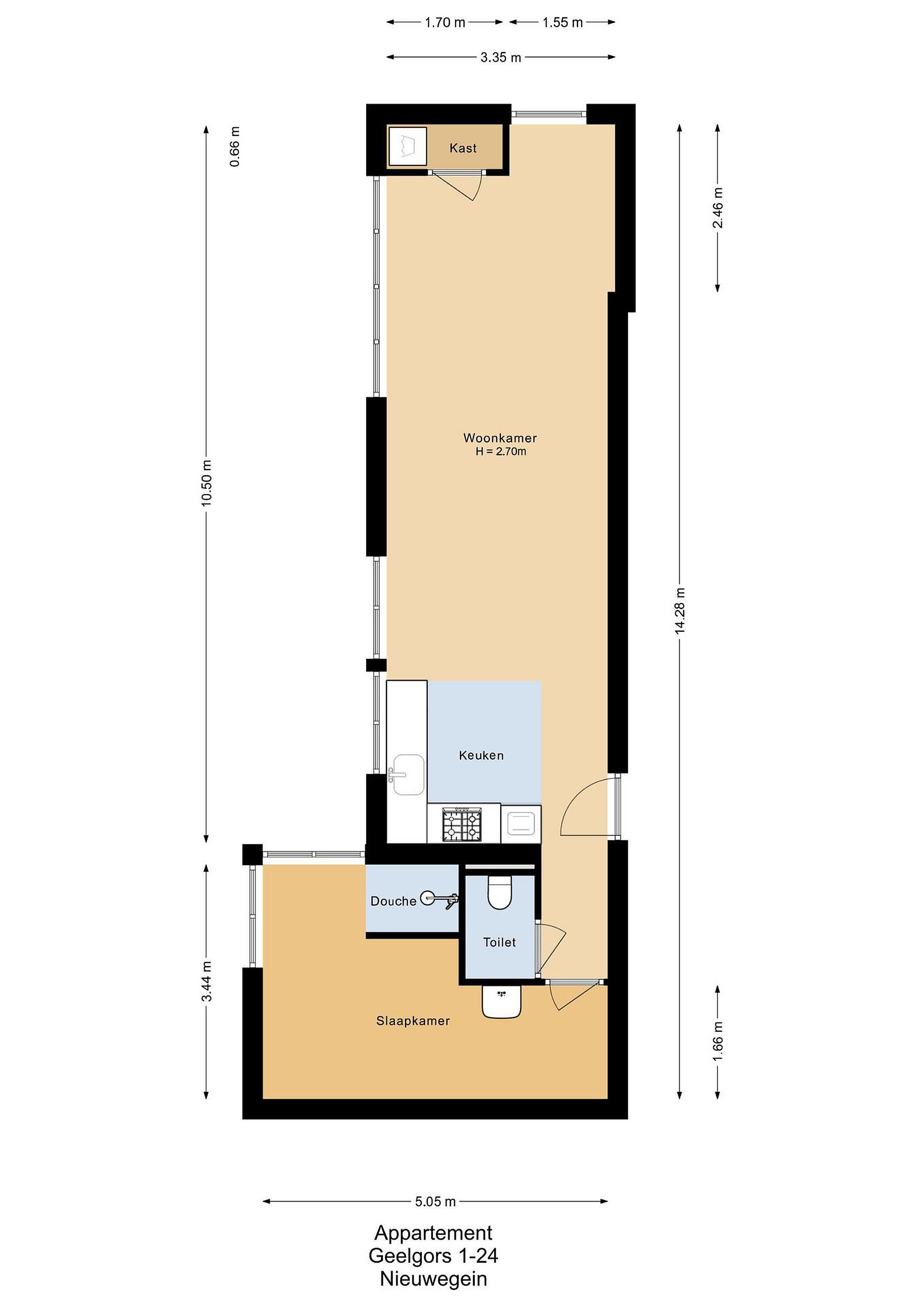 Oppervlakte woning ca. 53m2