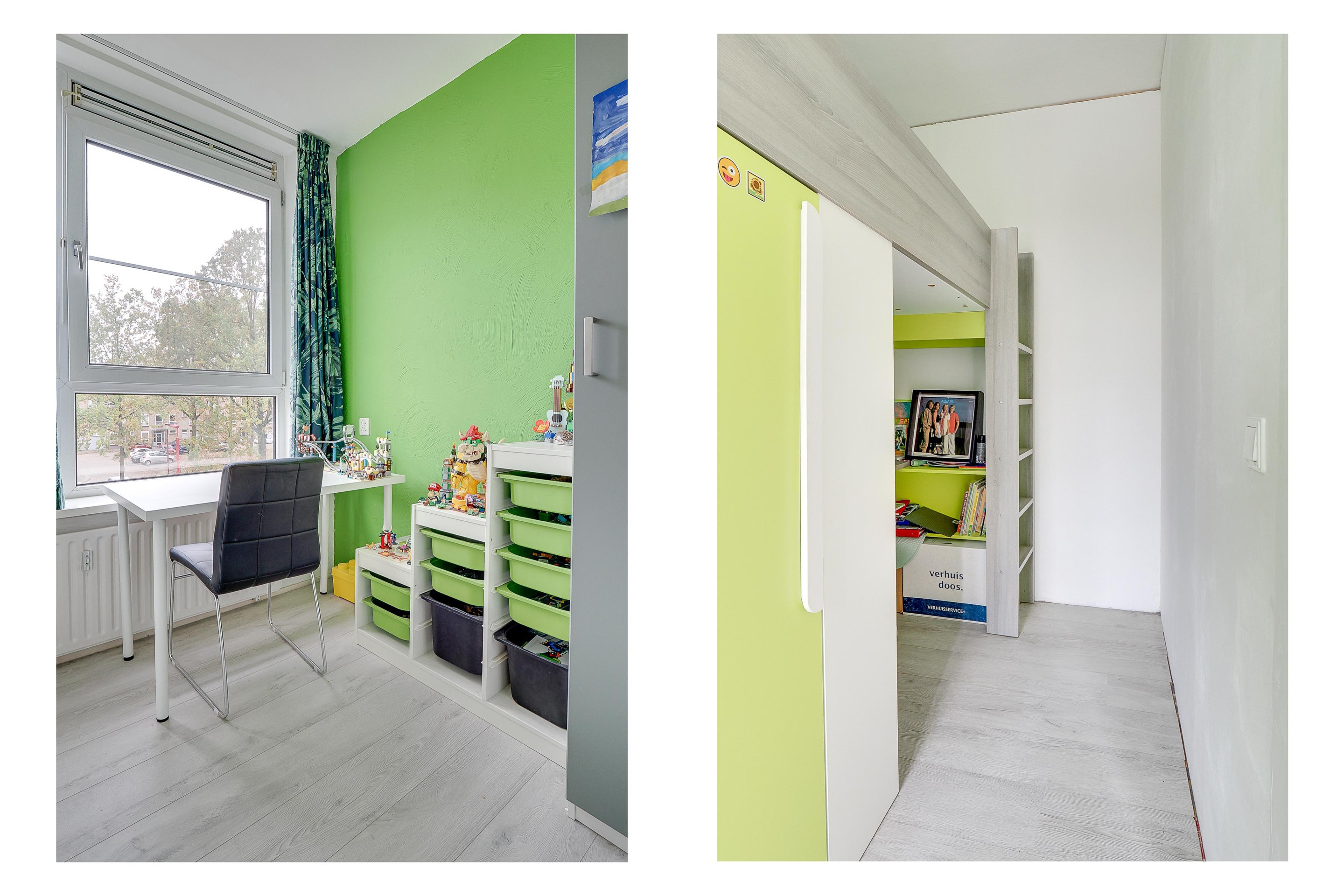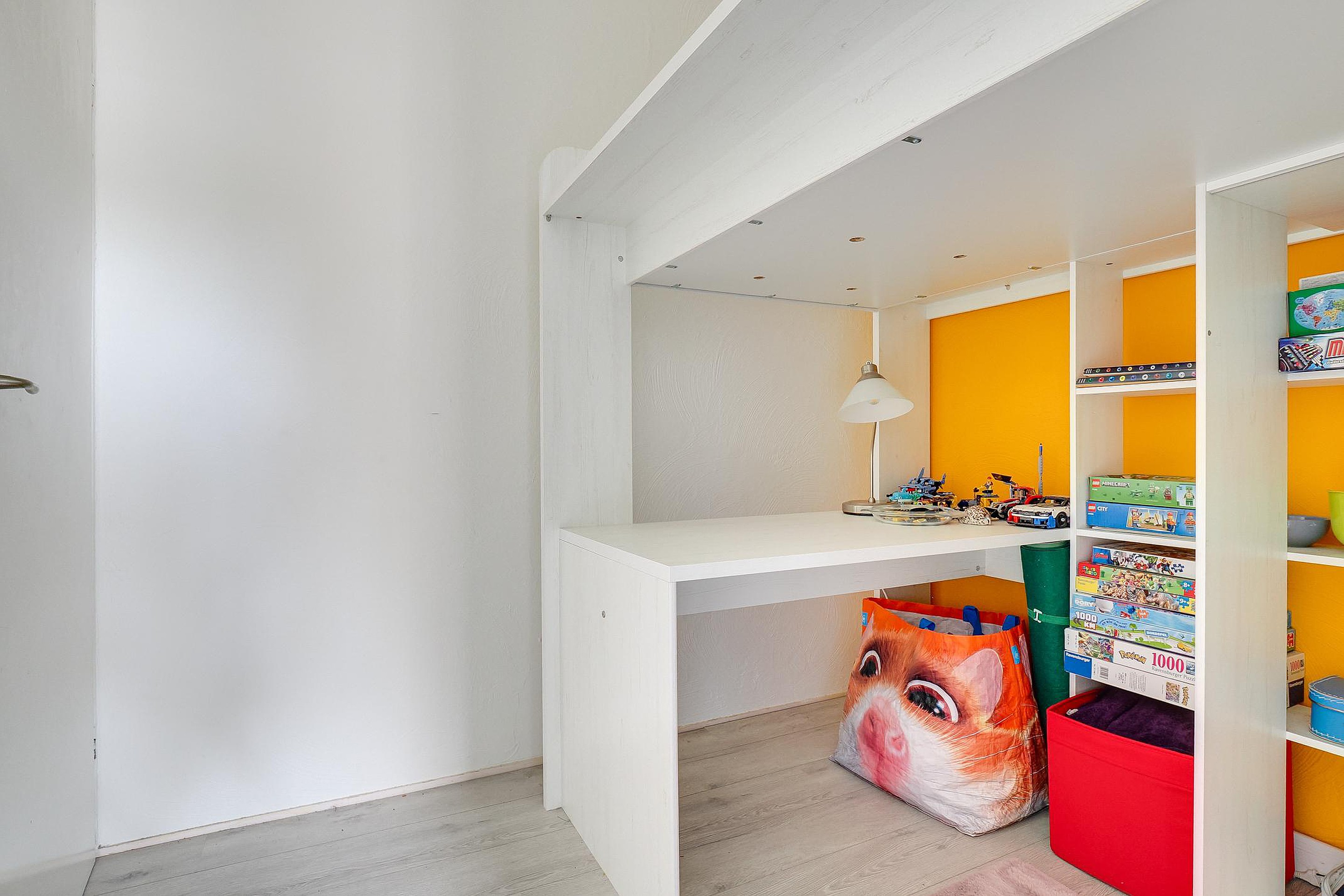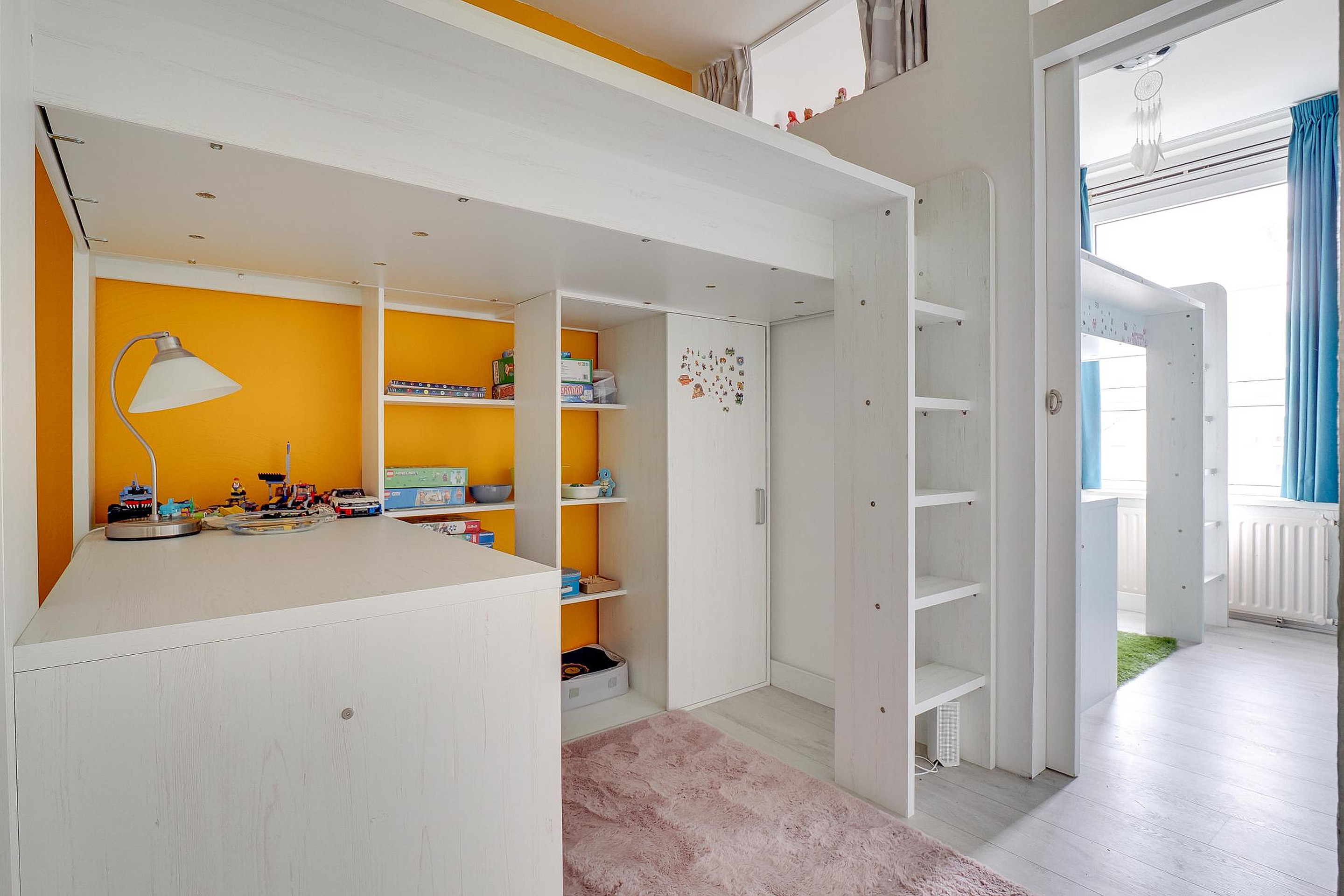 Het appartement beschikt verder over in totaal vier slaapkamers, waarvan er één is opgedeeld in twee kleinere kamers. Perfect voor een gezin, thuiswerkplek of logeerkamer. Daarnaast zijn er een mooi afgewerkte badkamer, een separaat toilet en twee vaste bergkasten aanwezig. De indeling zorgt overal voor een praktische en efficiënte benutting van de ruimte.